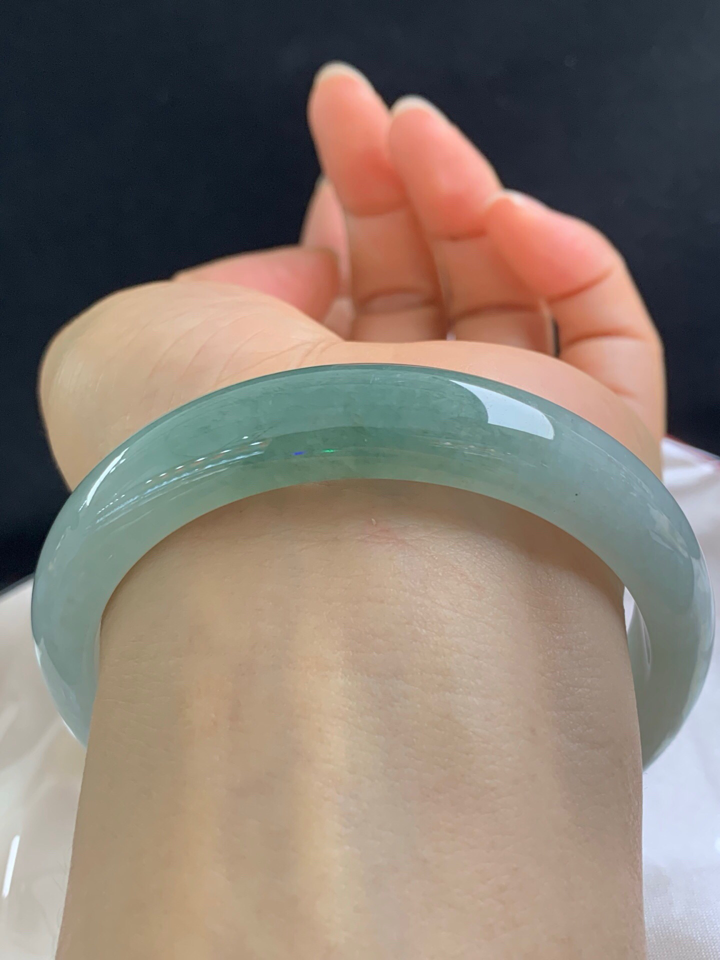 620166,62.3圈口,糯化飘油青正圈平安镯,半山水色,完美无裂,尺寸:62.3-13.5-7.9,超值价💰10200 #优石客珠宝#香玉荟萃