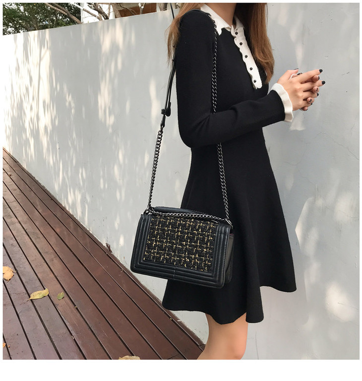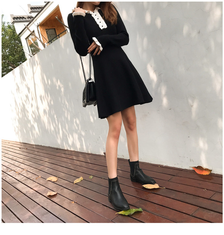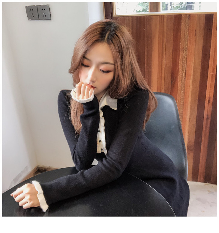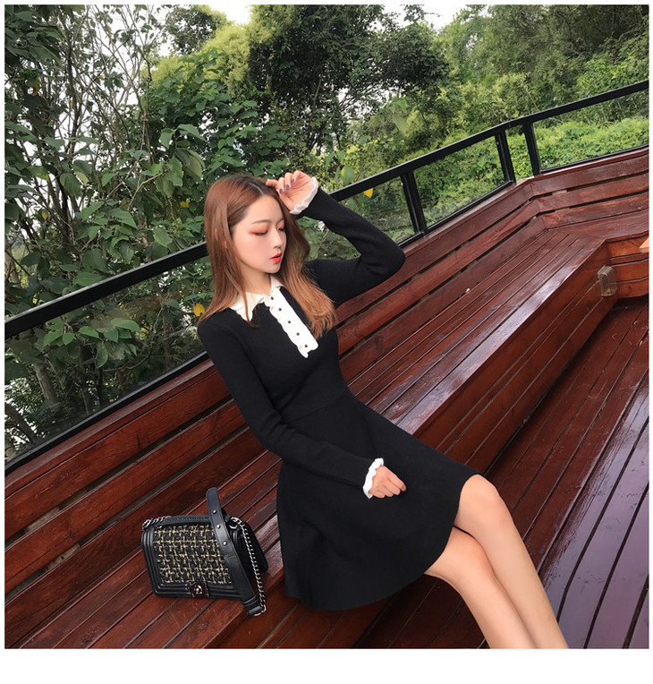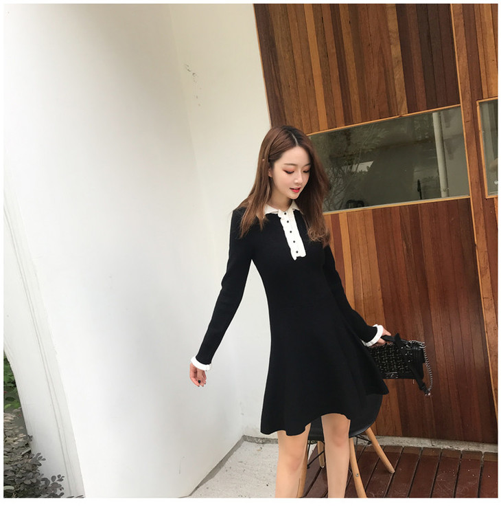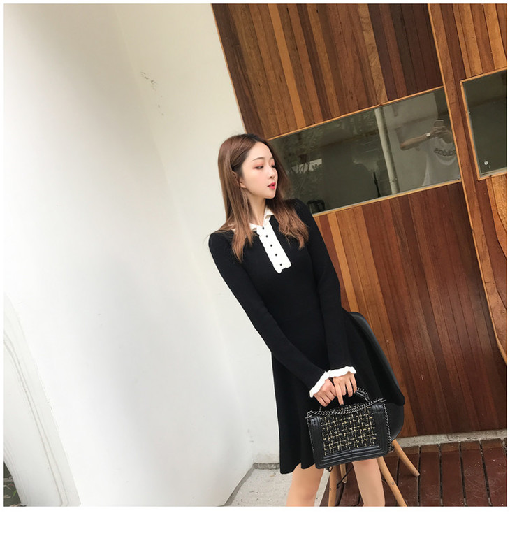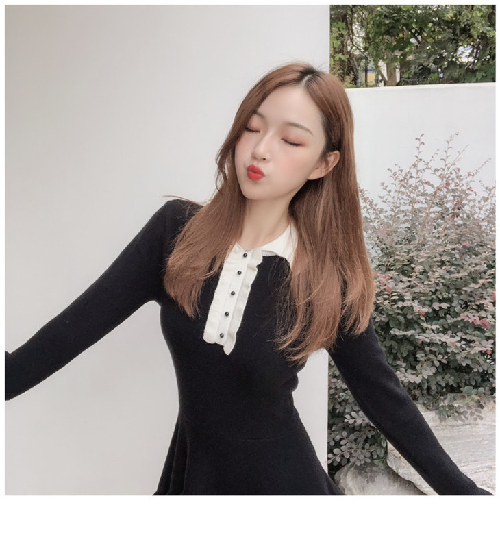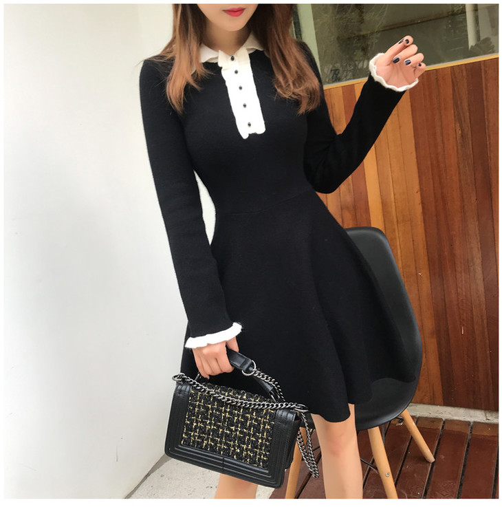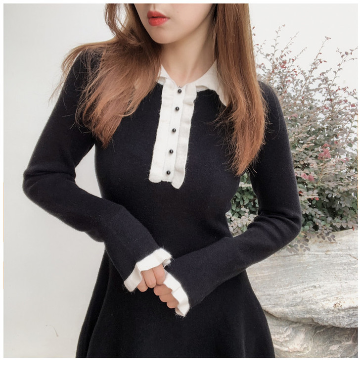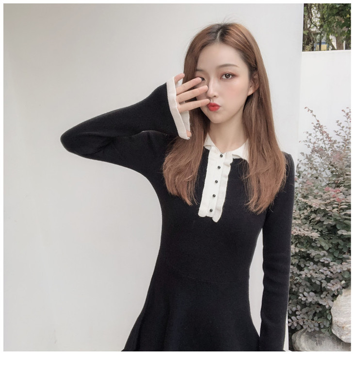 【服饰鞋包】小众连衣裙女复古秋冬新款egg风少女打底针织毛衣裙过膝