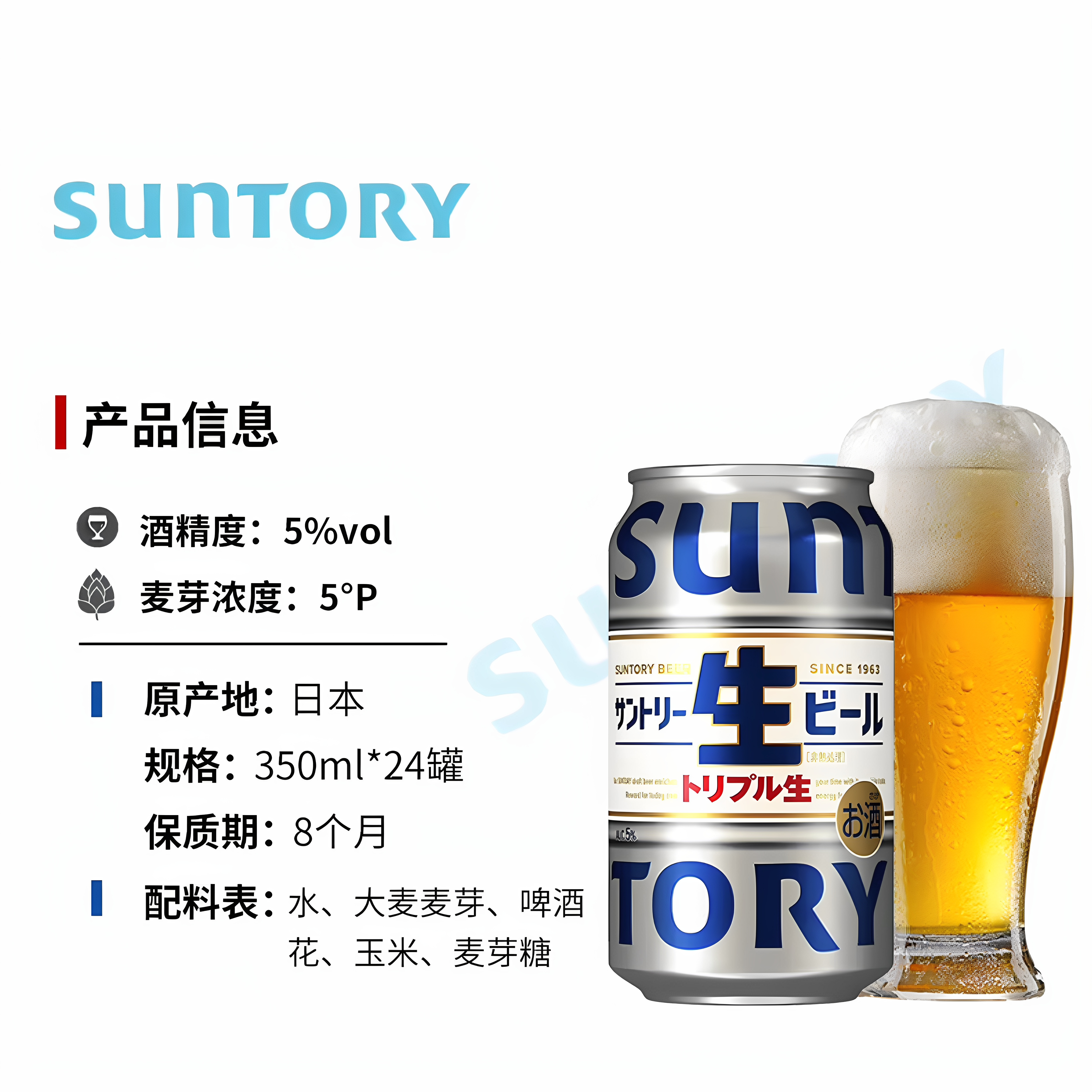 日本三得利生啤 350ml 5.0%vol