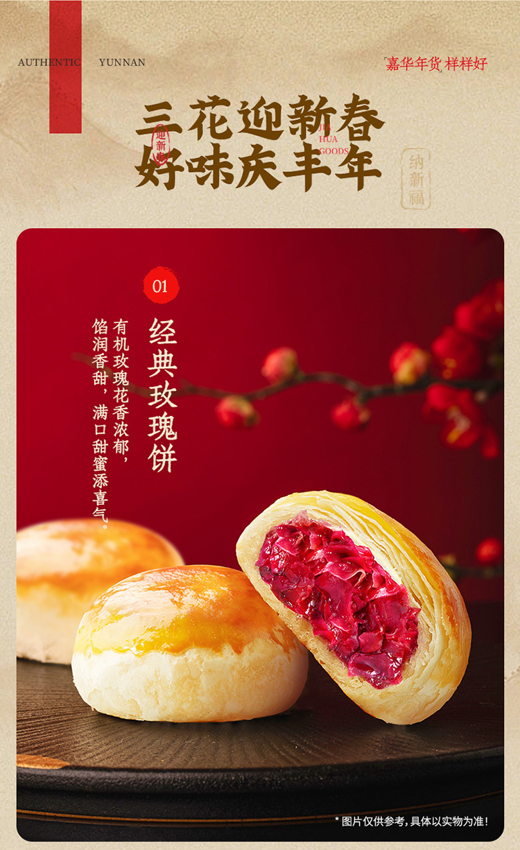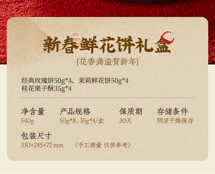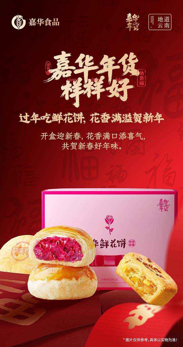 【嘉华年货】 新春鲜花饼礼盒 云南新春拜年好礼 600g