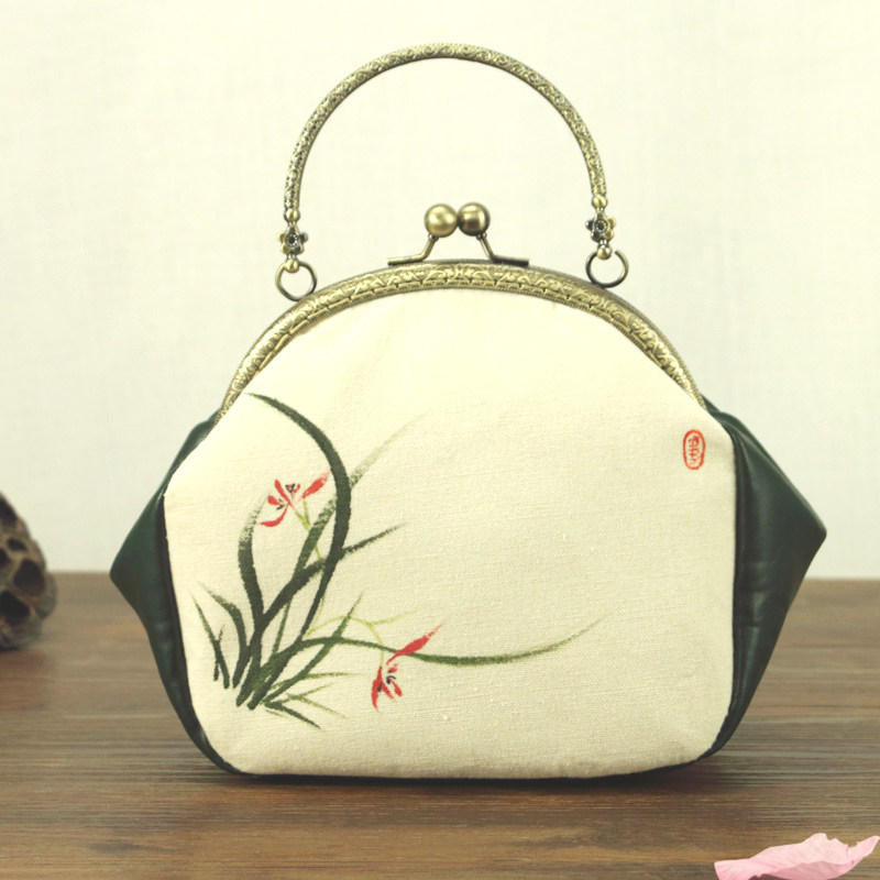 新款手绘兰花手拿包口金包包特色手工艺品中国风民族风女士斜挎包¥59.8