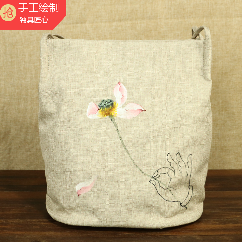 新款原创文艺棉麻手绘包 个性女士单肩斜挎包旅游热卖包包伊人绘¥76.8