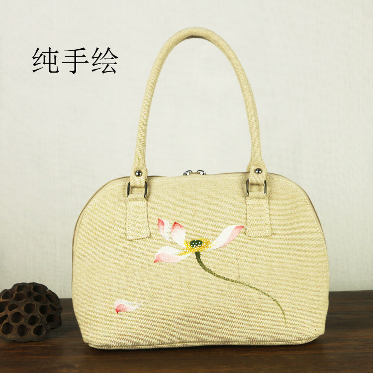 新款手绘棉麻单肩包纯手工手提包贝壳包复古特色中国风民族风女包¥78.8