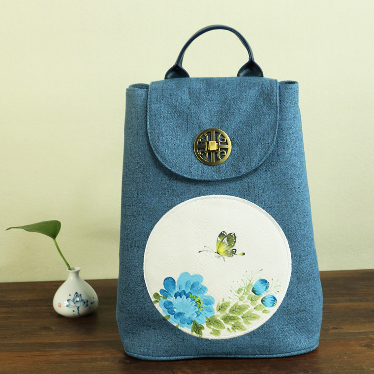 新款手工绘制复古特色中式女双肩包背包文艺棉麻手绘民族风女士包¥75 |