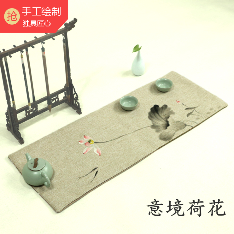 手绘棉麻特色茶席桌旗茶道麻布茶杯垫中式荷花兰花布艺茶旗零配¥55