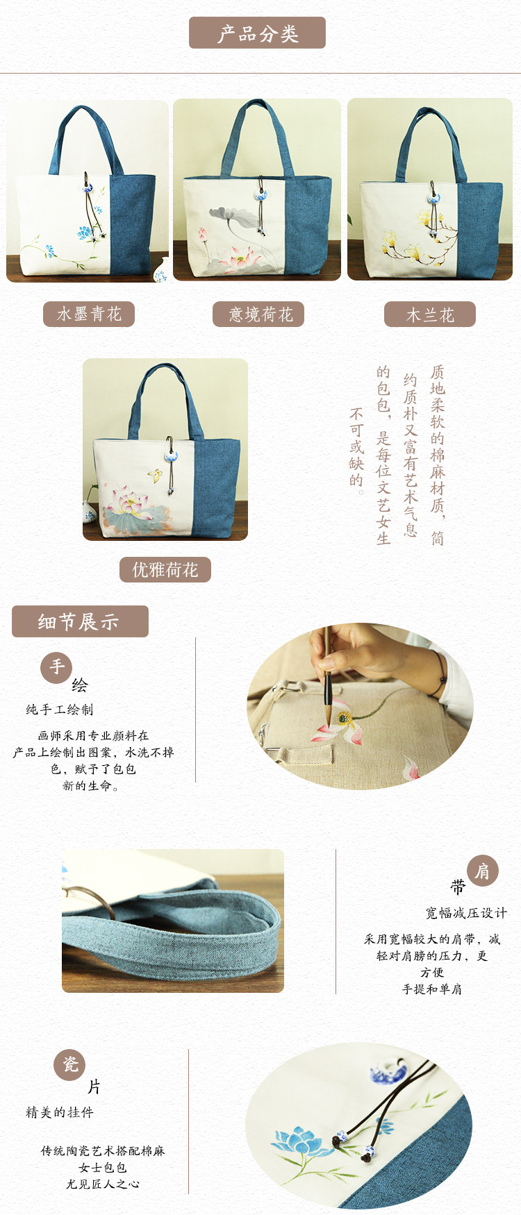 新款手绘单肩包文艺包民族风棉麻布包拼接女包复古个性青花女士包¥59.8 |