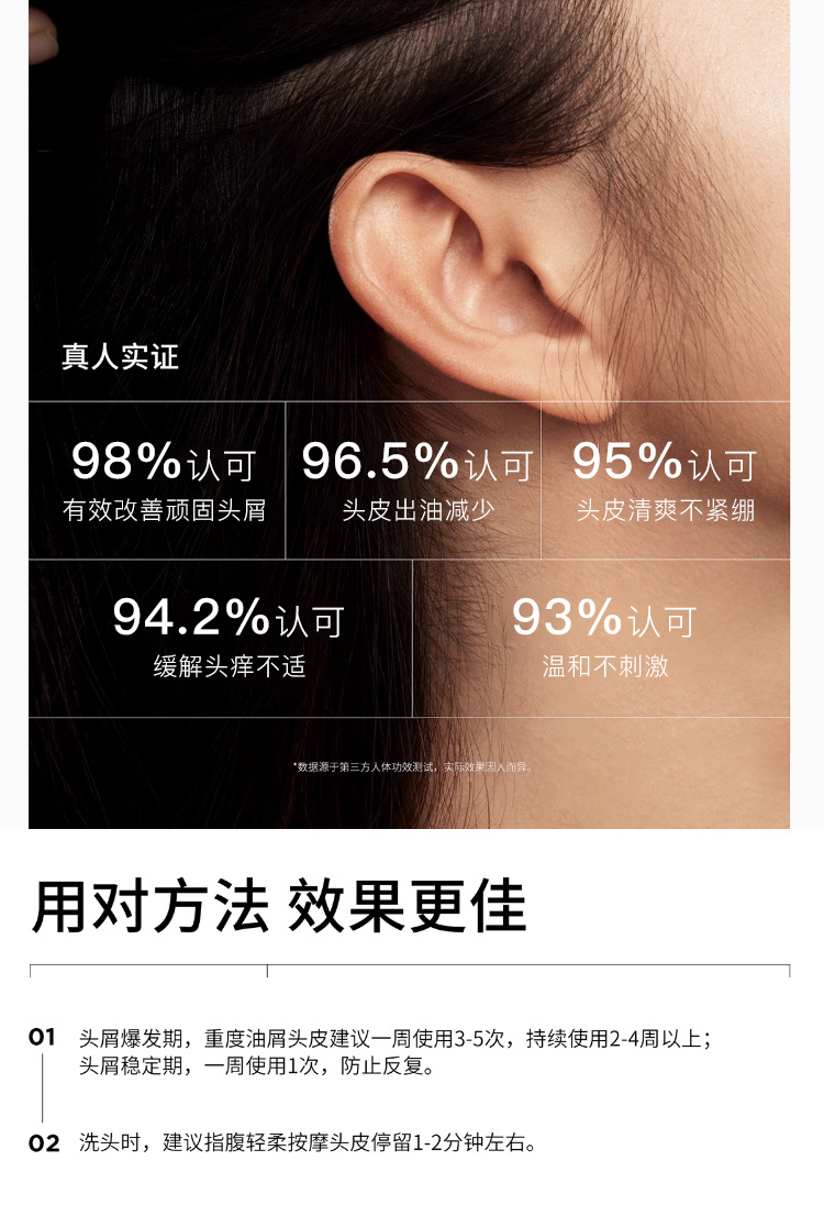 持有去屑功效报告!实力去屑,挑战5天没头屑~巨清爽蓬松,头皮轻盈0负担。