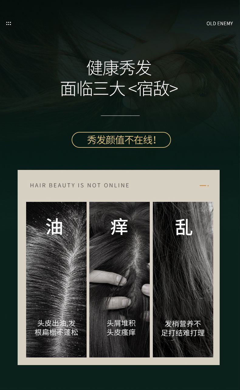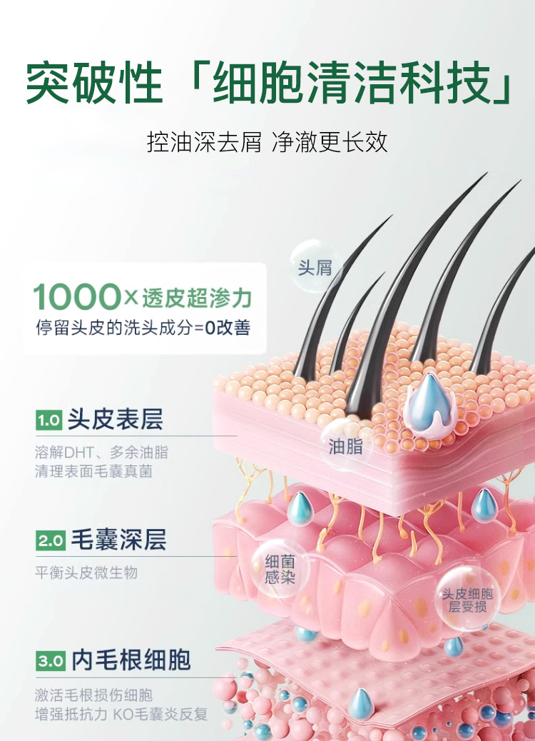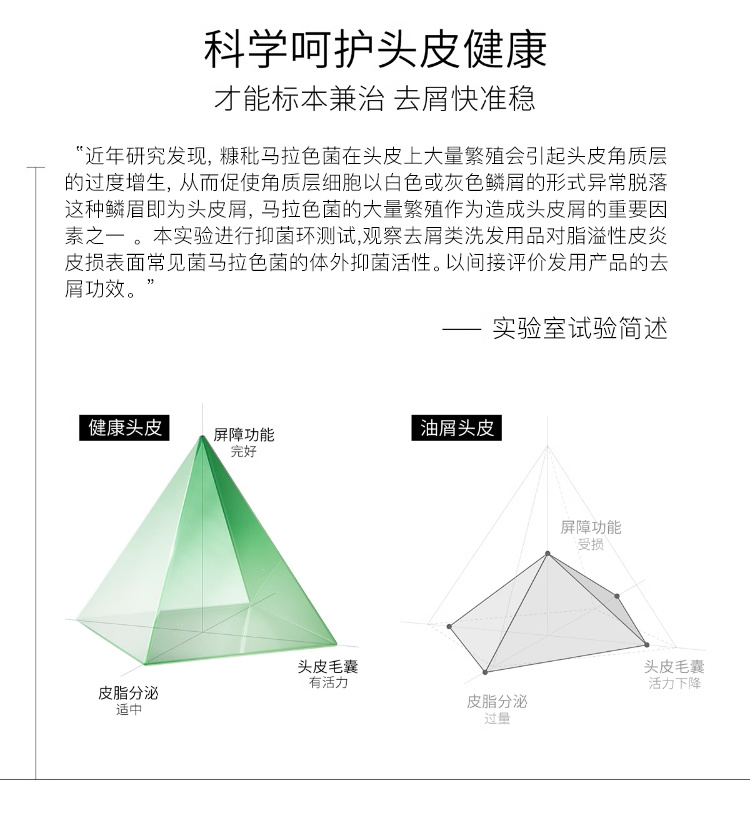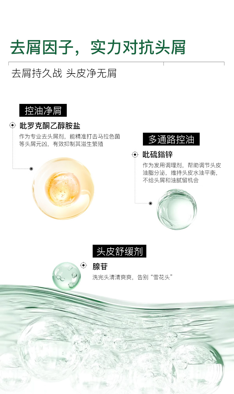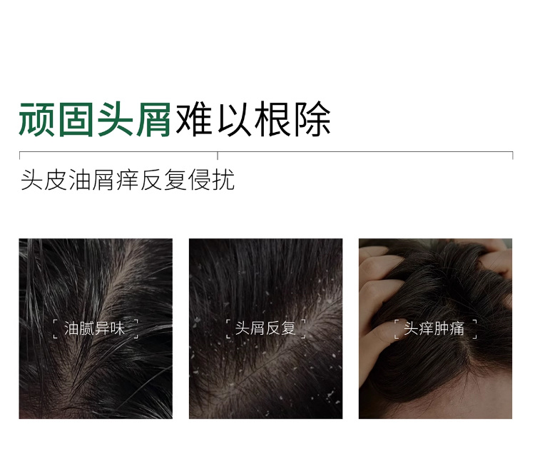 根源去屑,疏通毛孔,改善头痒,调节头皮微生态。
