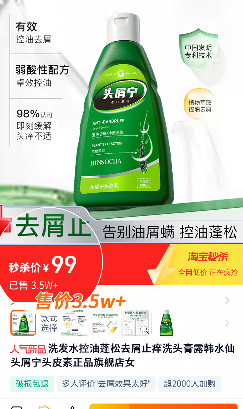 多重去屑成分+专利成分复配2大进口原料