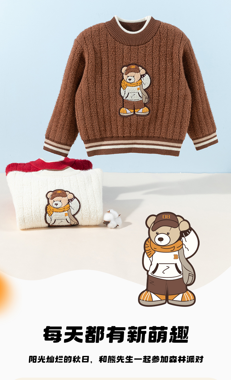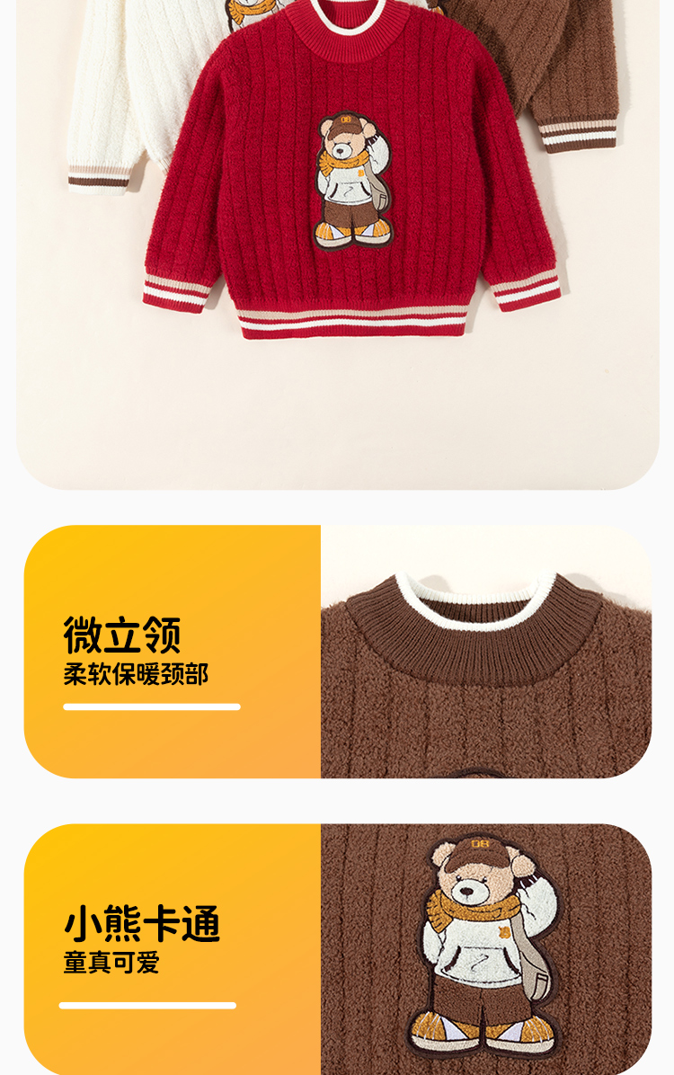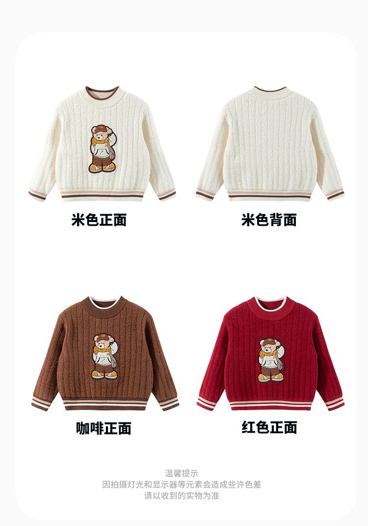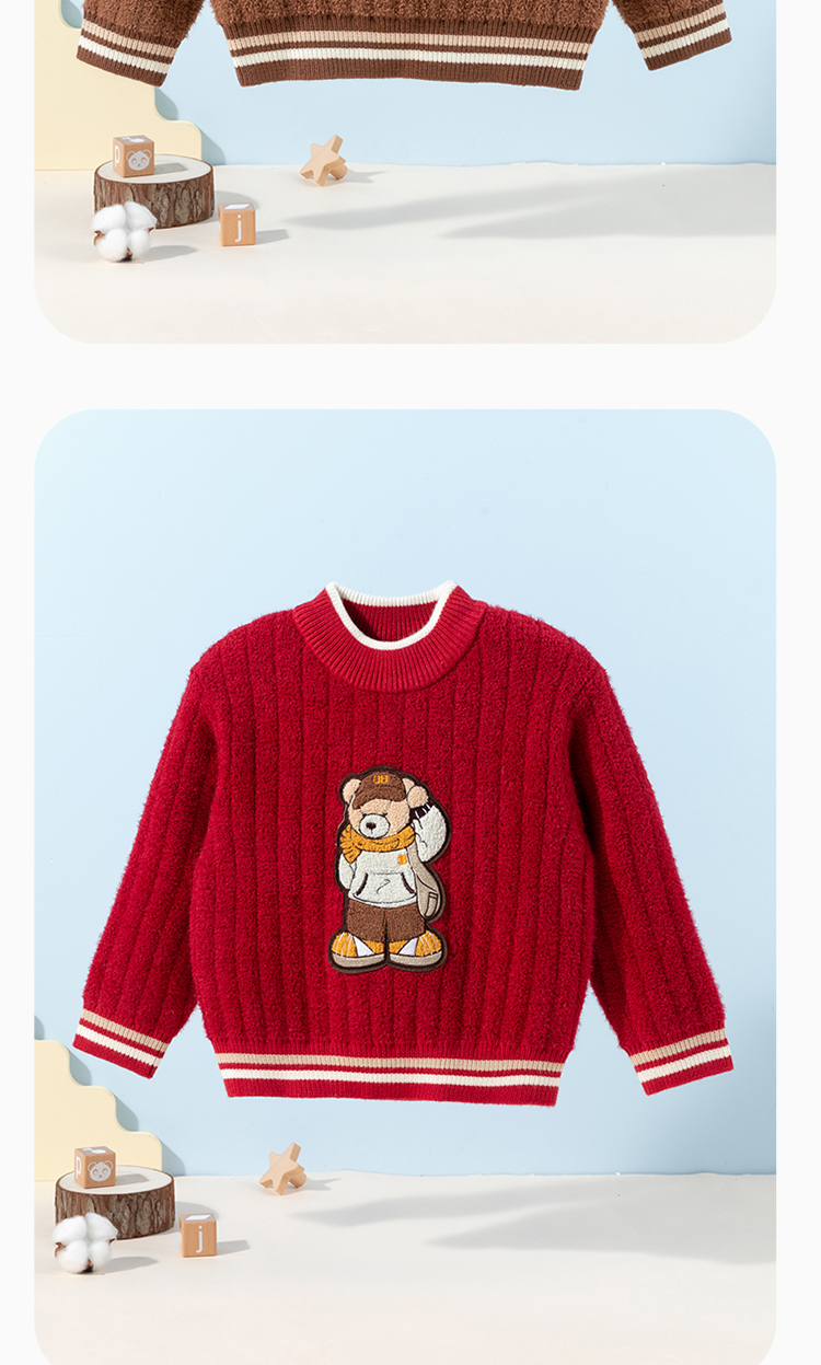 贝贝怡萌趣小熊童装男童秋冬毛衣24秋装套头线衫保暖针织打底衫ZB3DS085