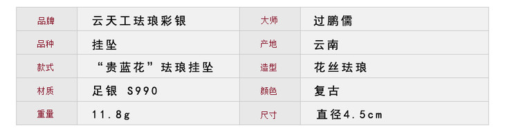 珐琅色彩非常绚丽,具有宝石般的光泽和质感,耐腐蚀、耐磨损、耐高温,防水防潮,坚硬固实,不老化不变质,历经千百年而不褪色、不失光。型、色、光三者俱佳,就如将一幅精美的微缩画随身配戴,且永不褪色,既实用、又保值。非常适合时尚服装的色彩搭配。