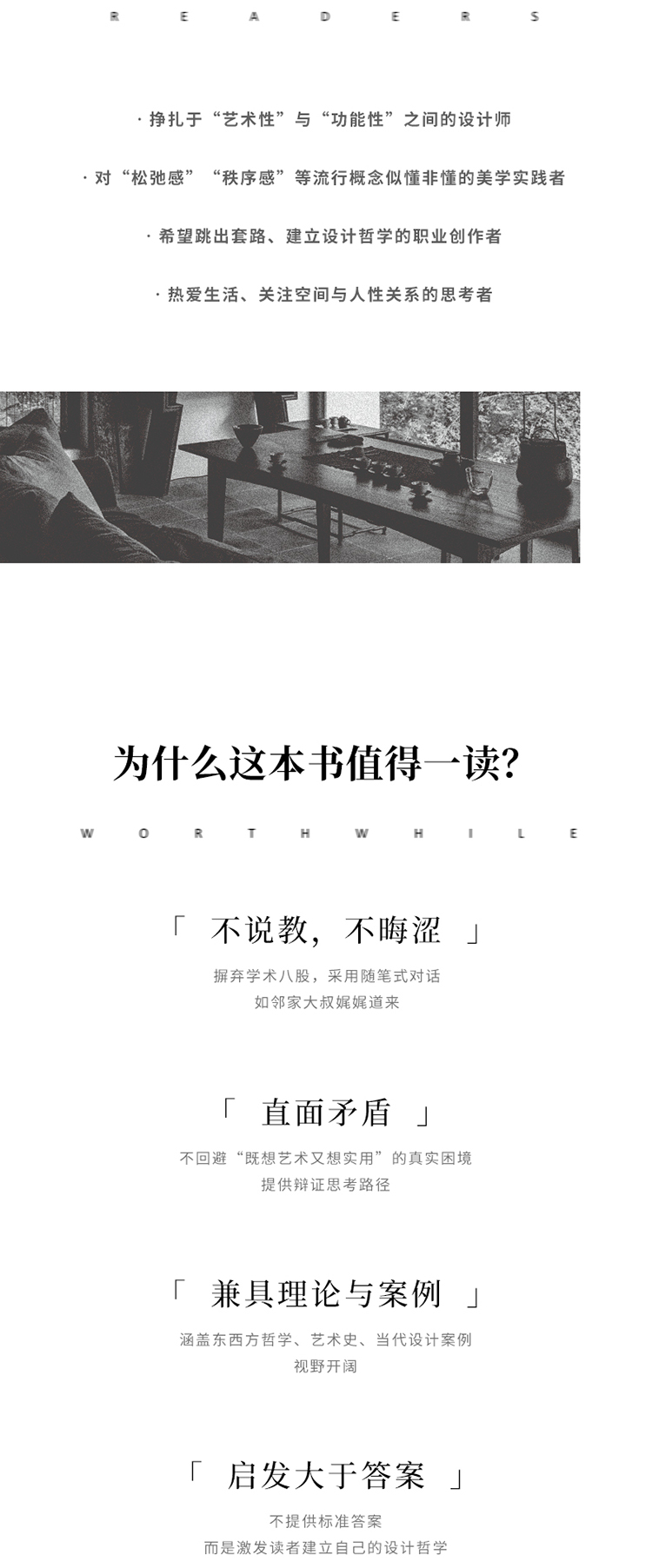 ●思维工具:不为每对核心概念提供标准答案,而是提供思考的路径和工具,激发读者形成自己的设计哲学。