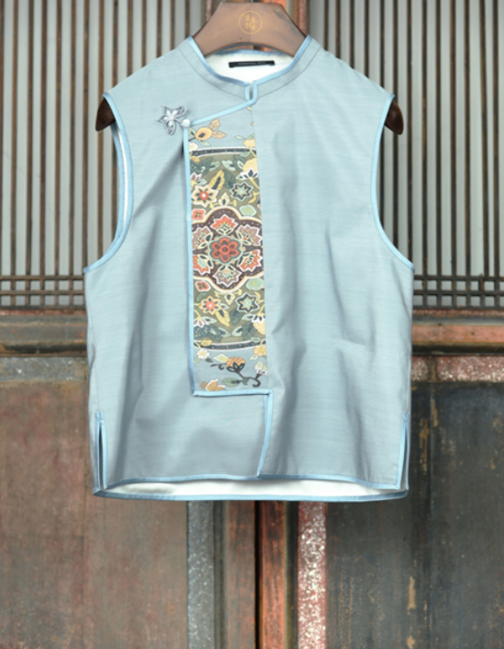 盛唐牡丹 |老工艺花蕾缎真丝马甲正反两穿