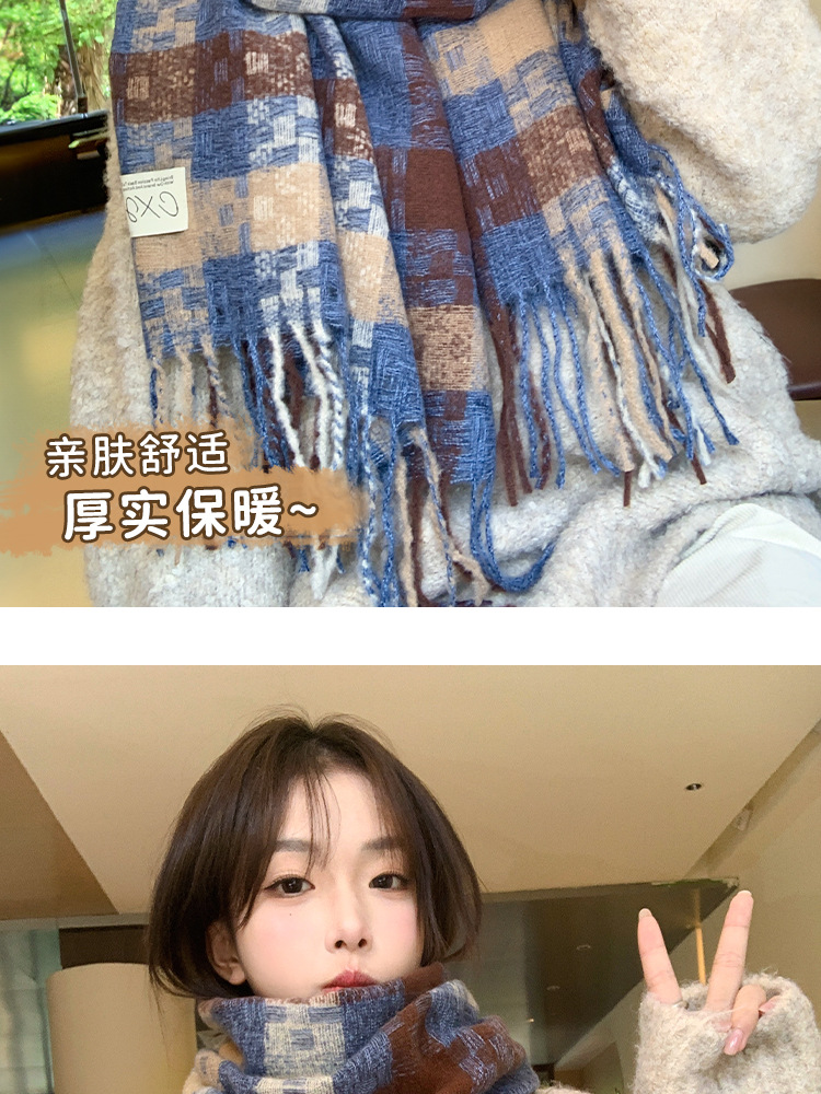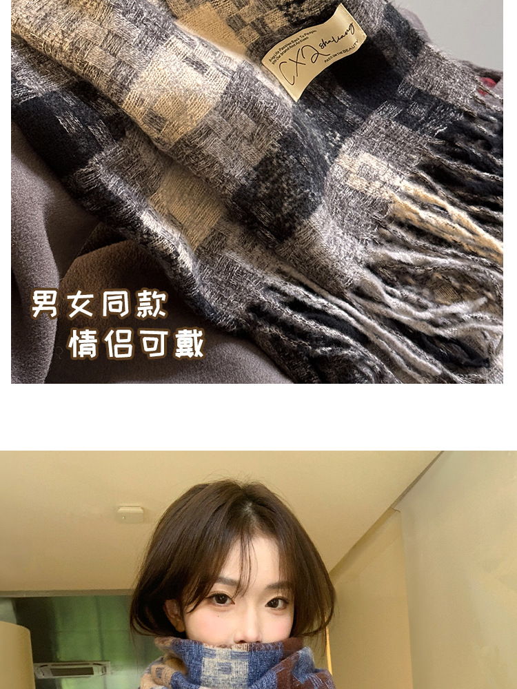 围巾女秋冬季高级氛围感2025新款加厚格子韩系保暖围脖男冬天礼物