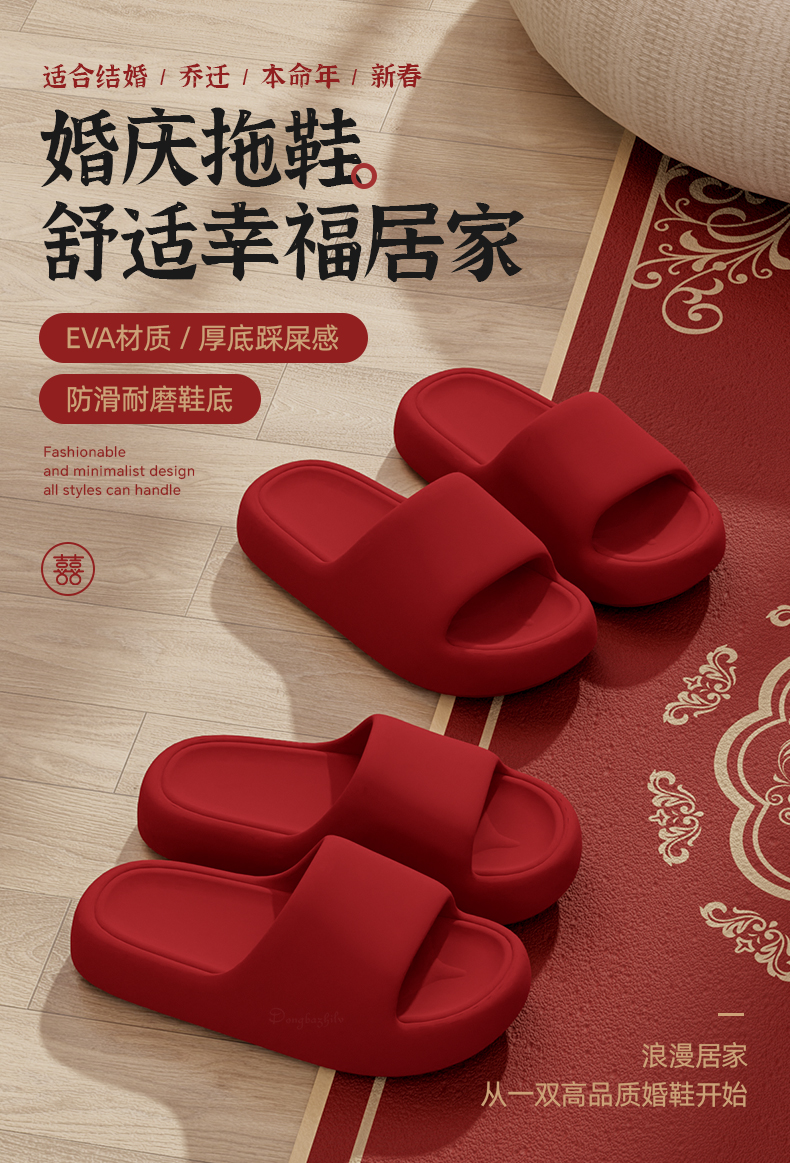 【舒适贴合脚型❗️本命年红色拖鞋】高品质拖鞋,EVEVA材质/厚底踩屎感,防滑耐磨鞋底,人体工程学鞋型设计,贴合脚部行走不累脚,夏室内外凉拖鞋男女L
