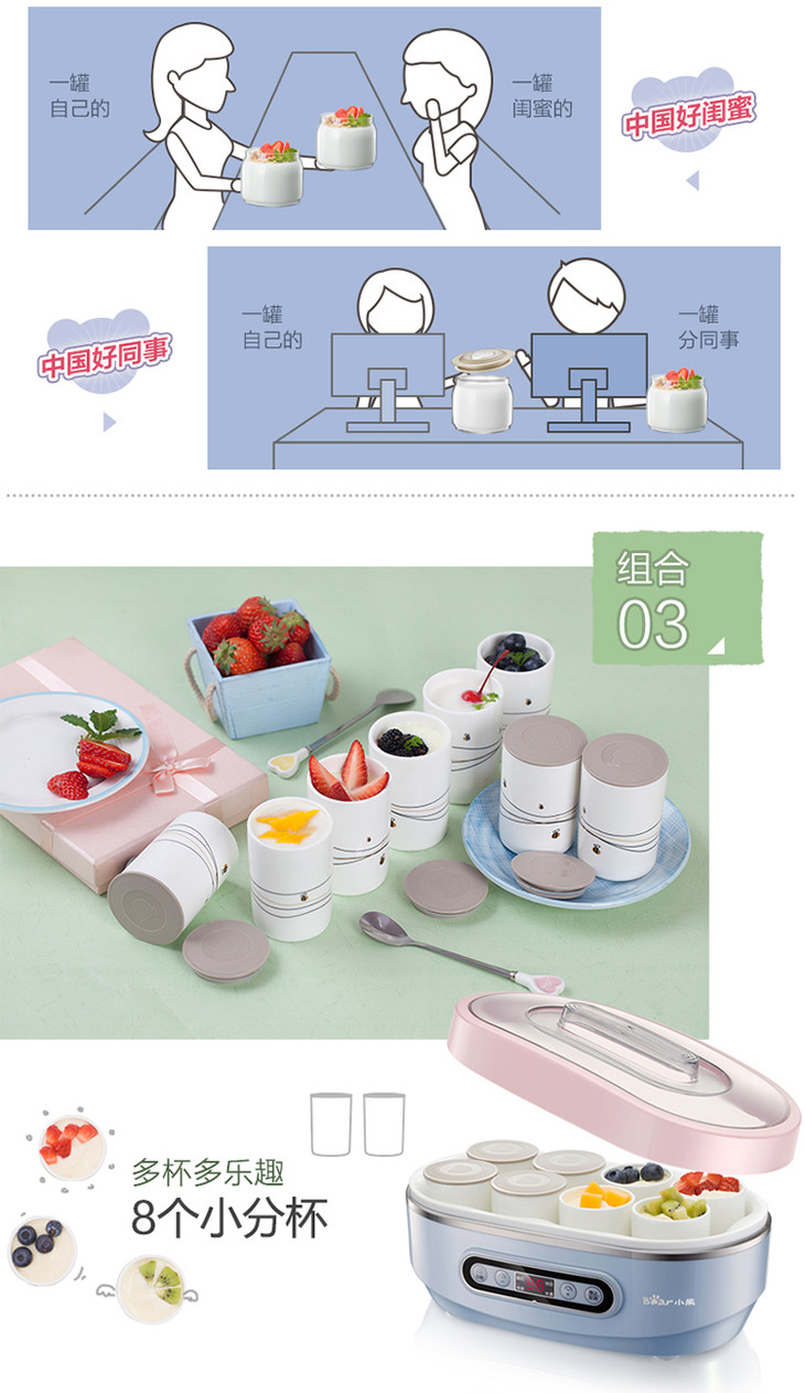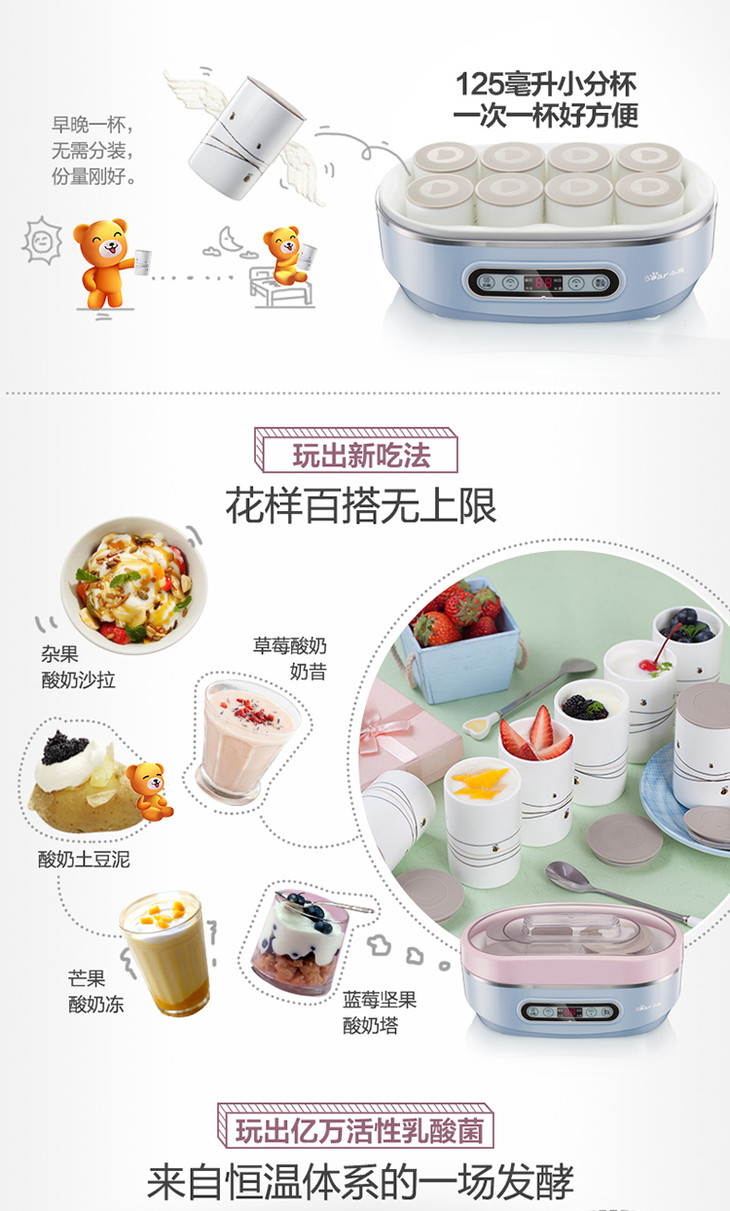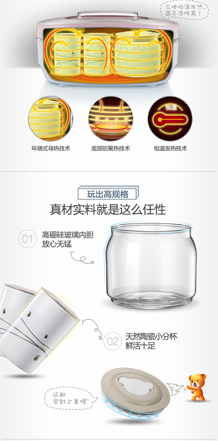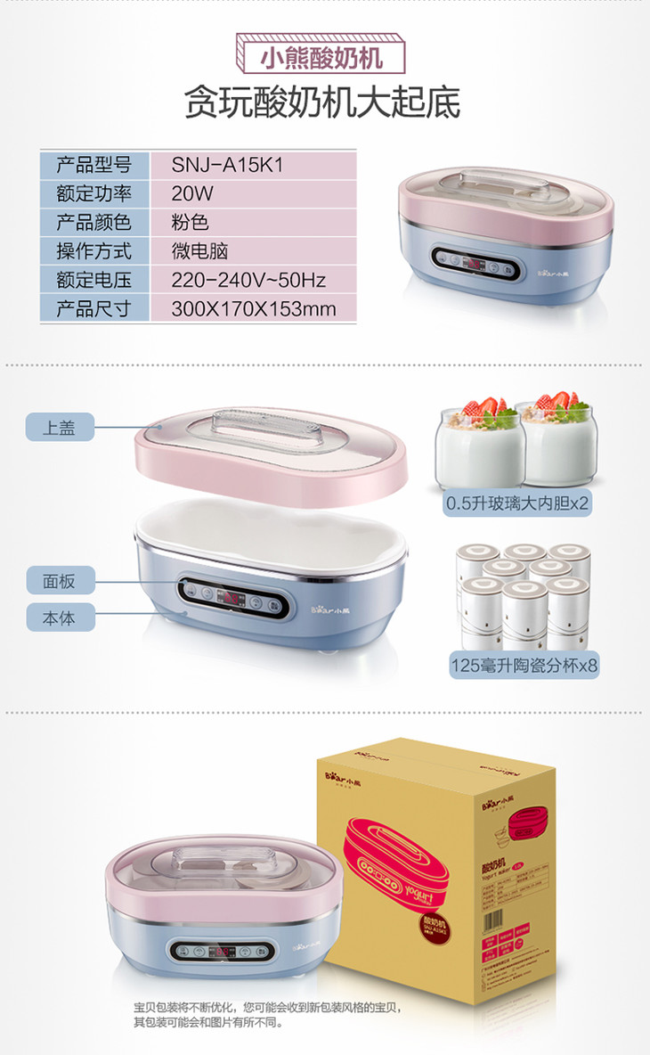 【家用电器】【小熊酸奶机SNJ-A15K1】多功能酸奶机 2玻璃胆+8分杯