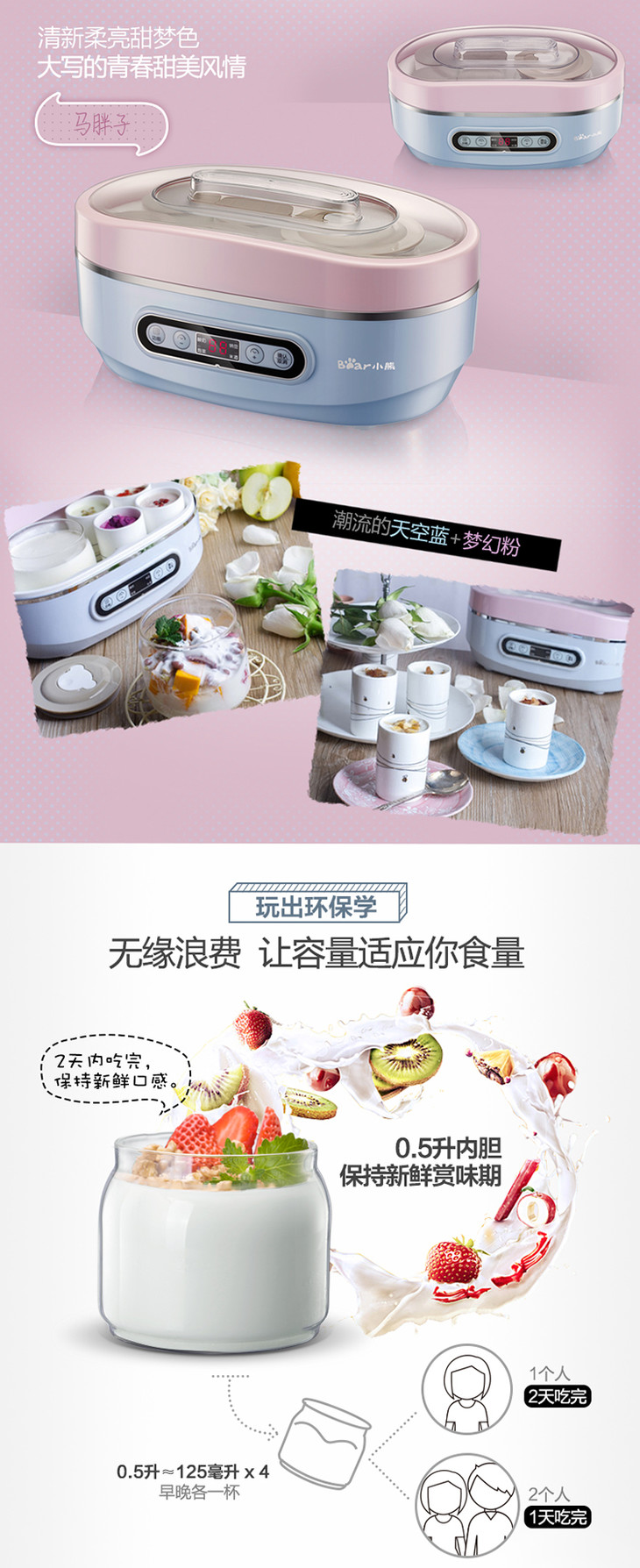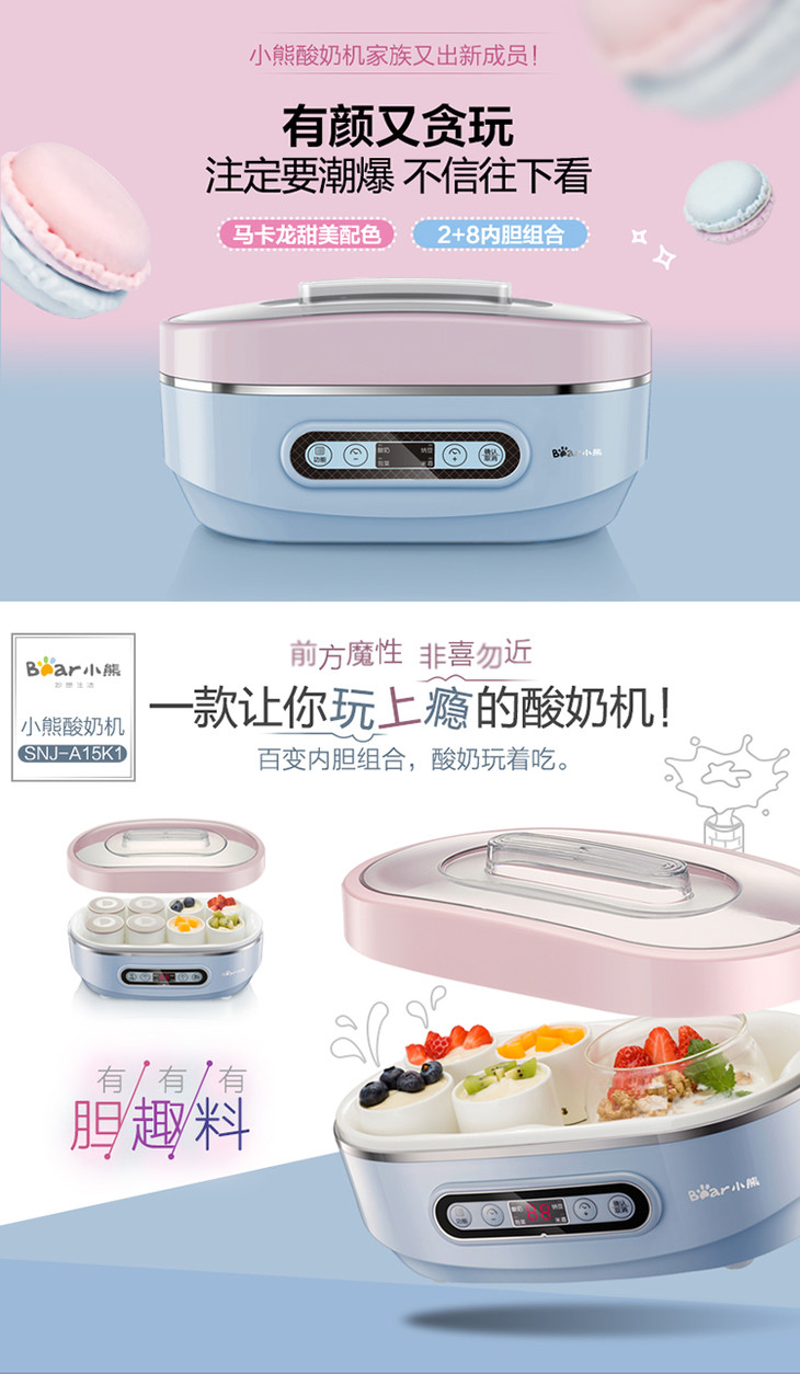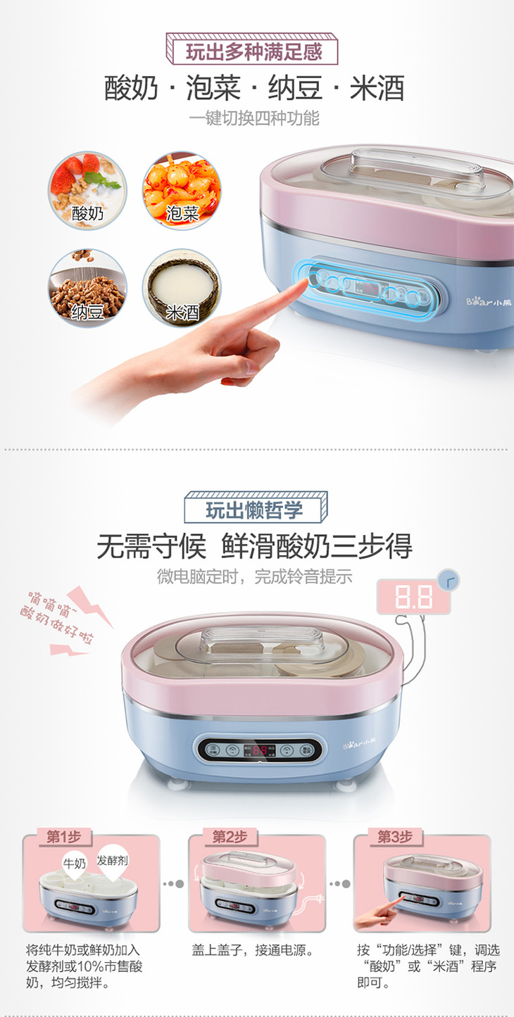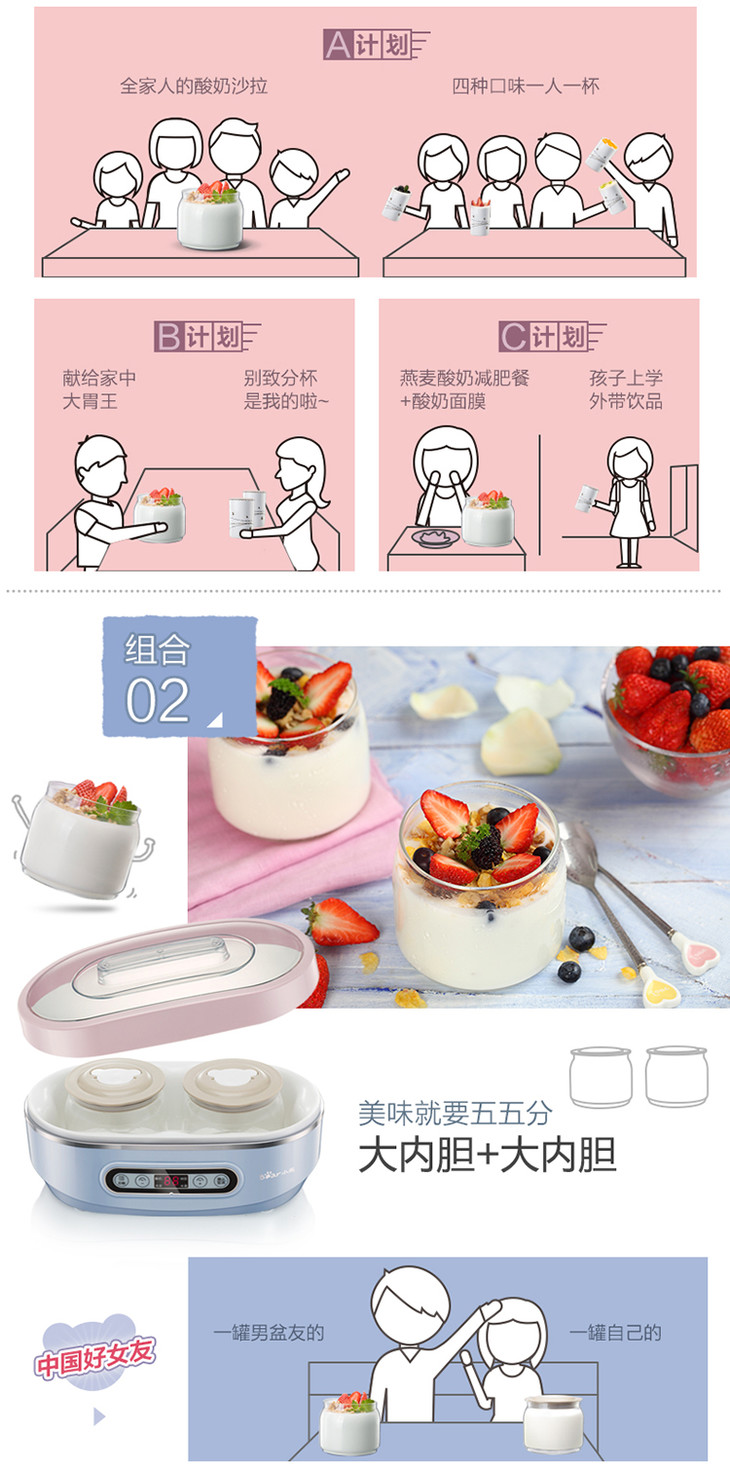 【家用电器】【小熊酸奶机SNJ-A15K1】多功能酸奶机 2玻璃胆+8分杯