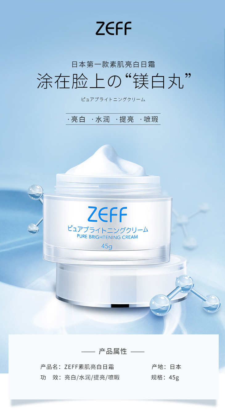 【保税区直发】日本 zeff 素颜焕白霜 45g 保湿提亮肤色