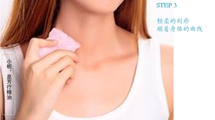 芳疗按摩油在刮痧时,请一定要温柔,不要太用力 ,刮痧不一定要出痧。