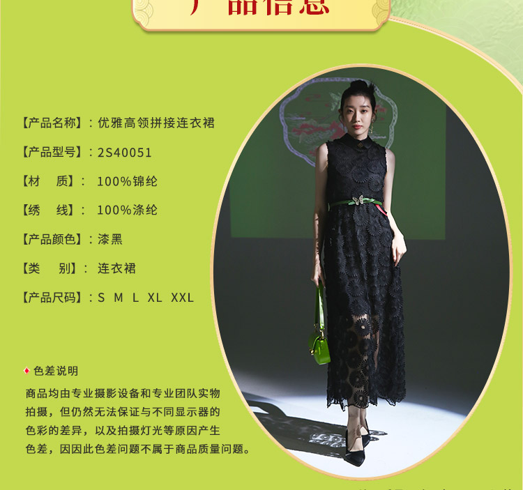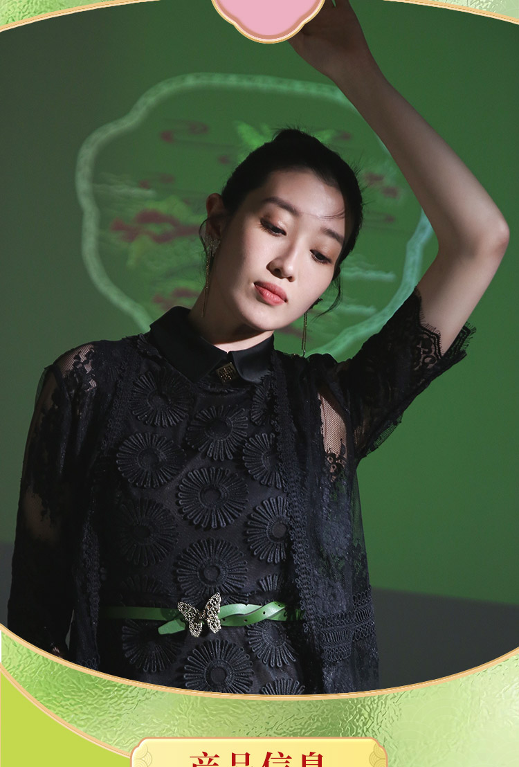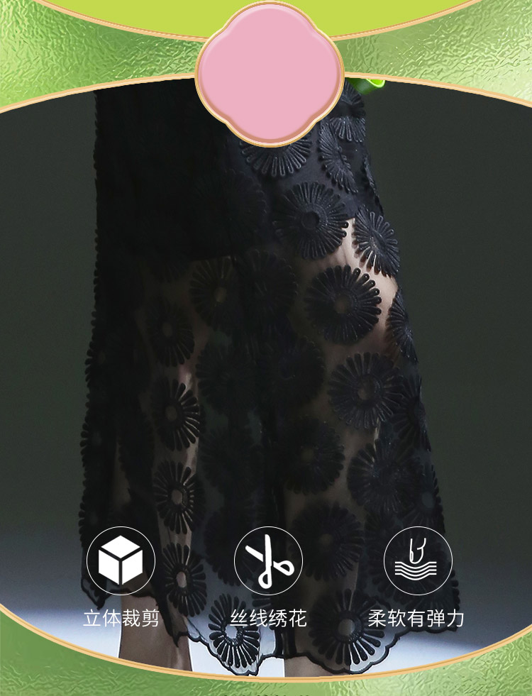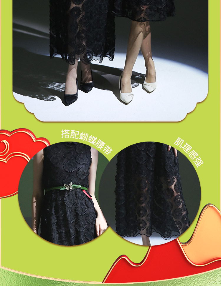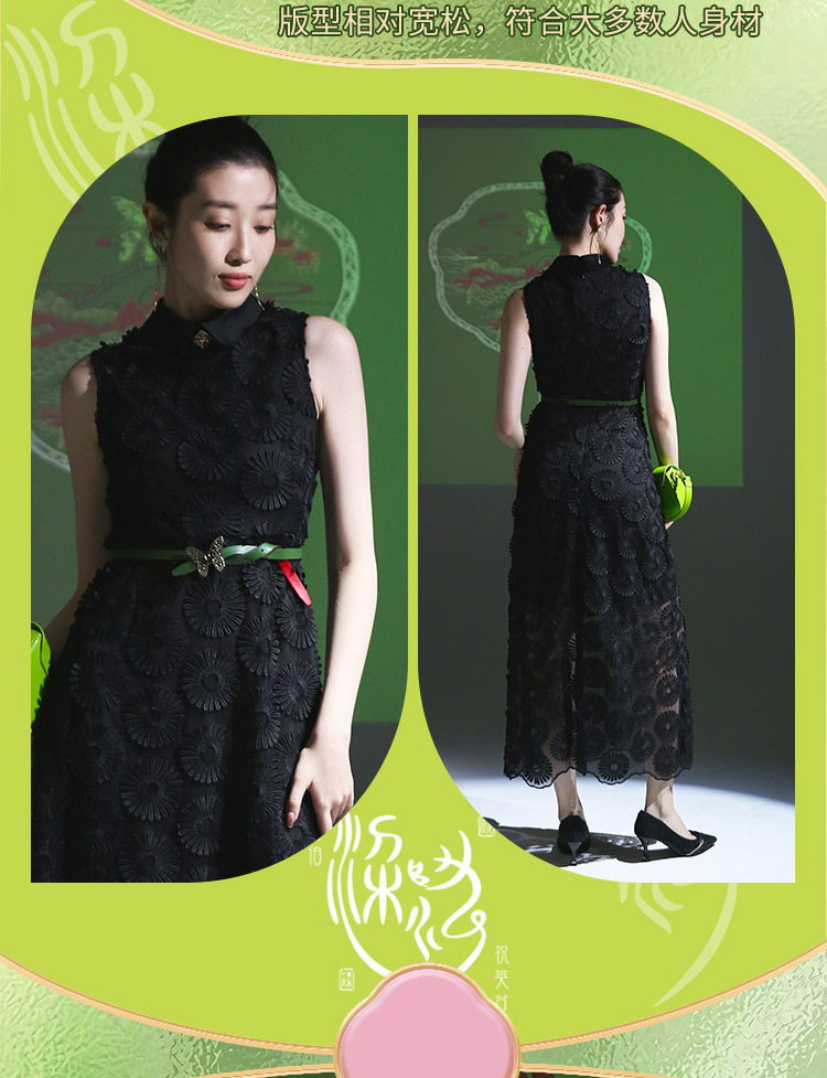千年情话—梁祝草桥结拜漆黑色太阳花长裙2S40051
