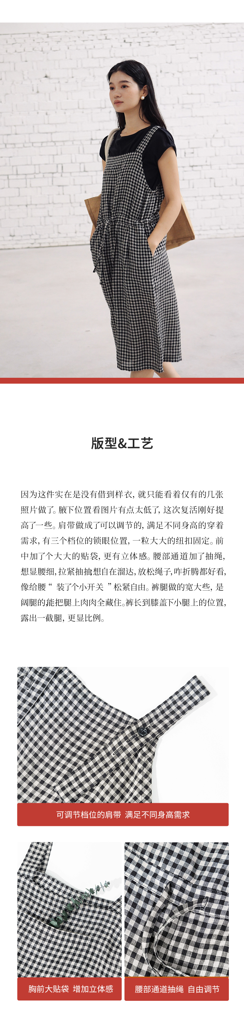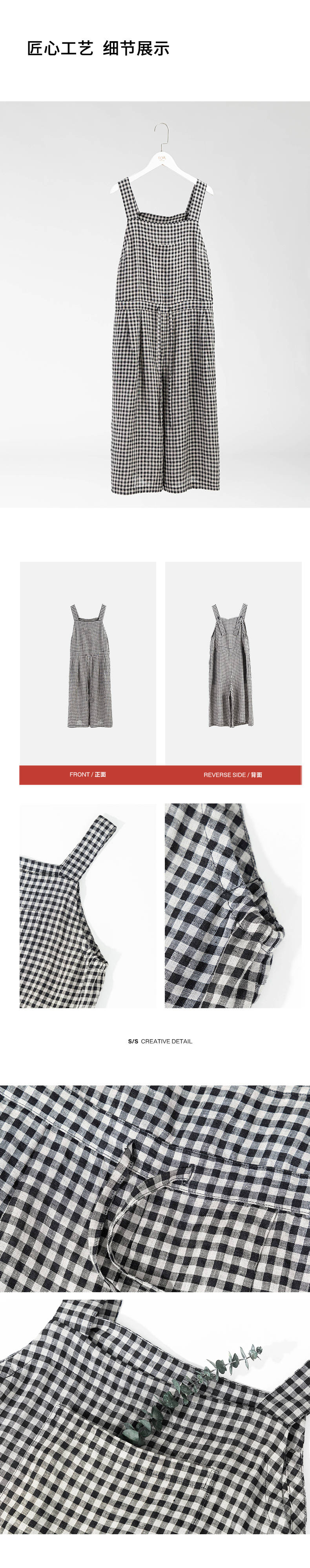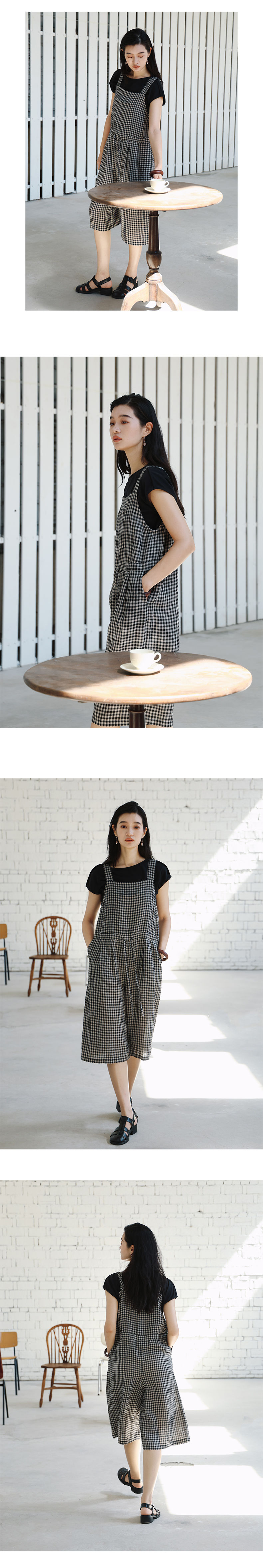 绽放421朵/复活款·2011年亚麻色织格纹连体裤小方格可调节背带裤
