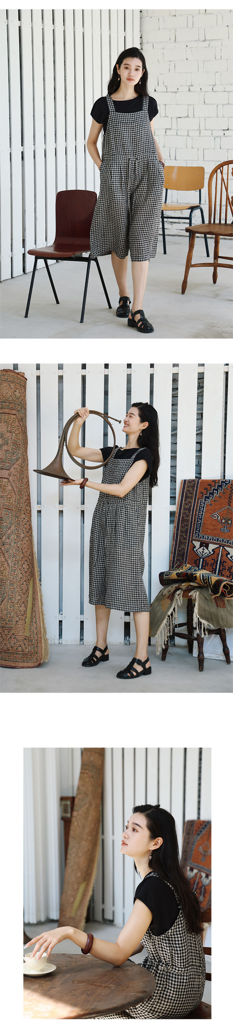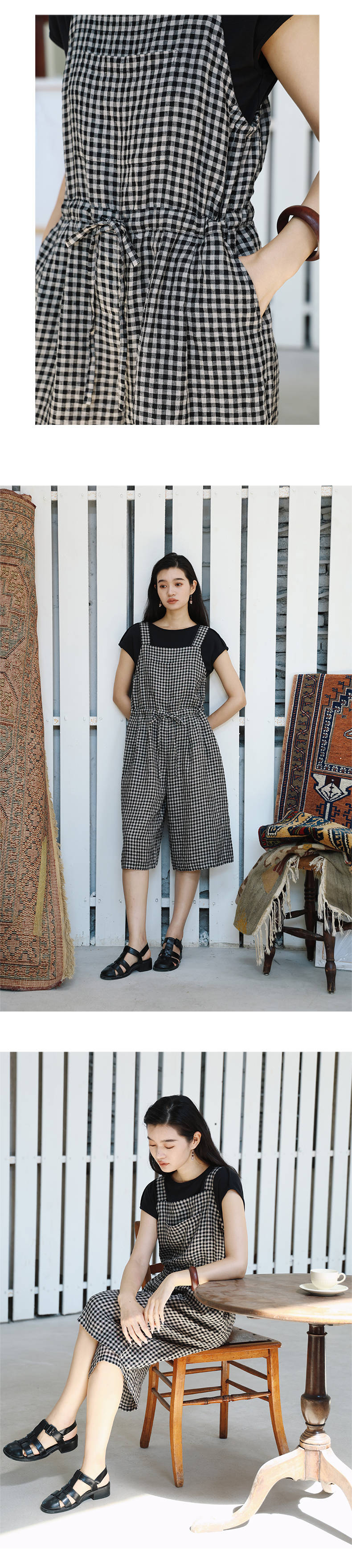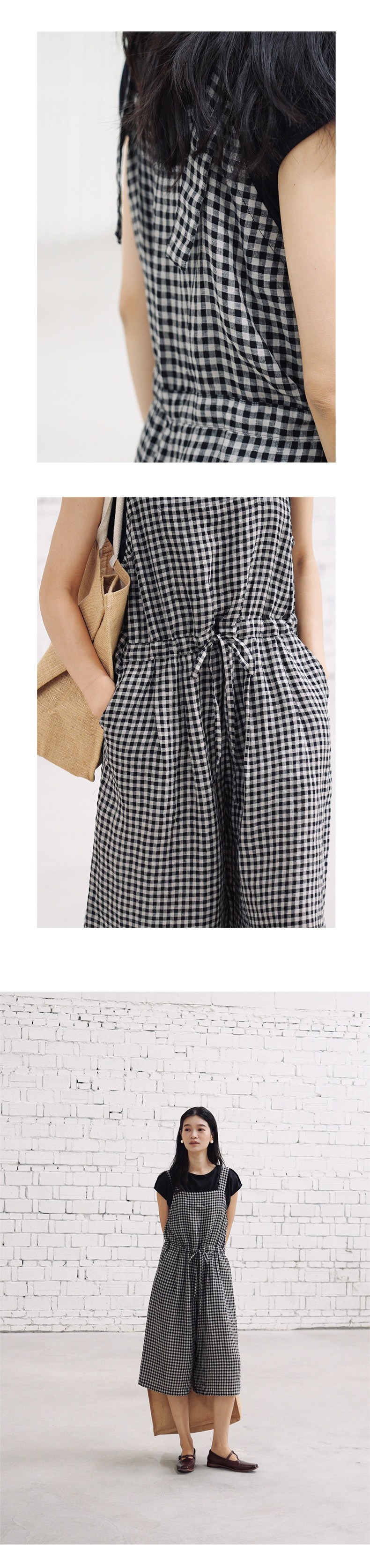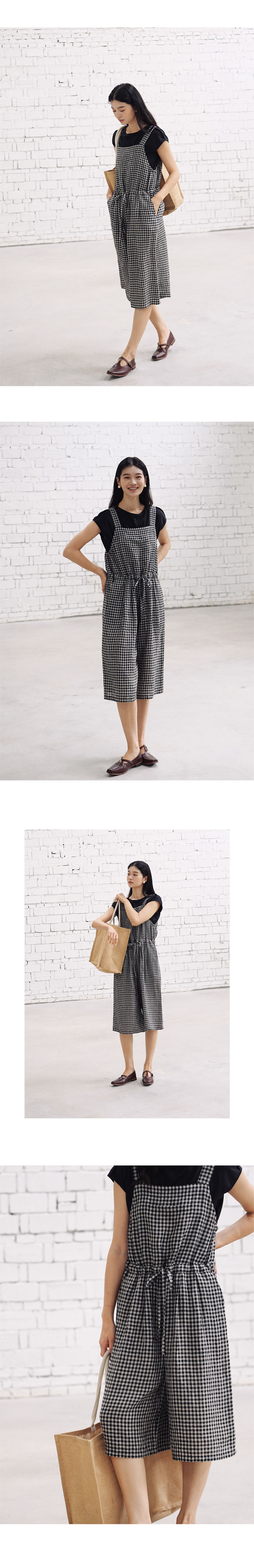 绽放421朵/复活款·2011年亚麻色织格纹连体裤小方格可调节背带裤