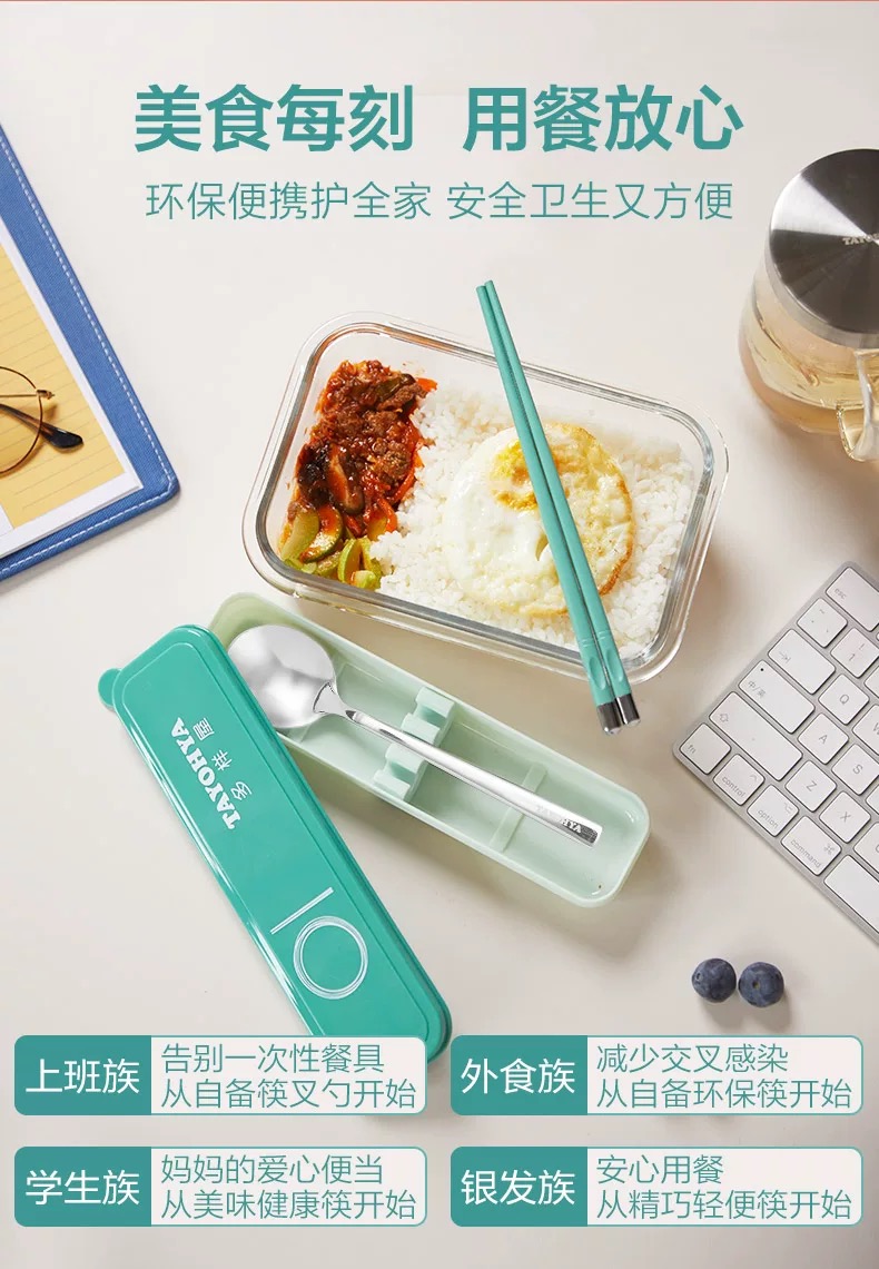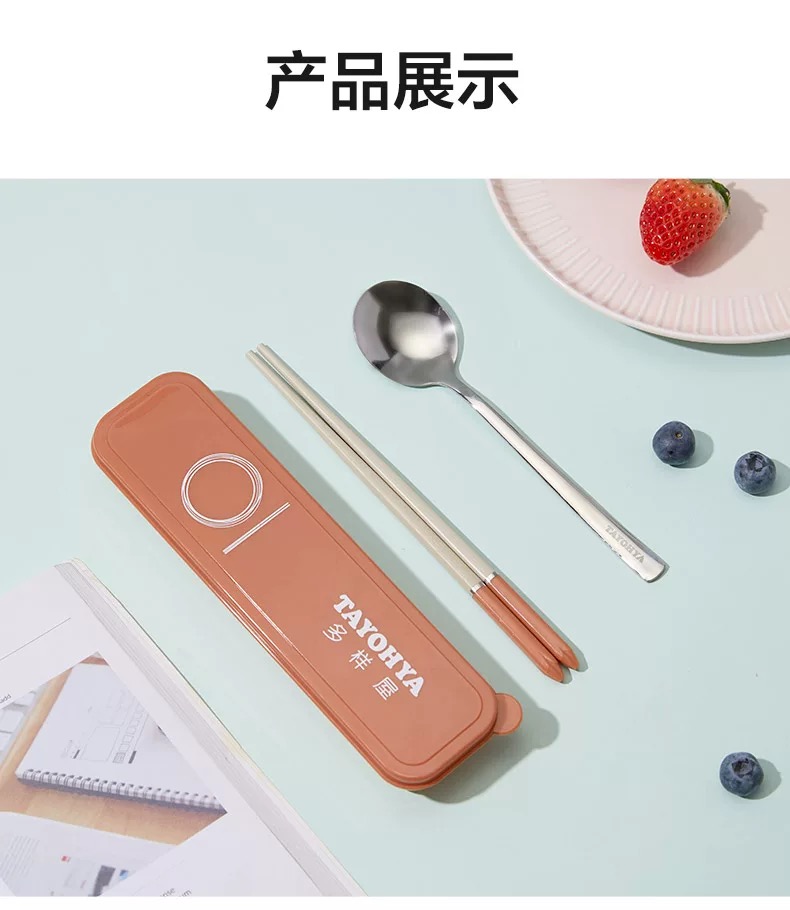 【6F】多样屋(TAYOHYA) 多样屋便携筷子勺子餐具套装一人用办公室学生儿童静音便携式筷子盒外带 二件套/四季花开玛瑙红