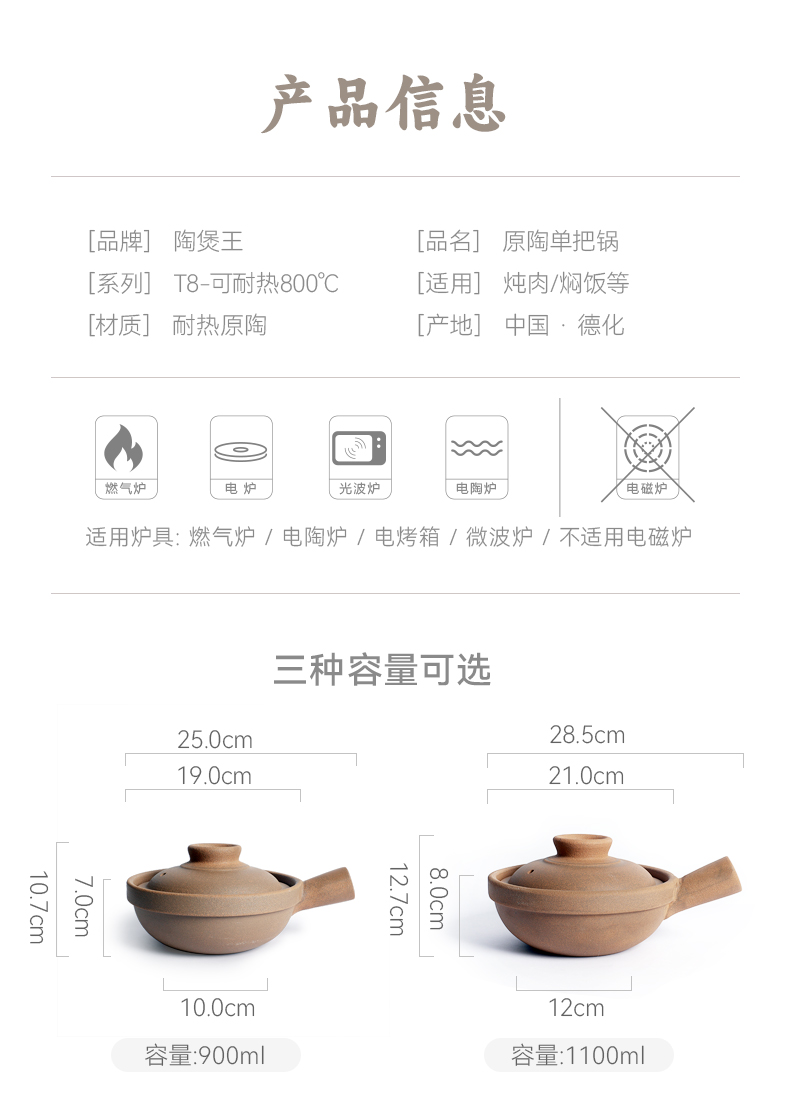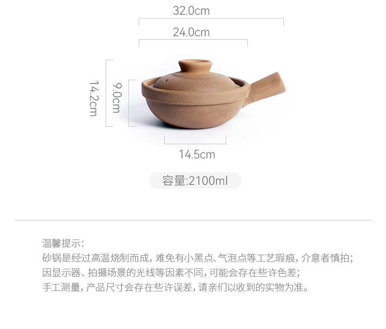 【原陶单把锅】陶煲王无釉原陶单把砂锅煲仔饭专用沙锅家用干烧不裂耐高温砂锅正品