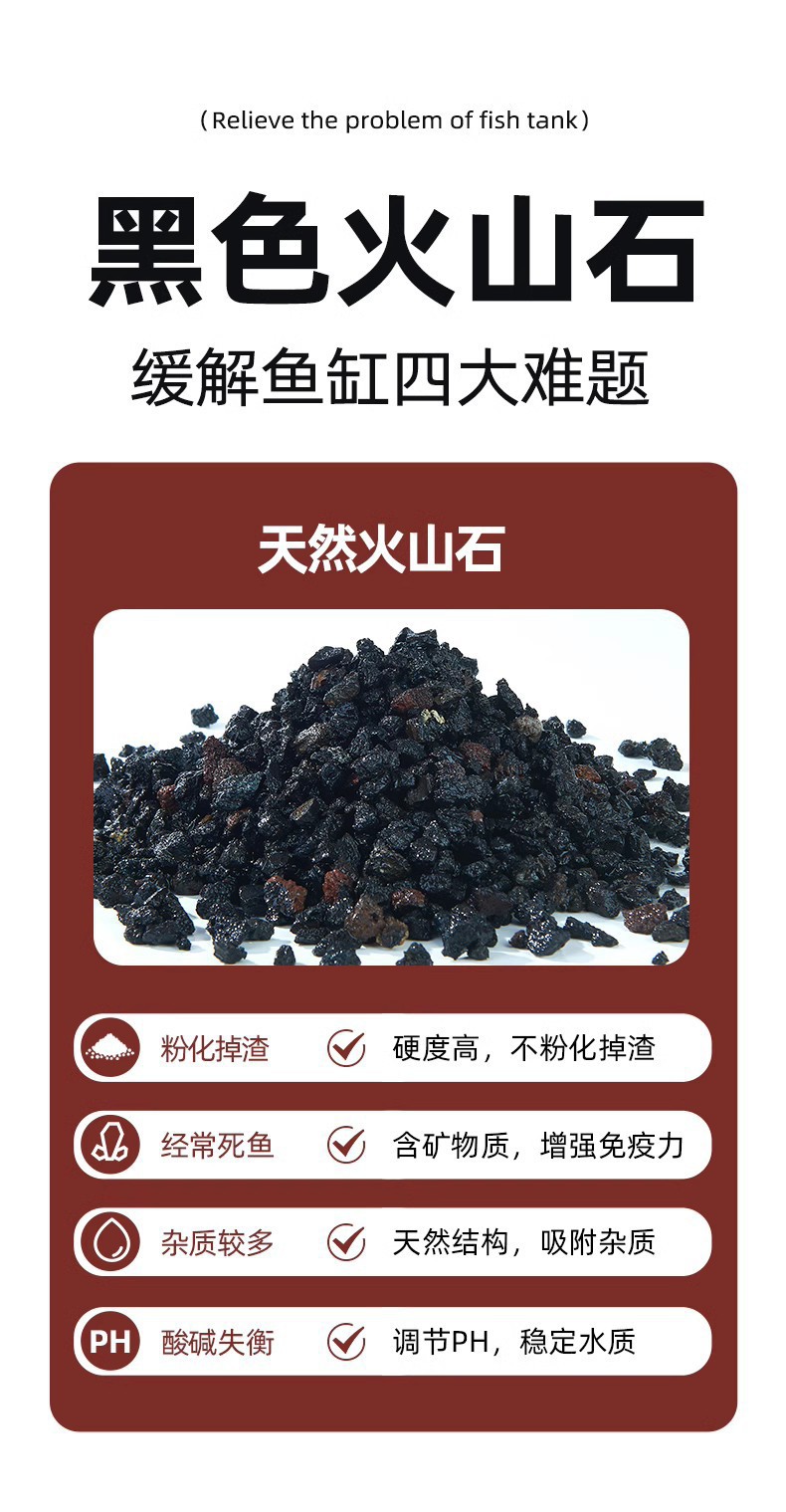 严选【活化水质天然火山石红色1-2cm】大块颗粒原石滤材鱼缸造景底砂陶粒1kg