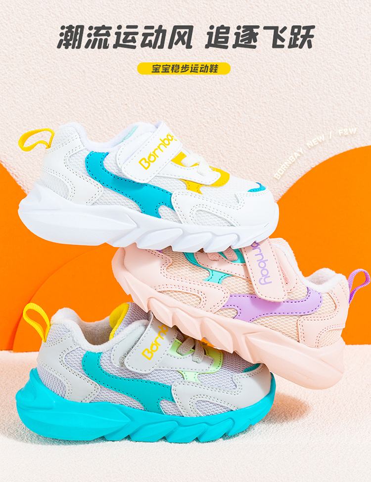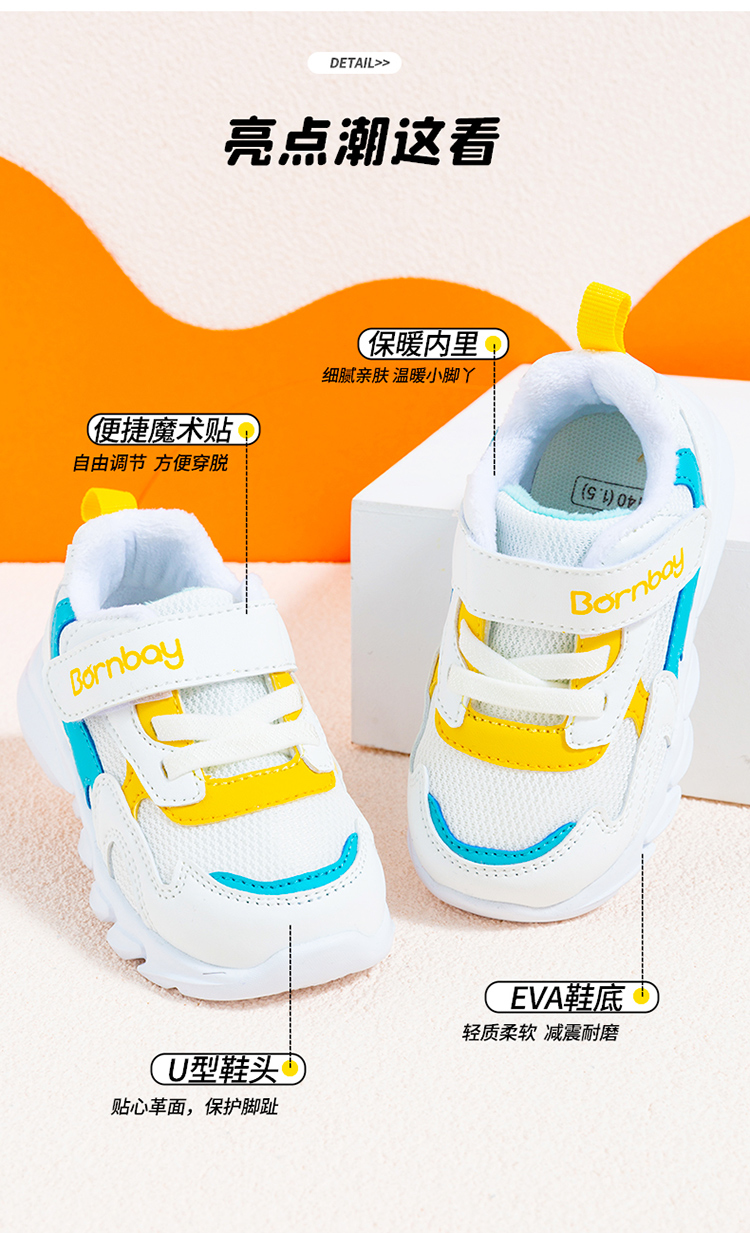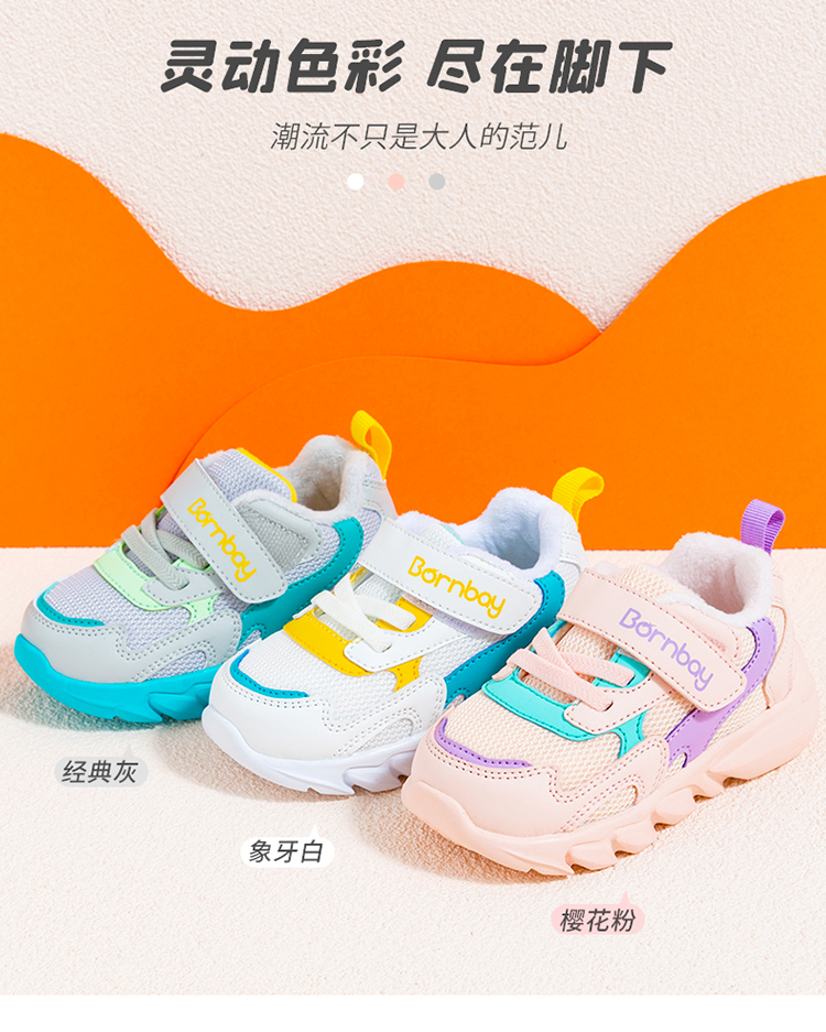 贝贝怡童鞋秋冬新品儿童稳步鞋时尚中小童宝宝网面加绒保暖鞋子224X427