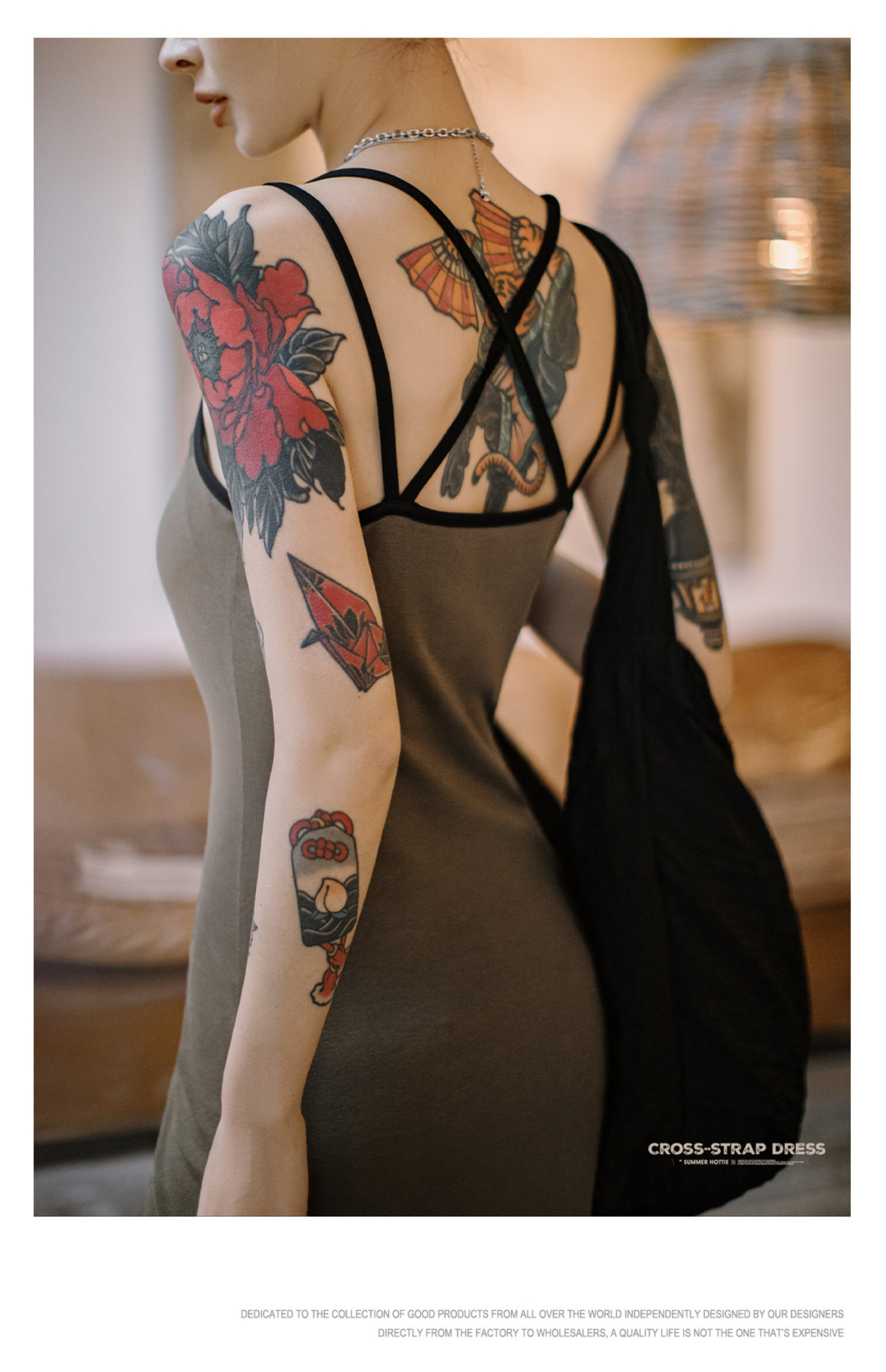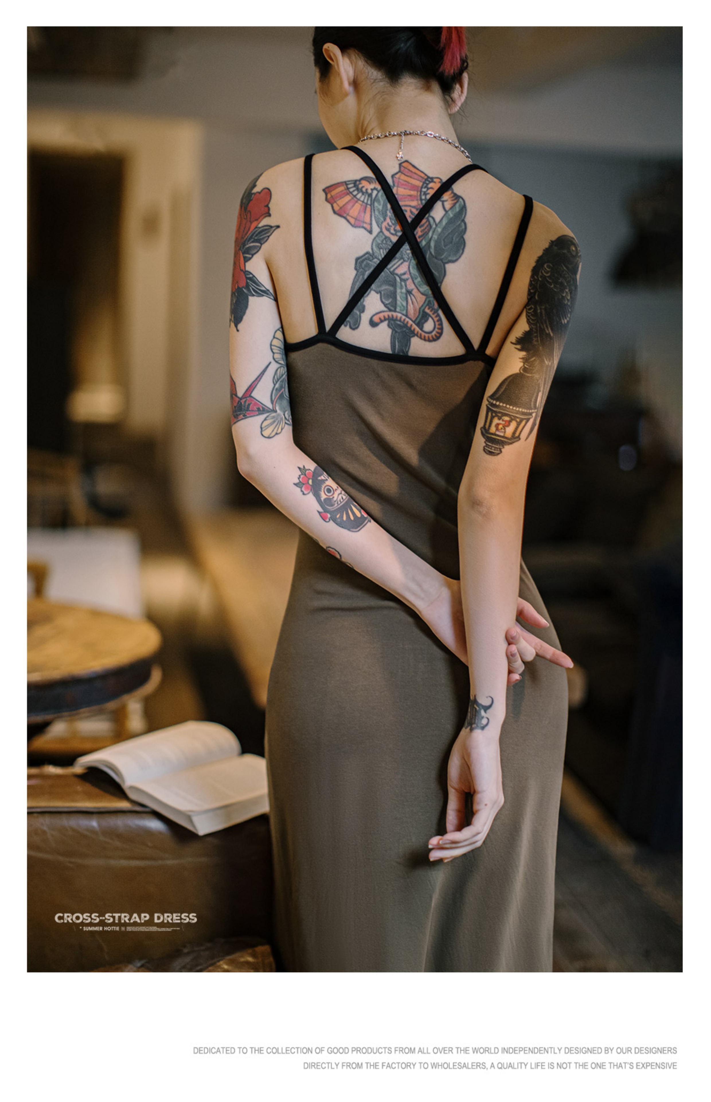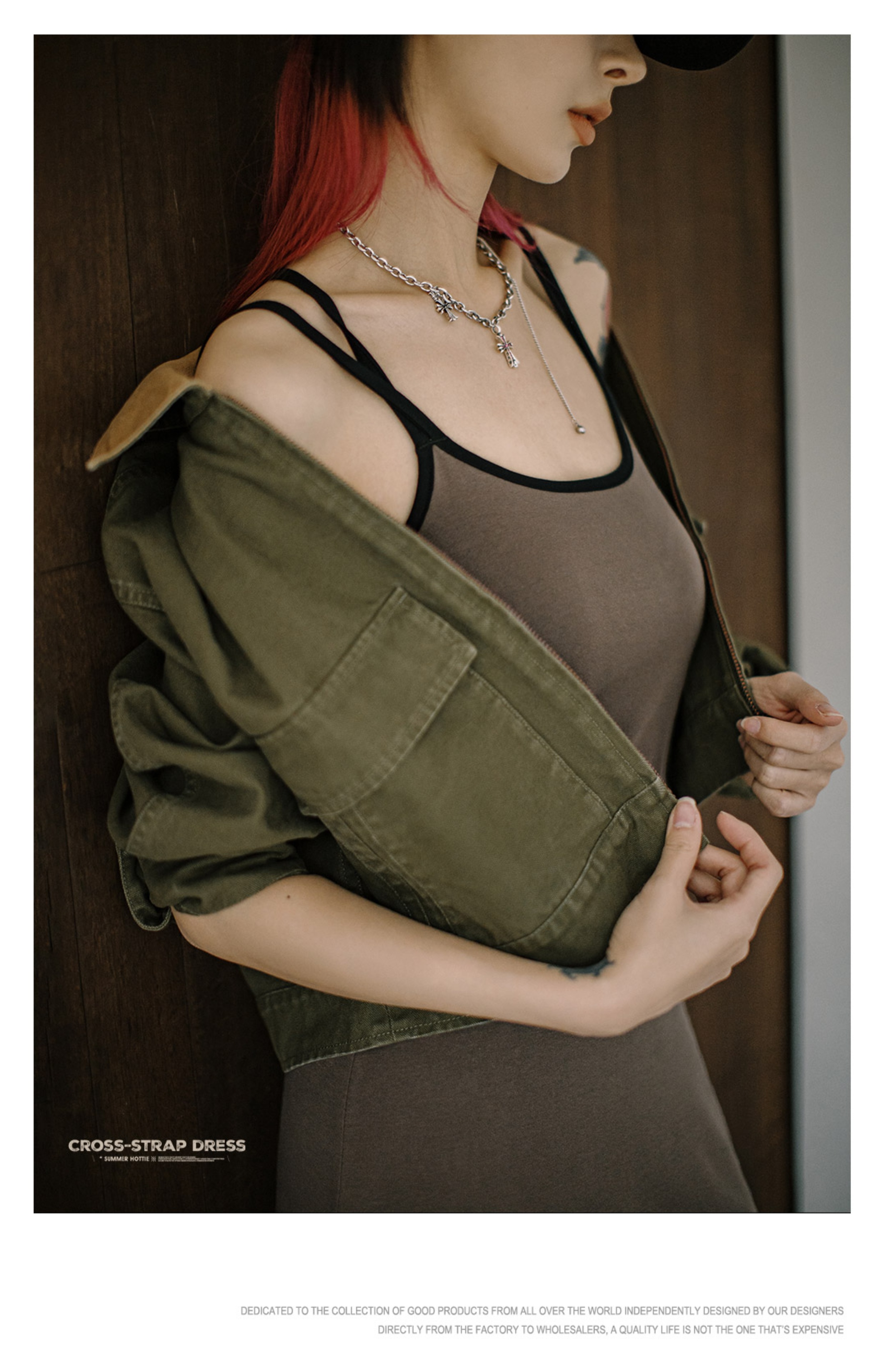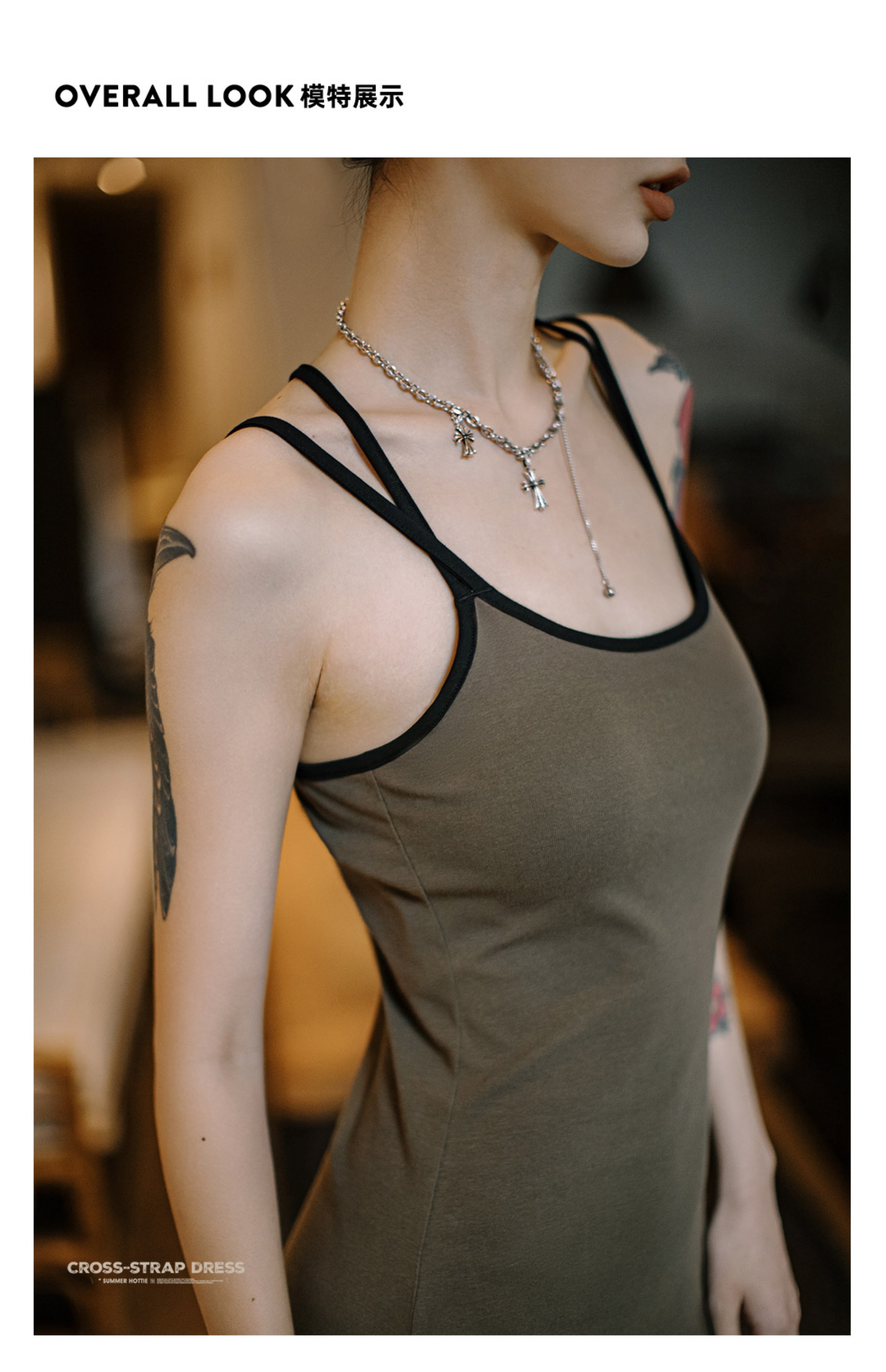 马登格雷系卡戴珊修身交叉吊带背心连衣裙无袖露背U领针织长裙春