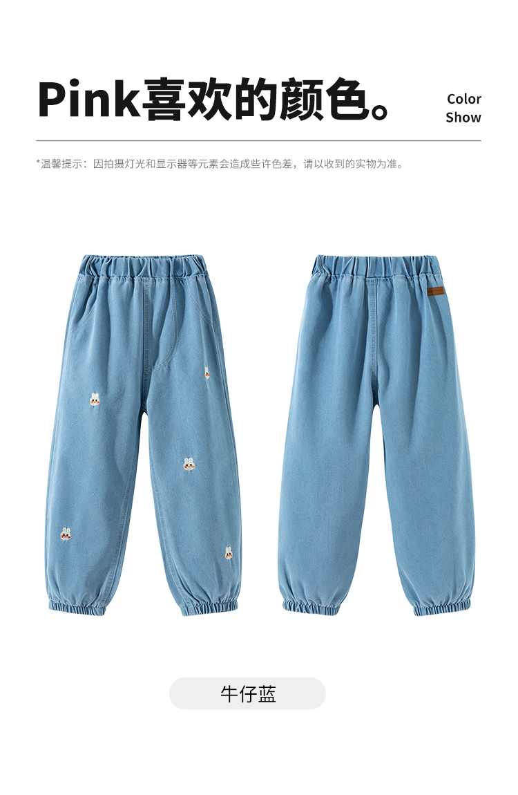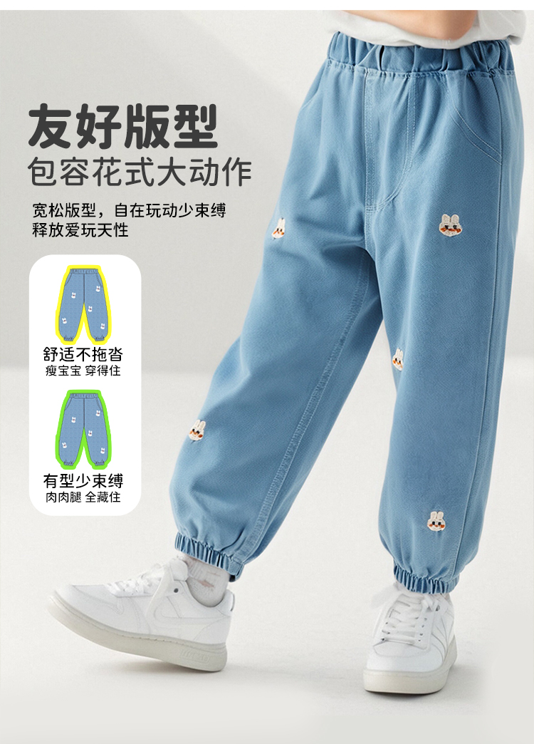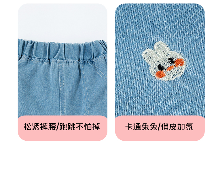 贝贝怡2025春秋新款柔软牛仔裤中大童百搭休闲裤刺绣萌兔女孩牛仔裤ZB3EK017