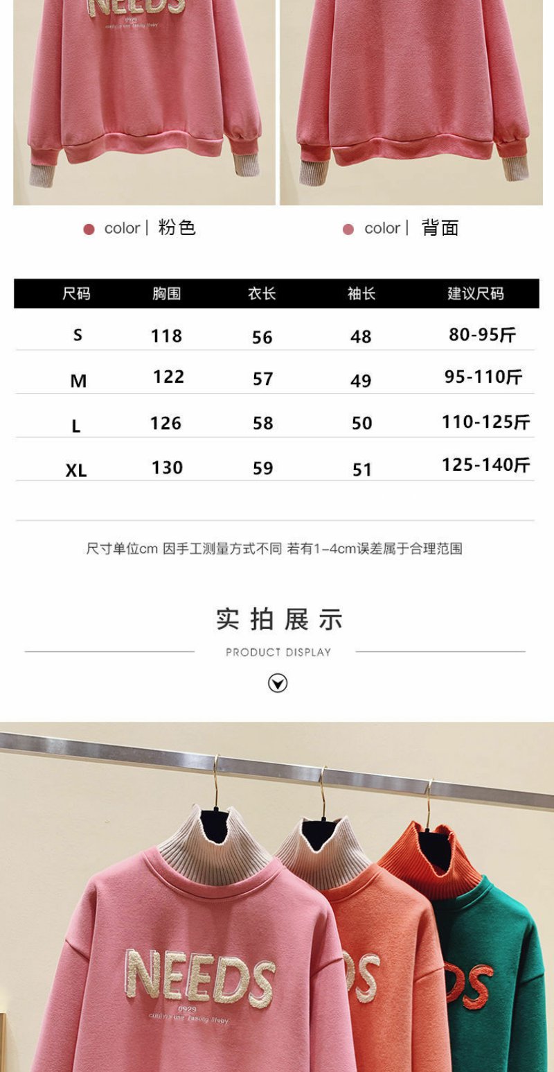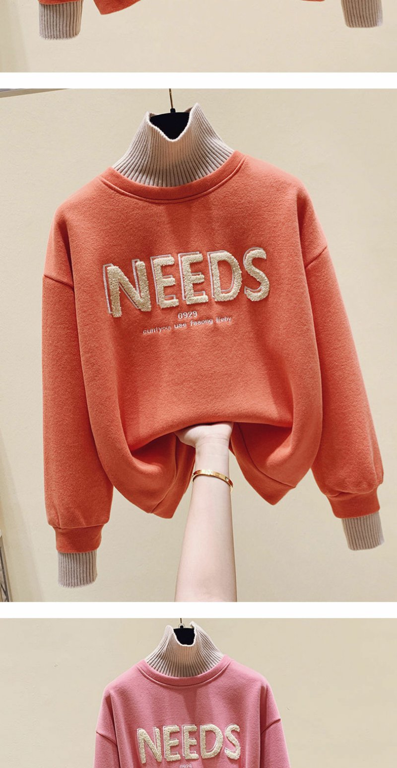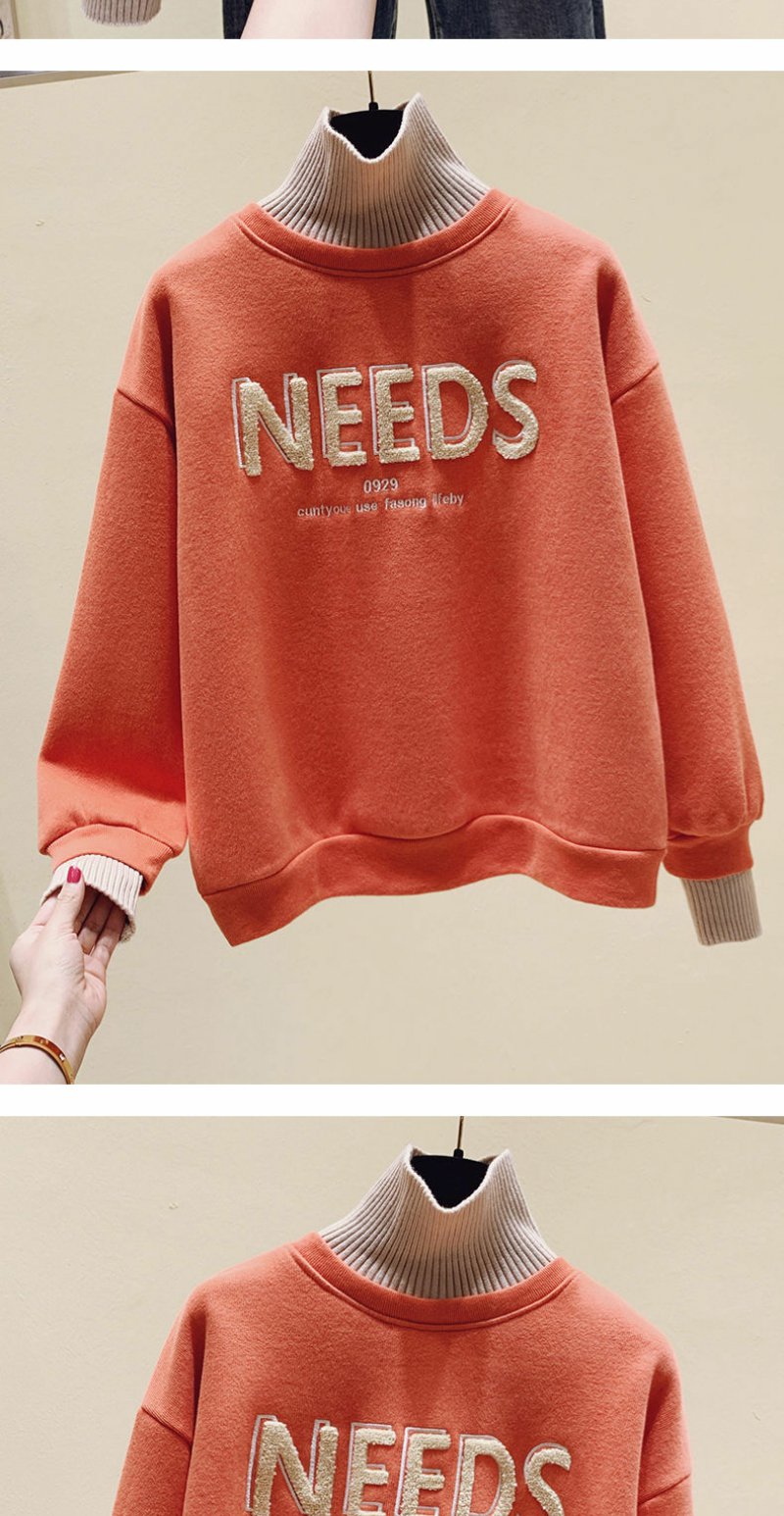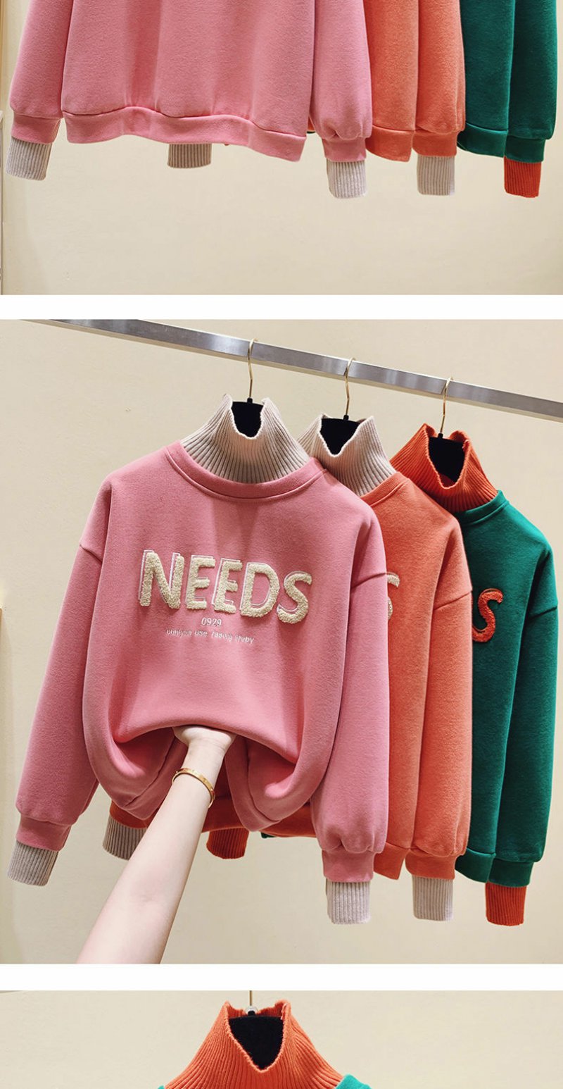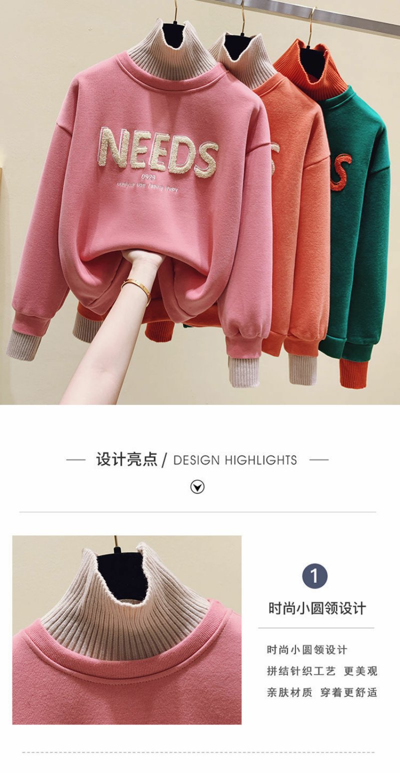秋冬季加绒加厚卫衣女装2021新款潮韩版宽松半高领打底衫薄款上衣