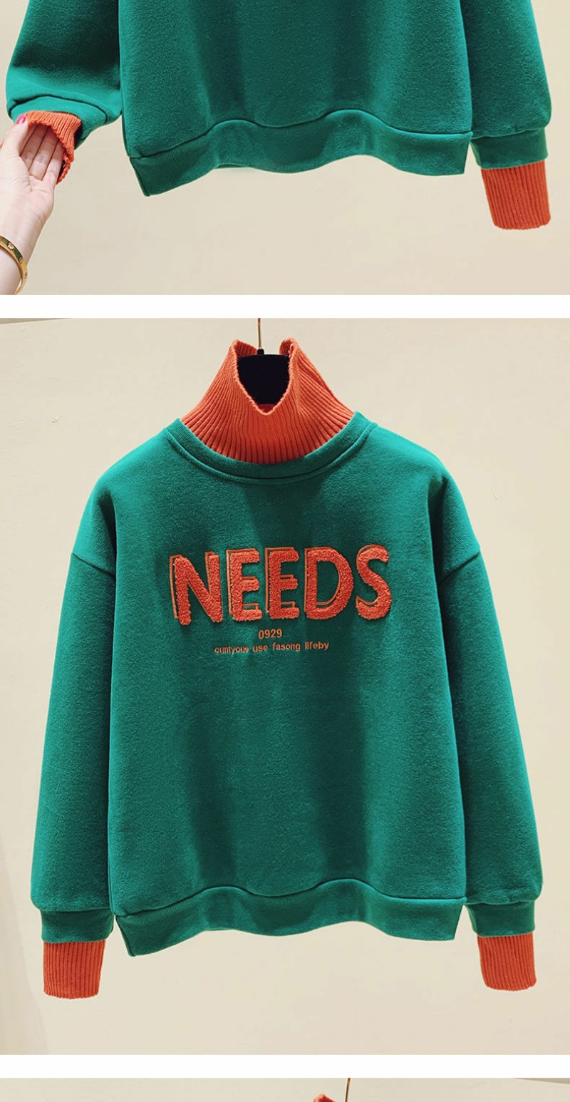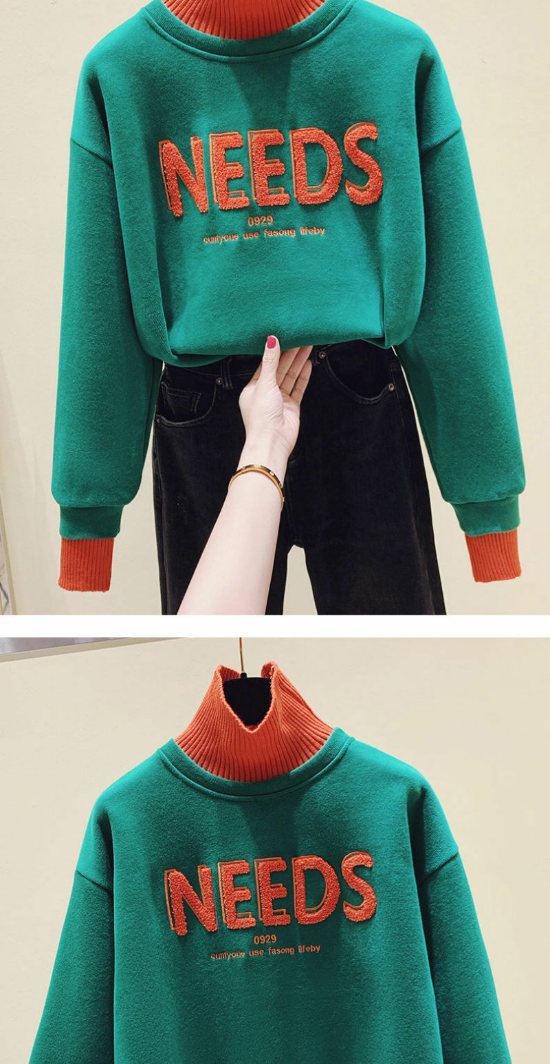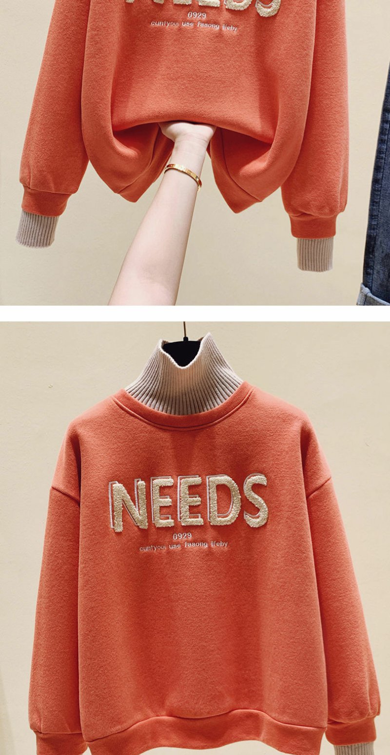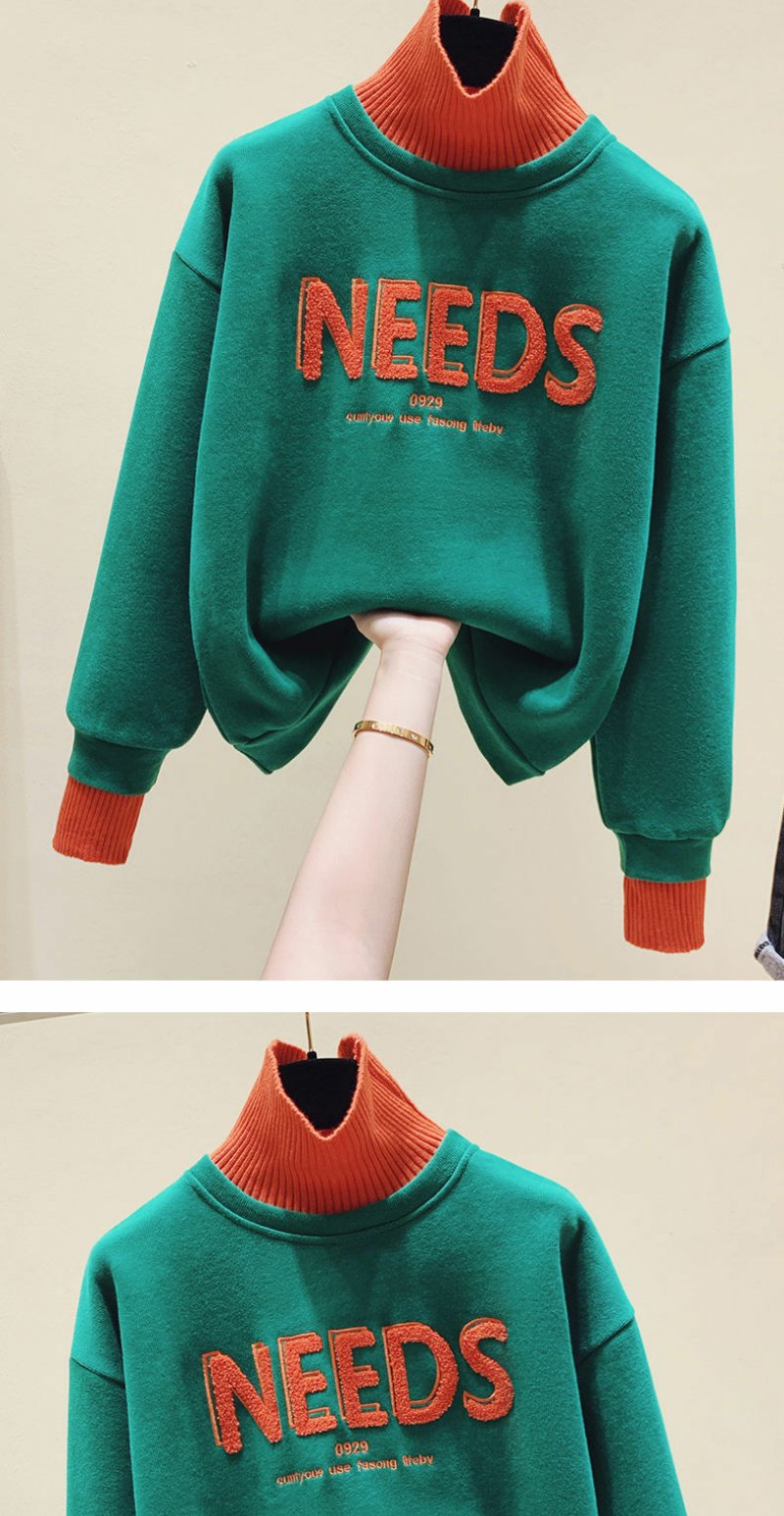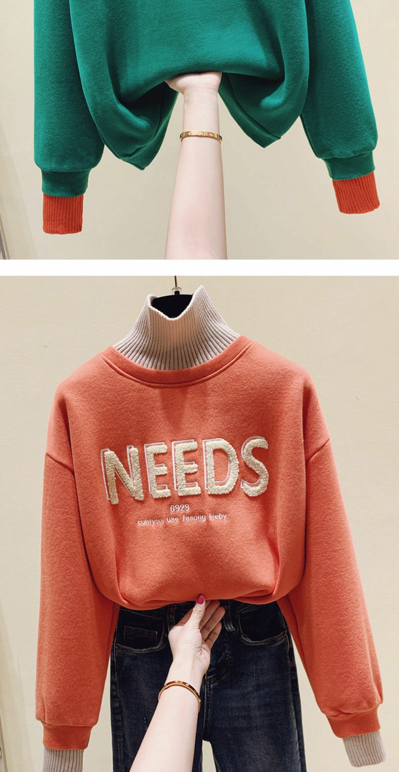 秋冬季加绒加厚卫衣女装2021新款潮韩版宽松半高领打底衫薄款上衣