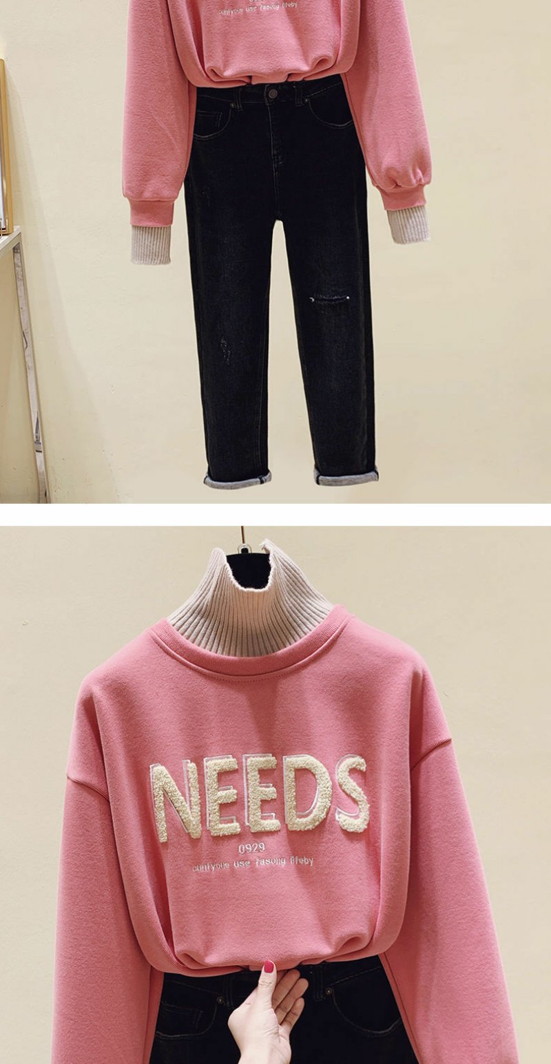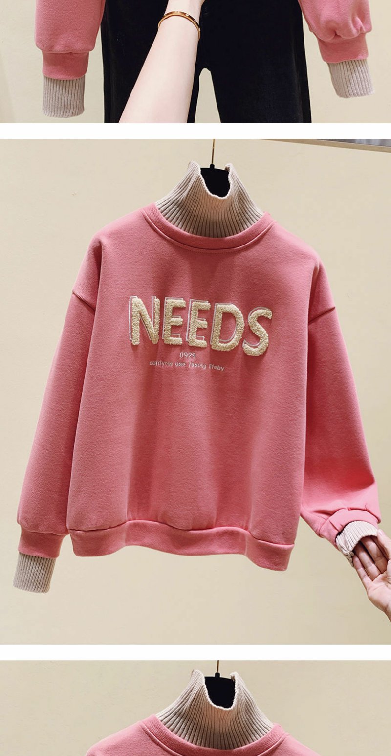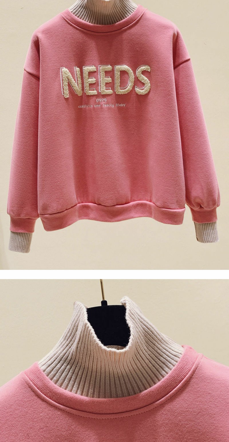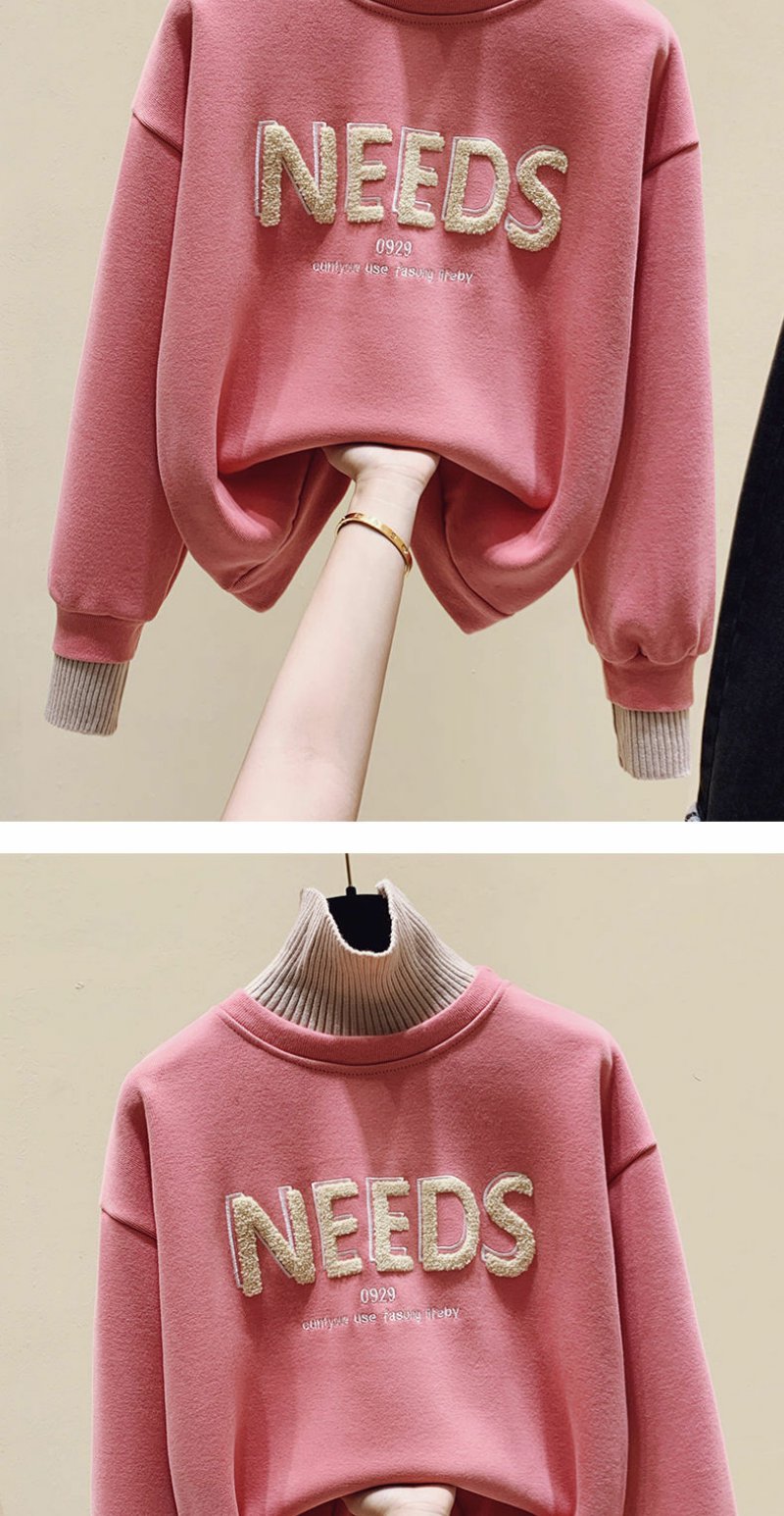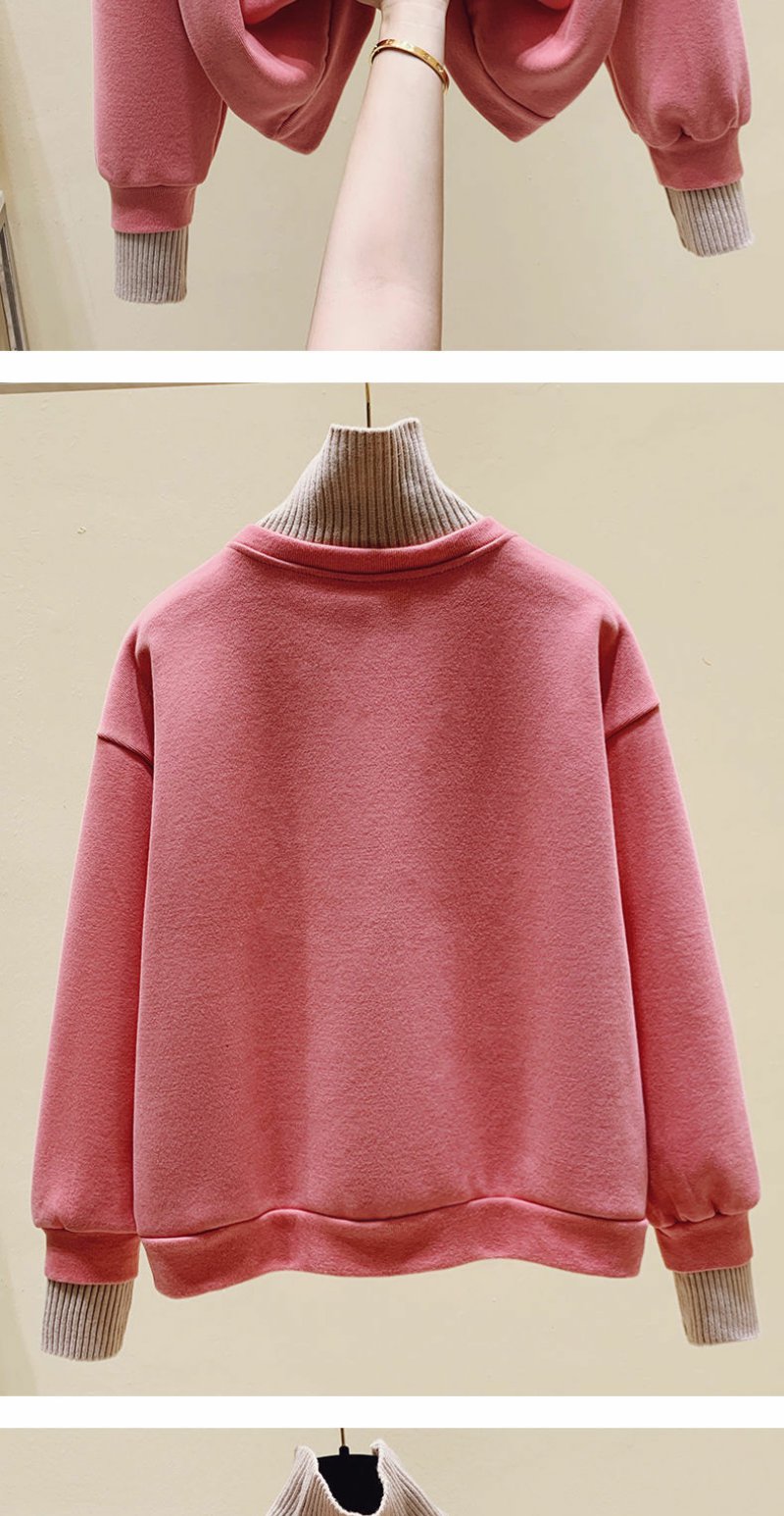 秋冬季加绒加厚卫衣女装2021新款潮韩版宽松半高领打底衫薄款上衣