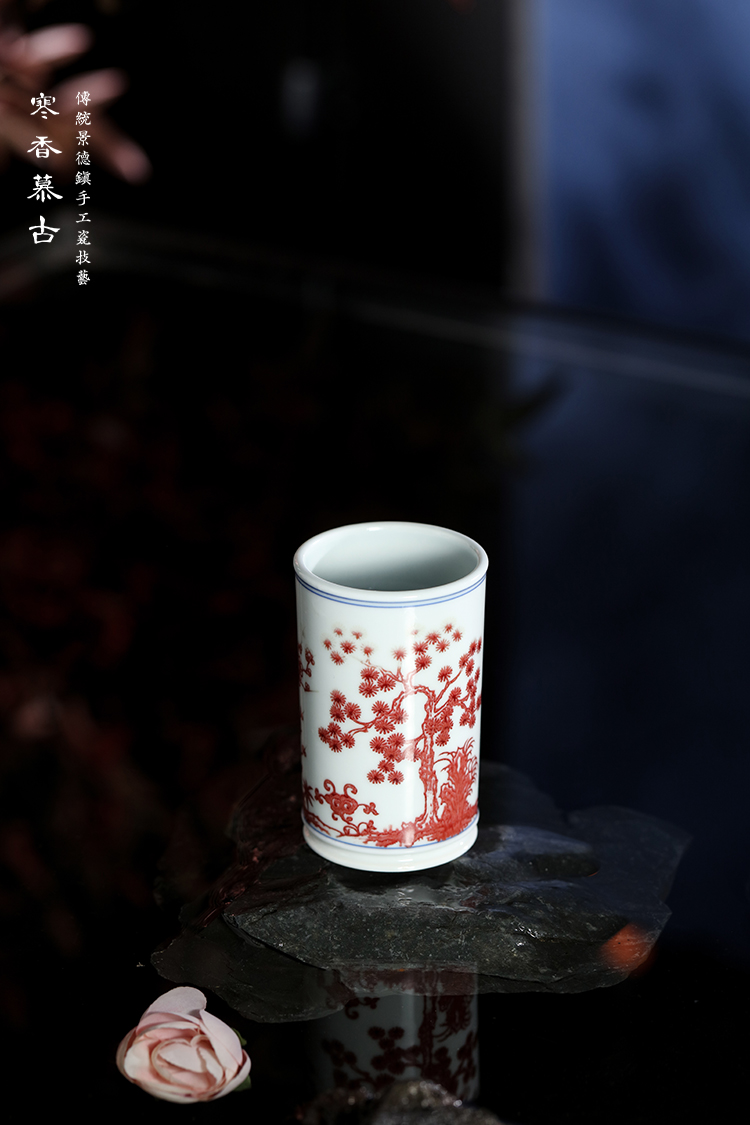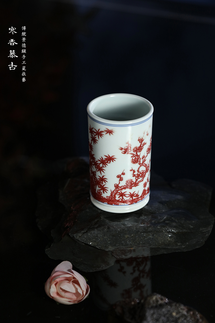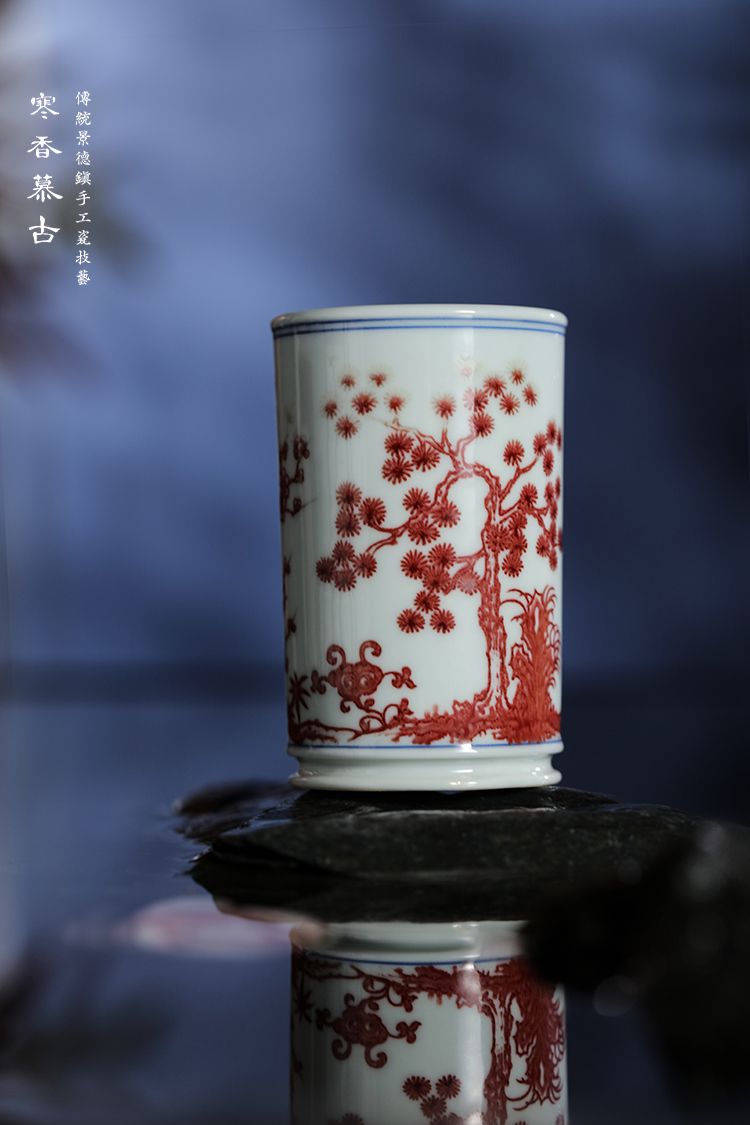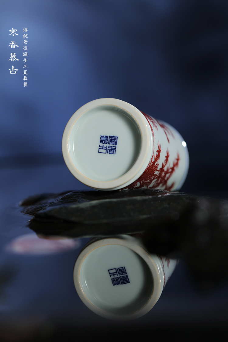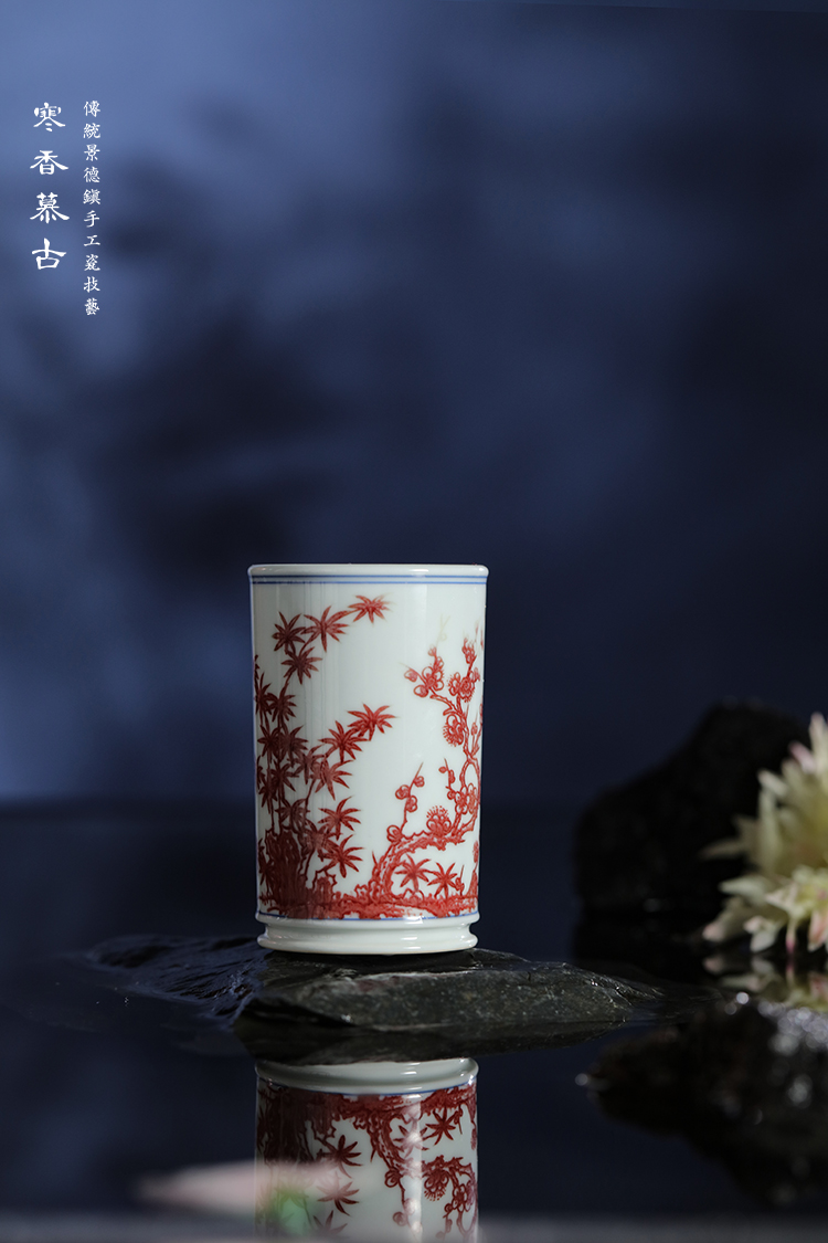 寒香慕古釉里红松竹梅直口杯