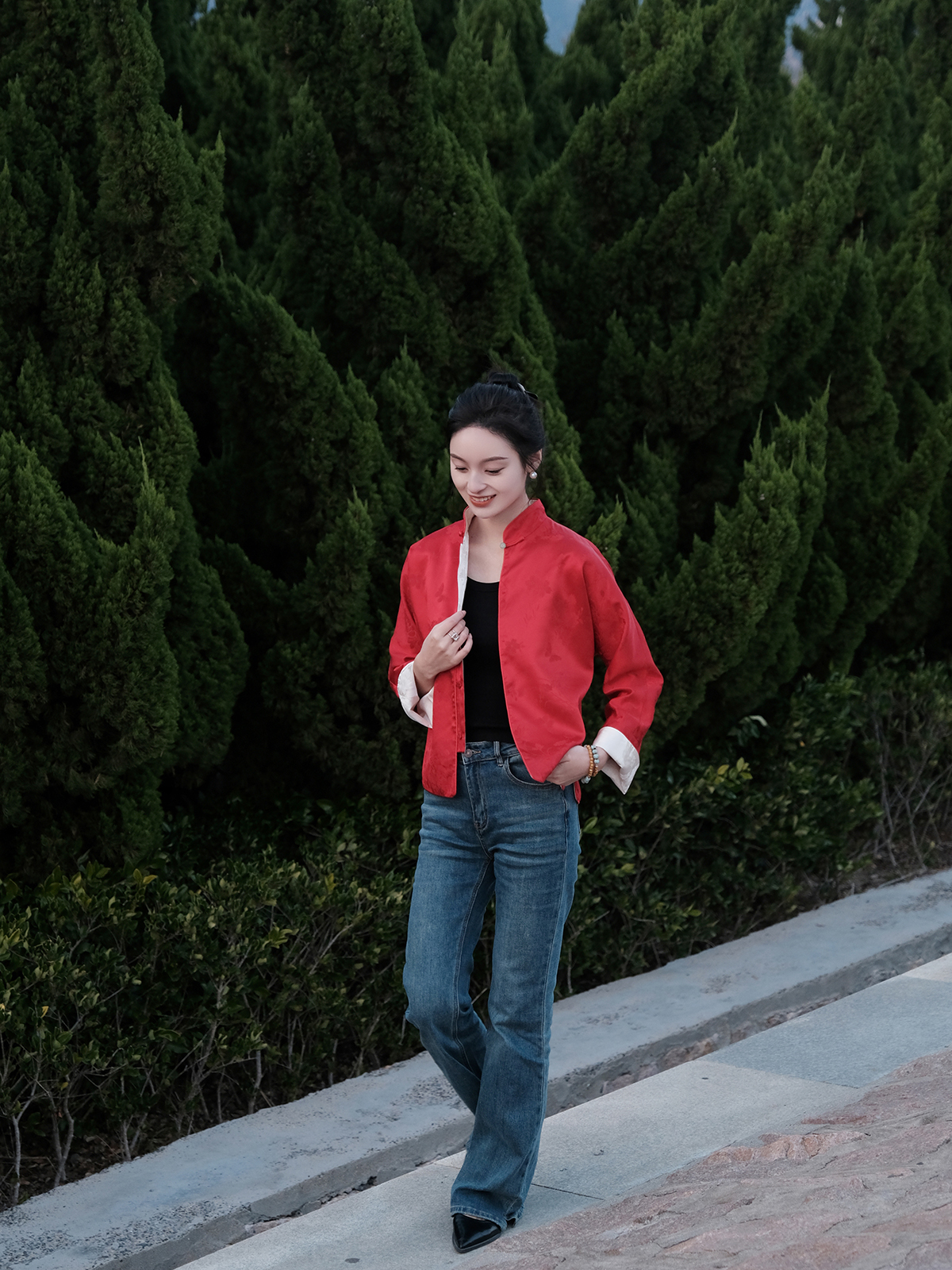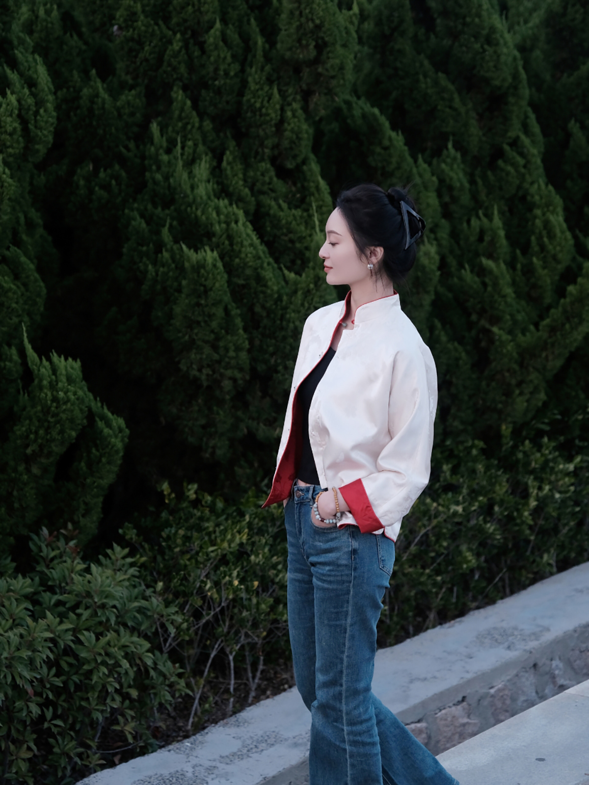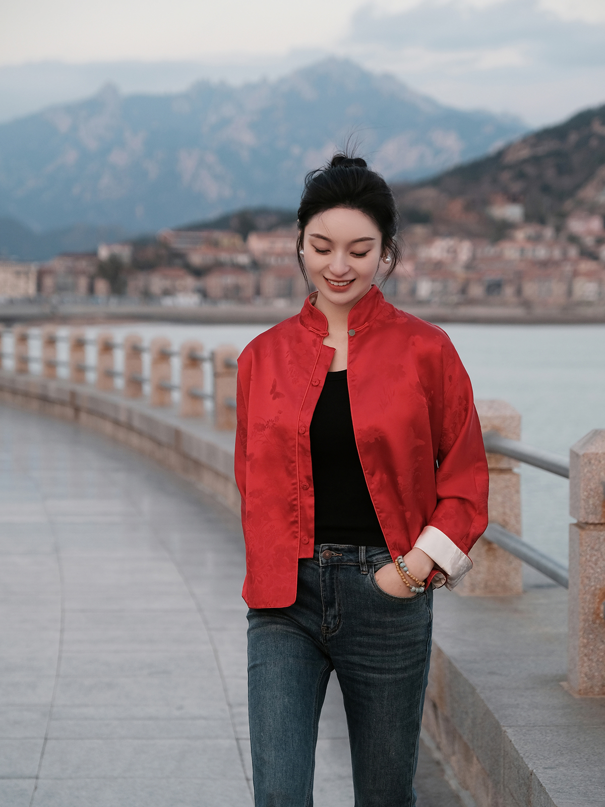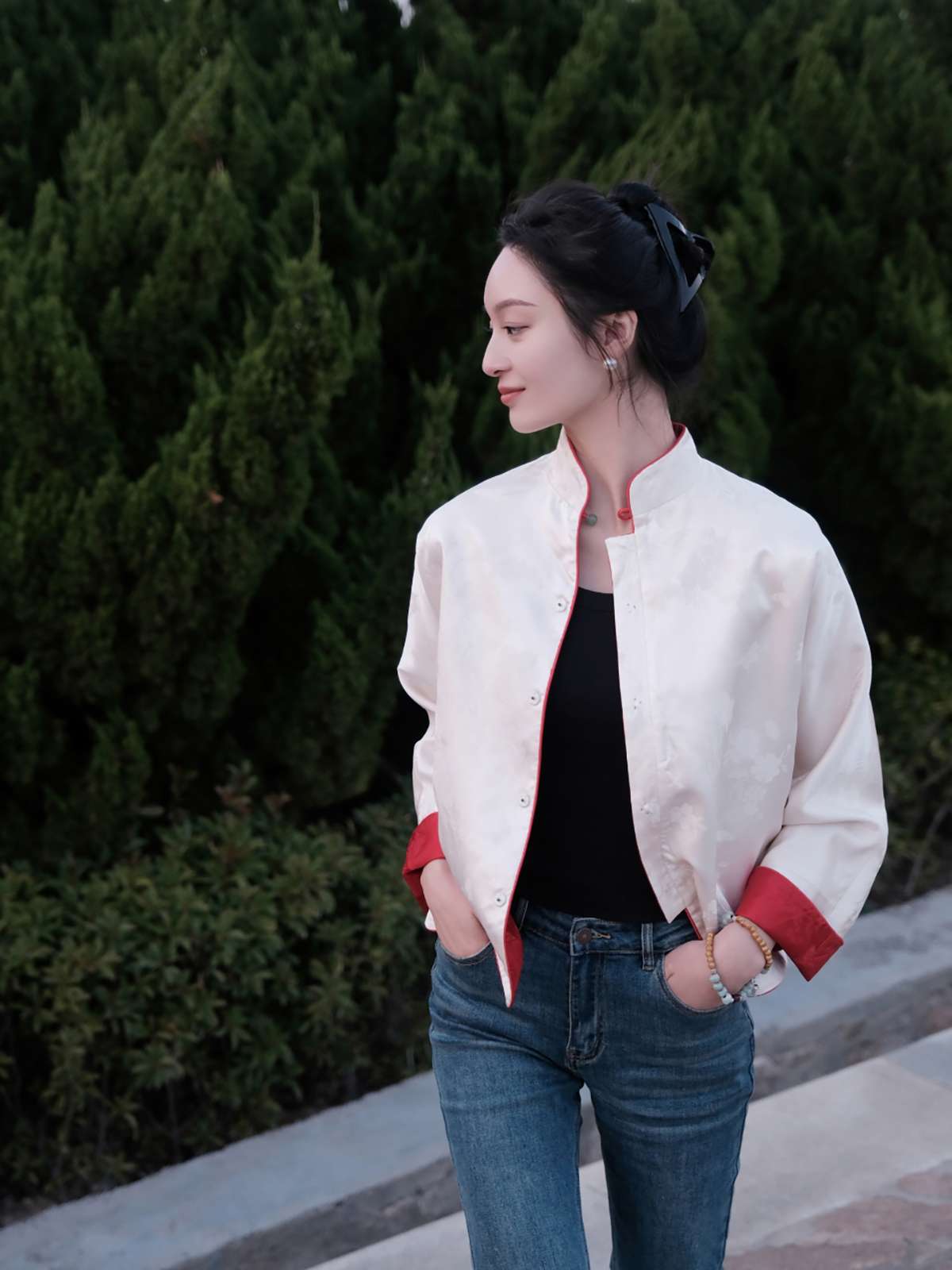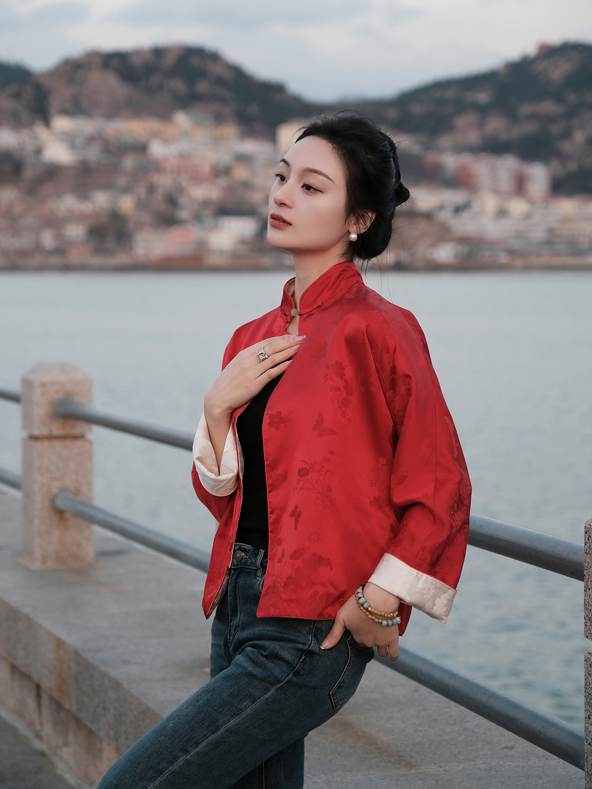 盛唐牡丹 |真丝提花玉扣小立领外套