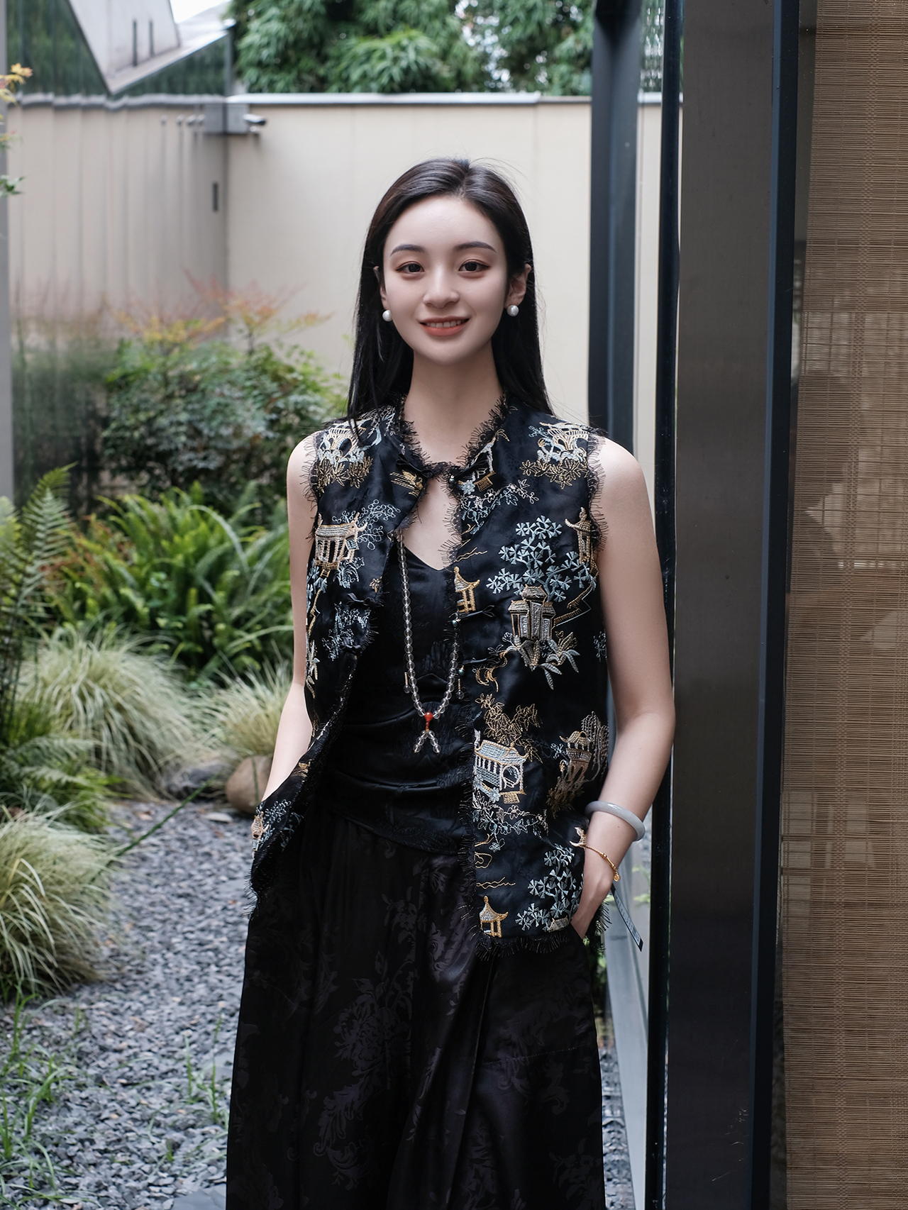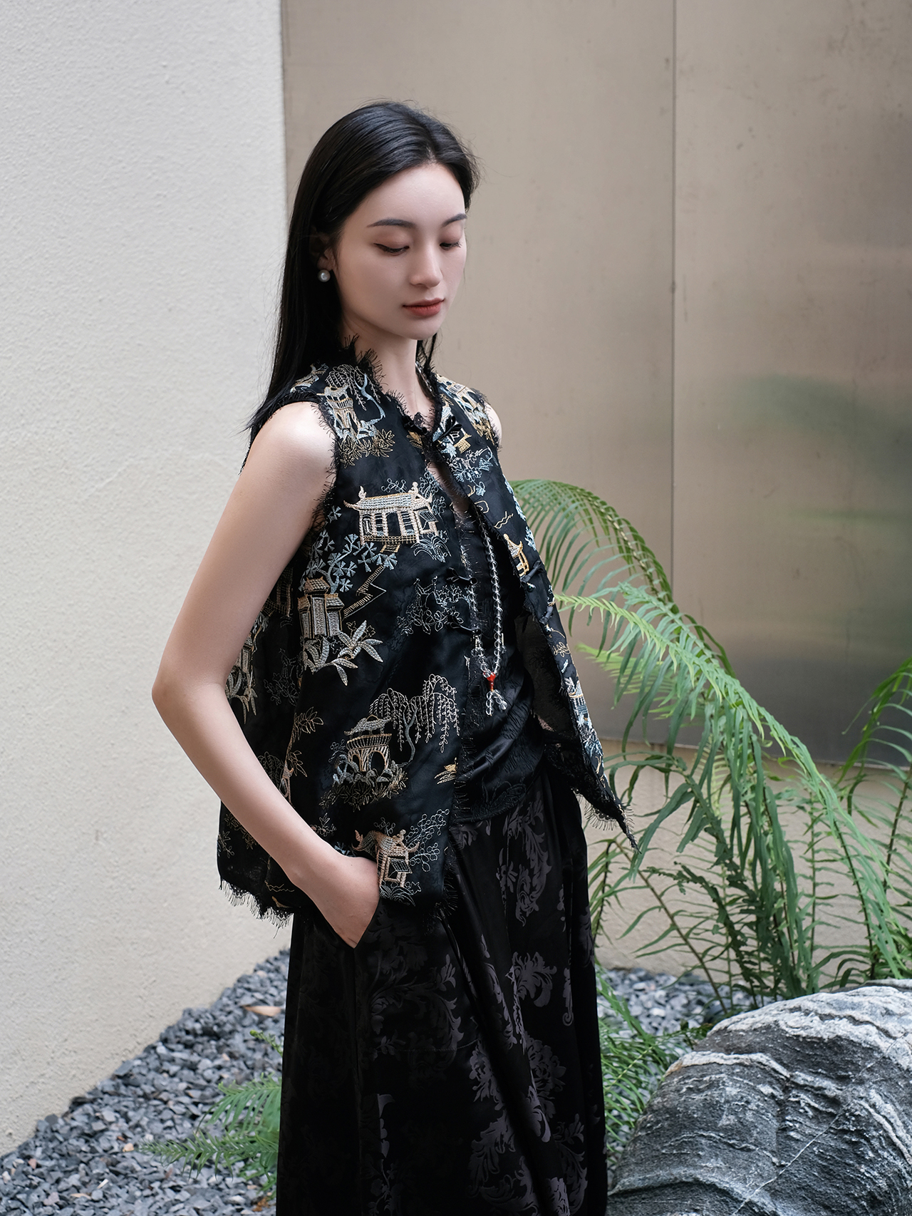 盛唐牡丹 |真丝绡如意湖亭黑蕾丝马甲