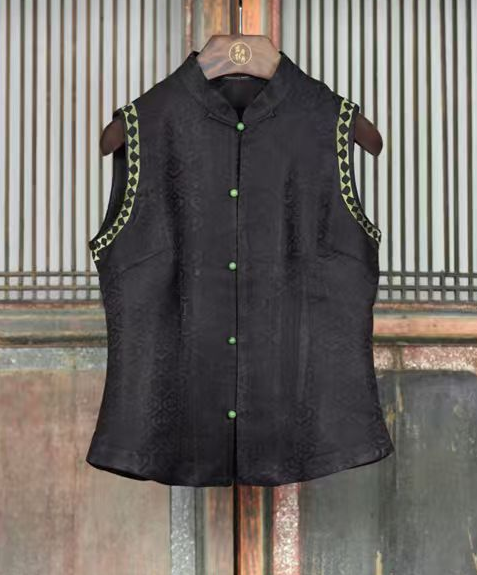 盛唐牡丹盛奢系列 | 手推绣绣织锦马甲-黑色