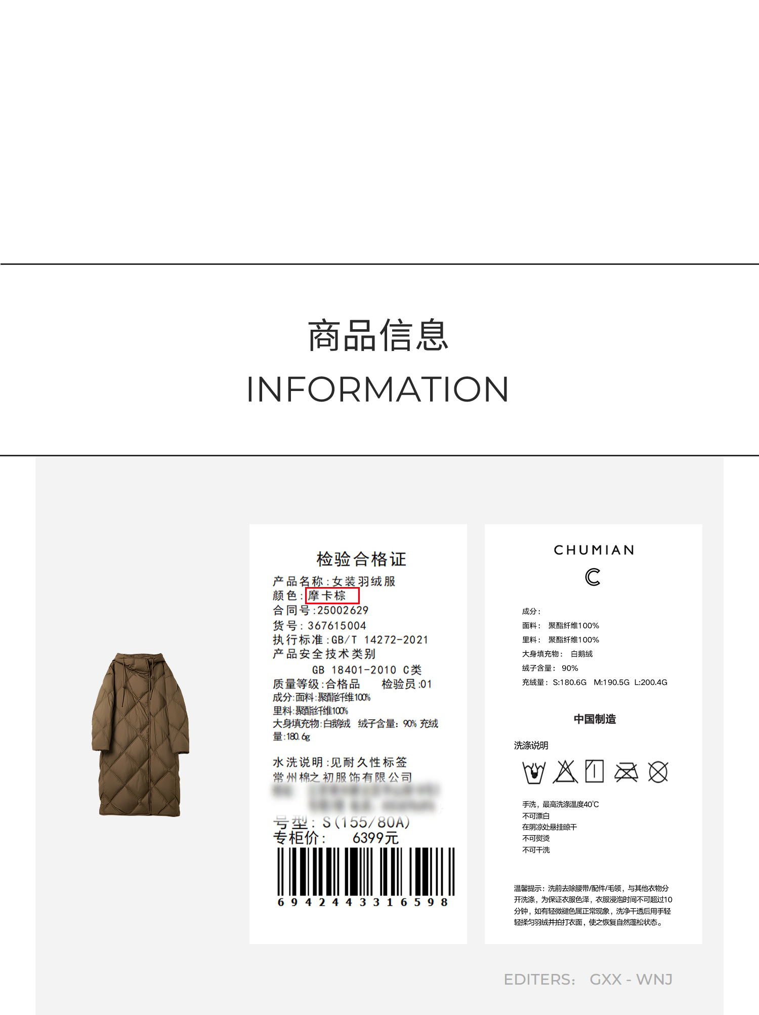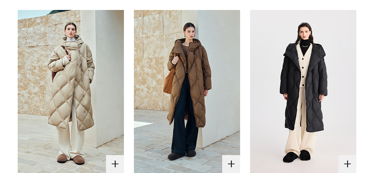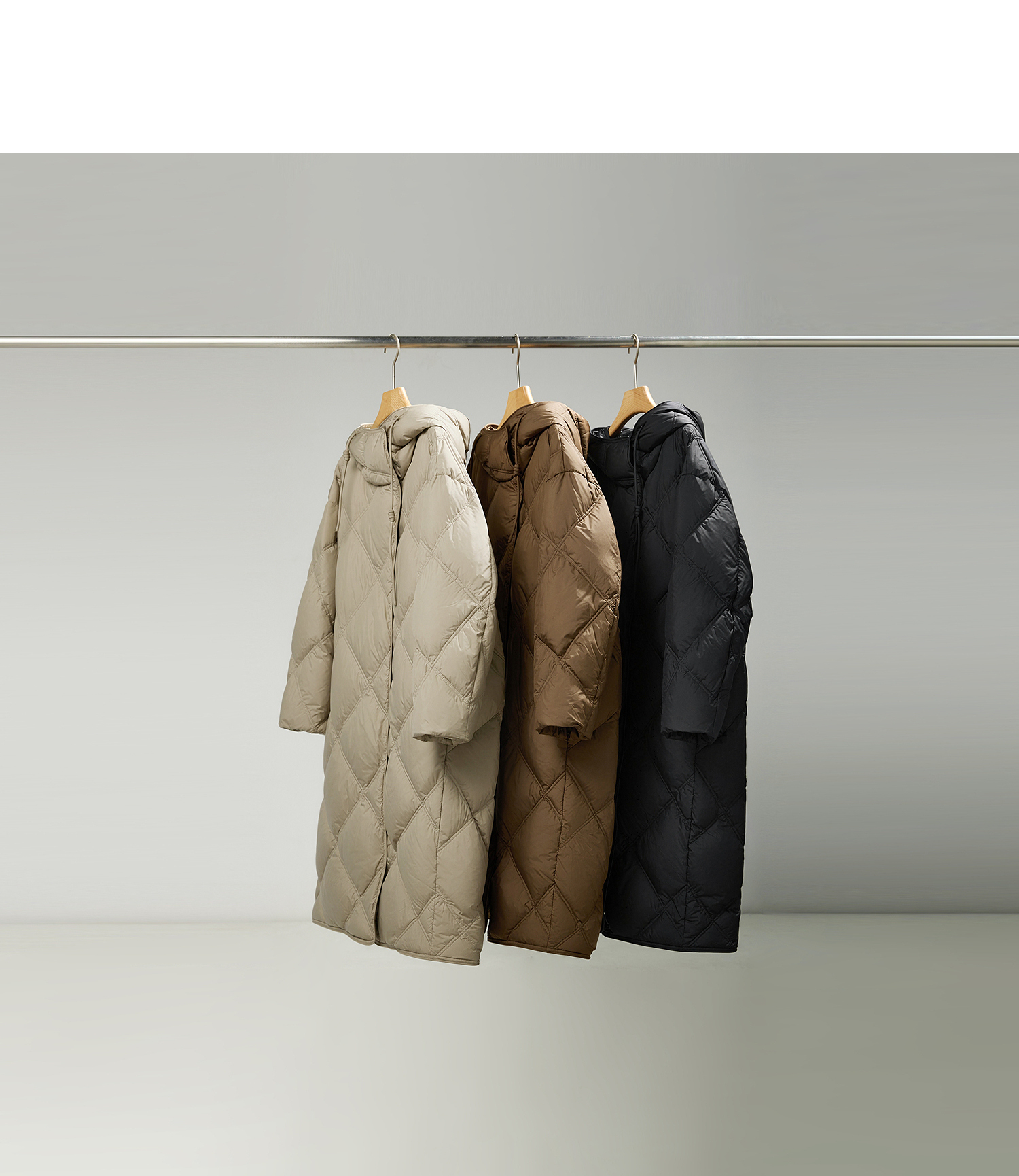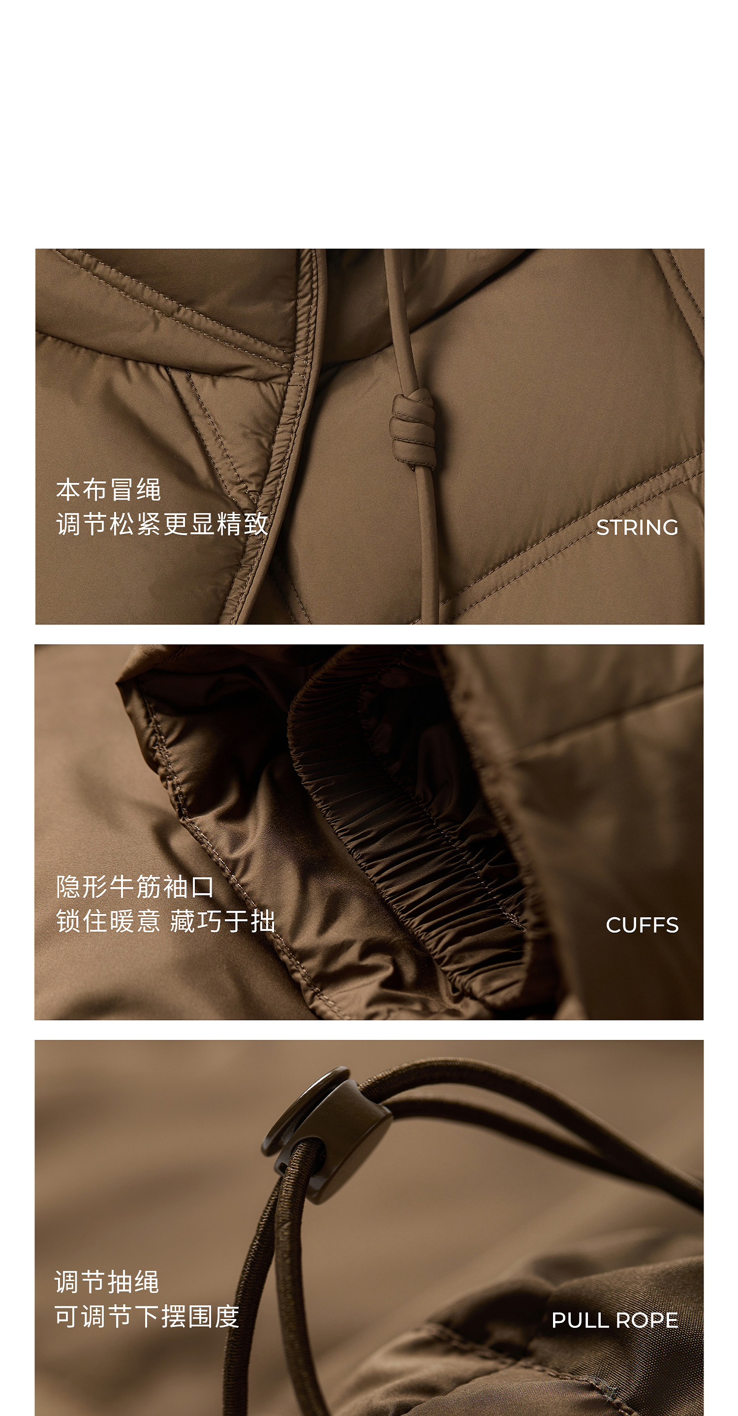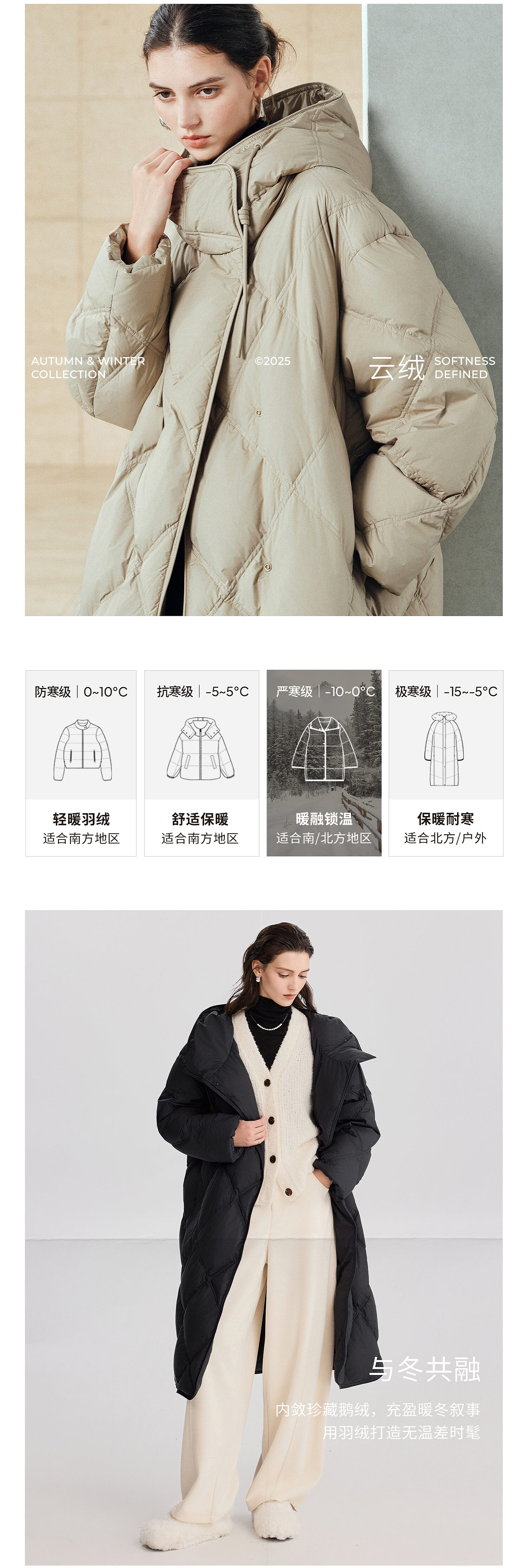棉仓367615004-【90白鹅绒】菱形格廓型连帽羽绒服女25秋冬过膝中长款外套