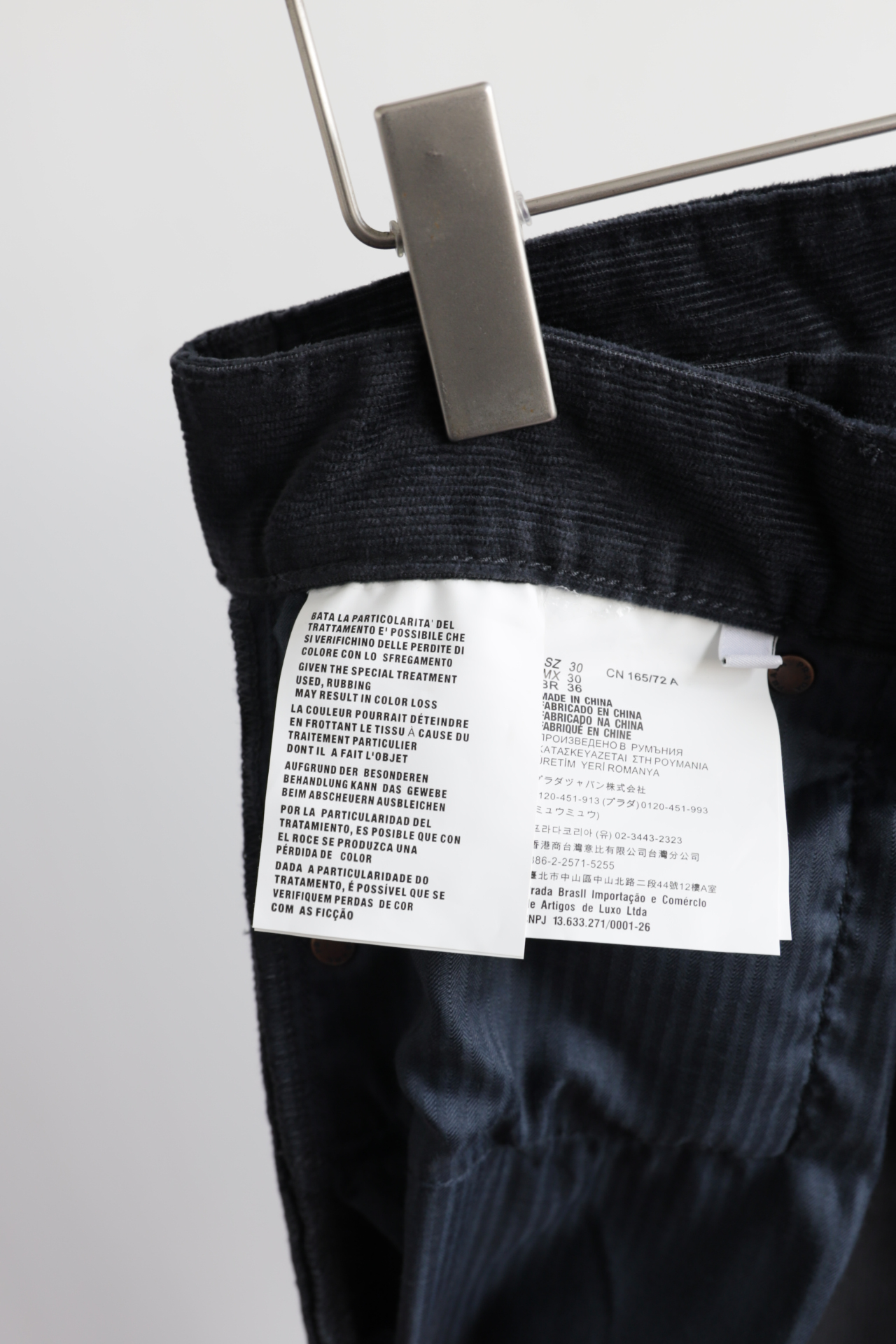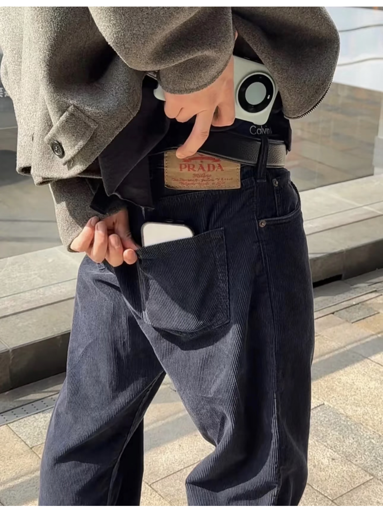 P.R.D 灯芯绒水洗巴黎扣小直筒休闲裤