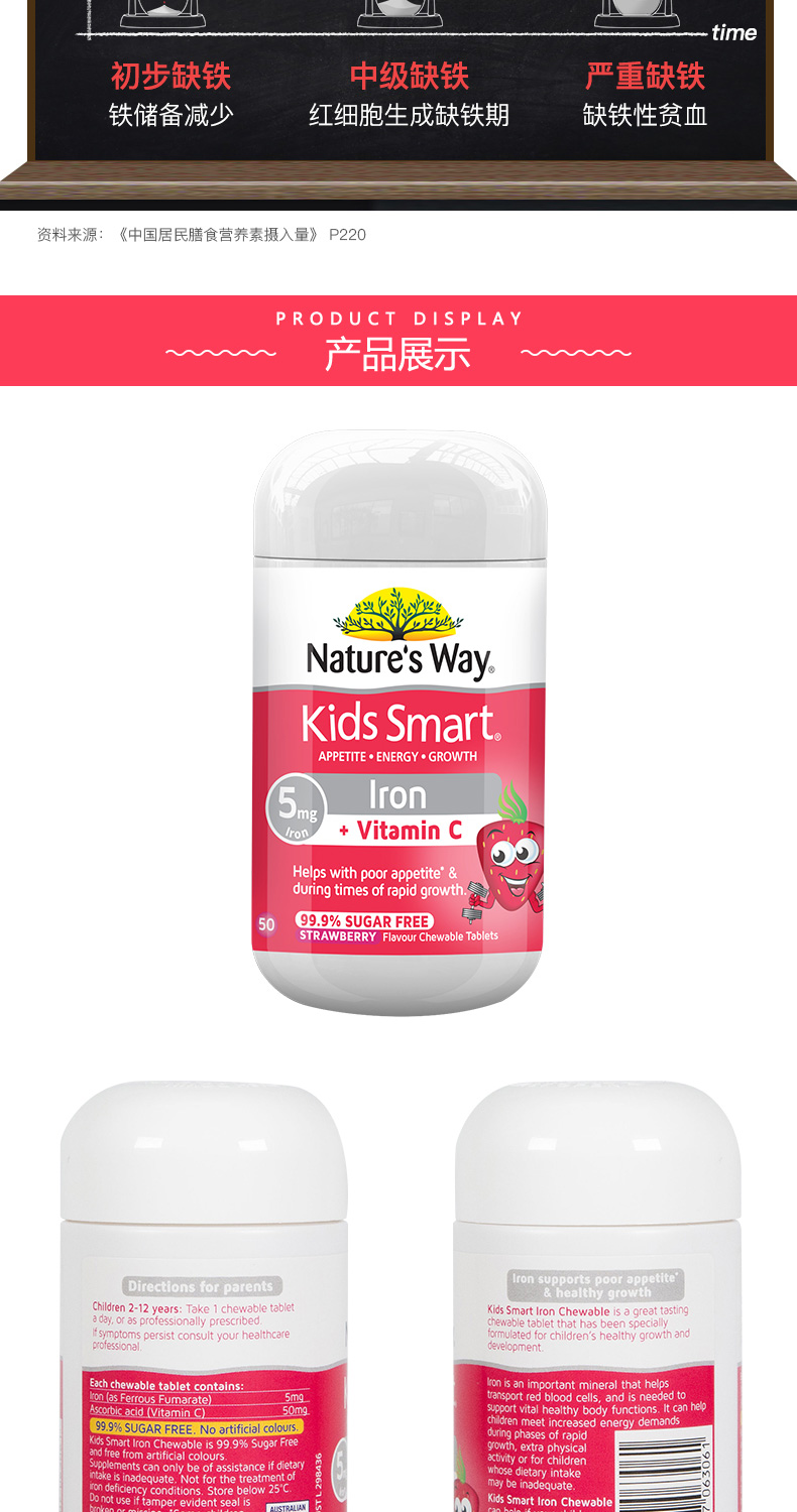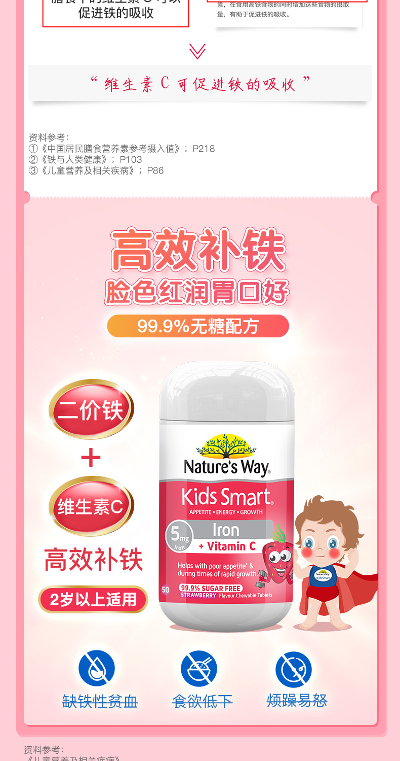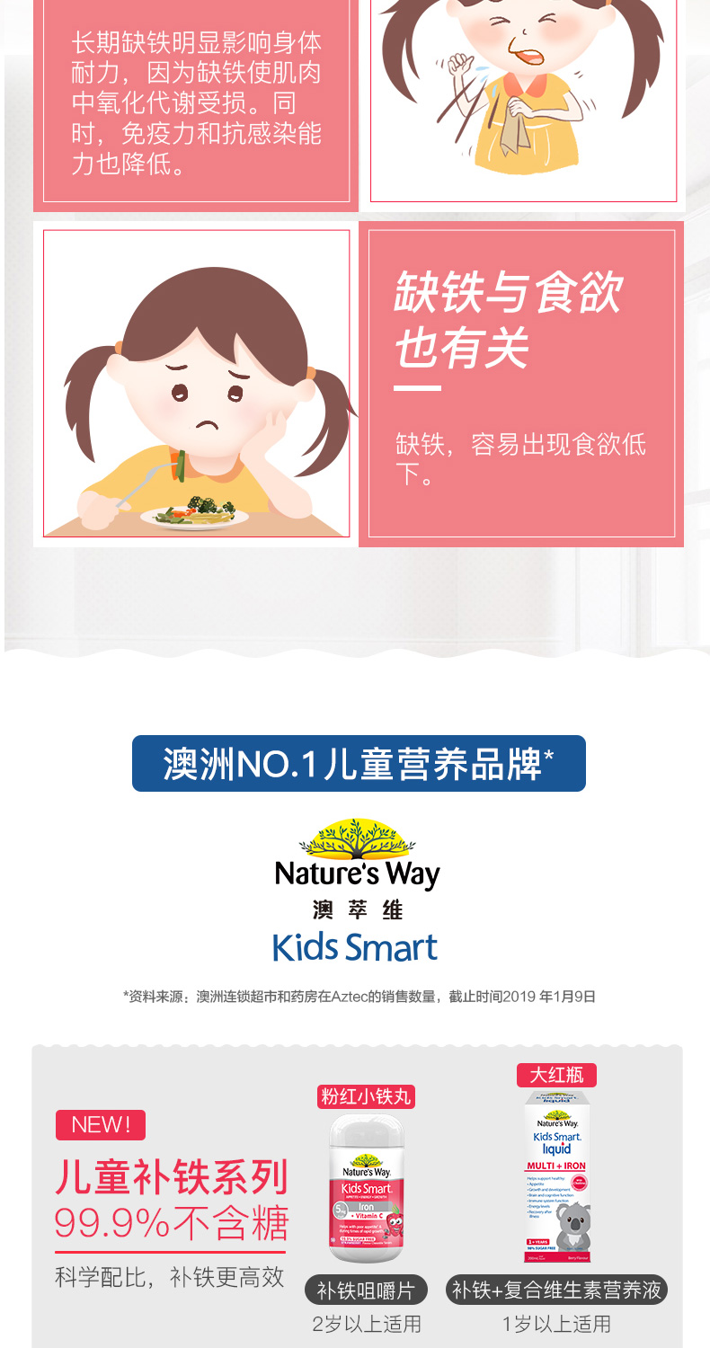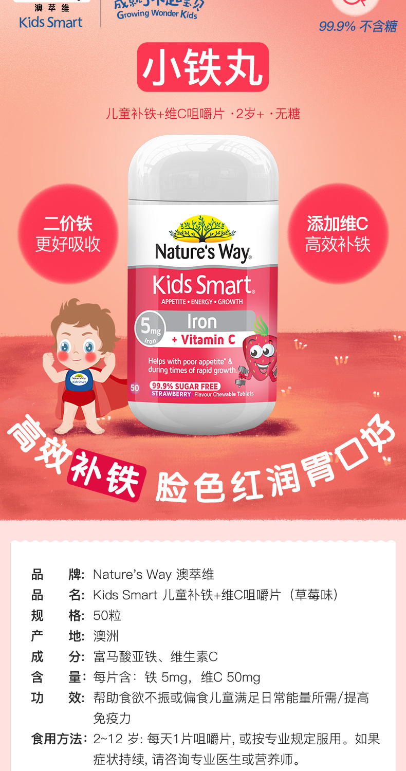 澳洲 Nature's Way佳思敏澳洲儿童钙铁锌补铁咀嚼片