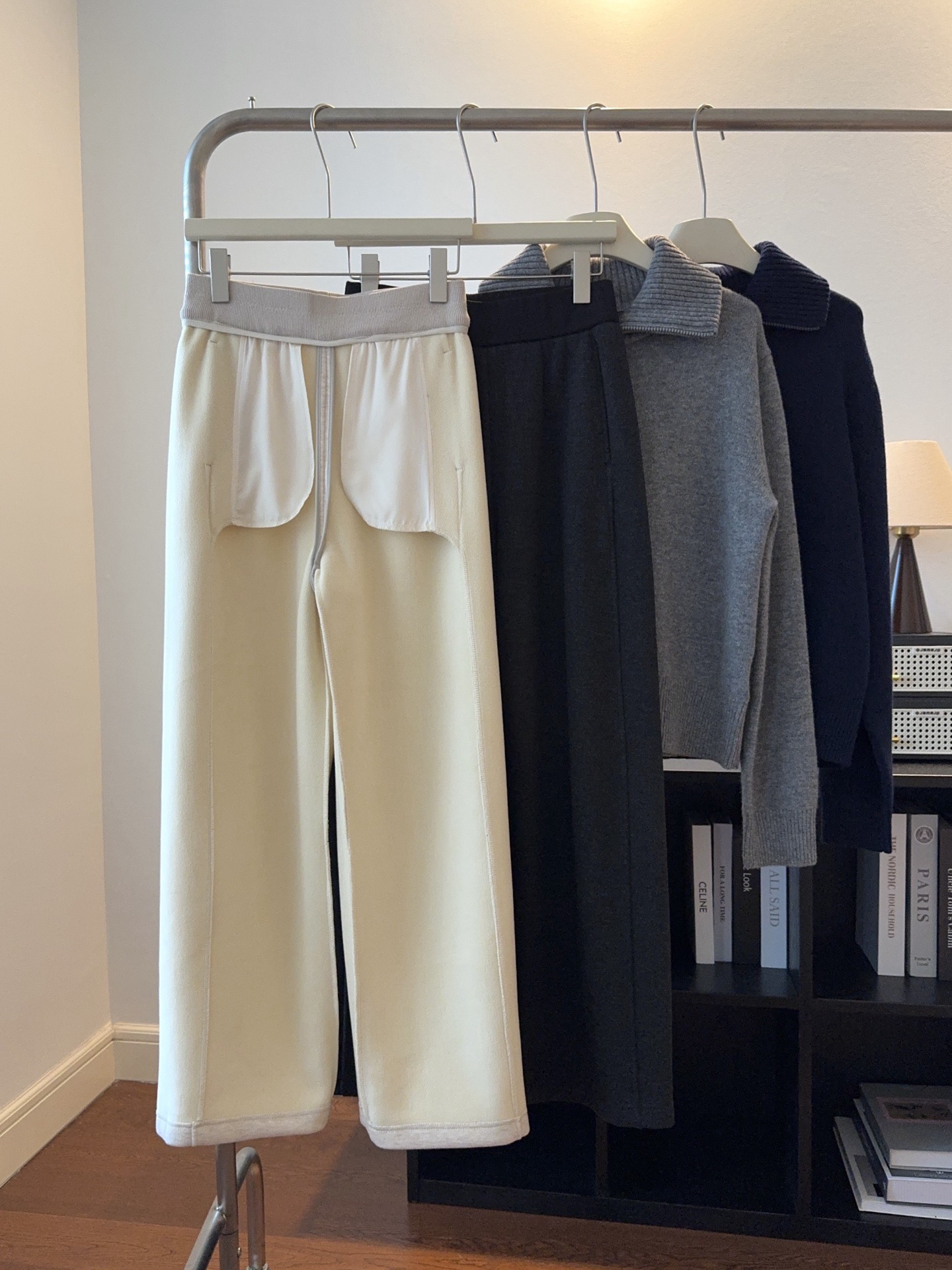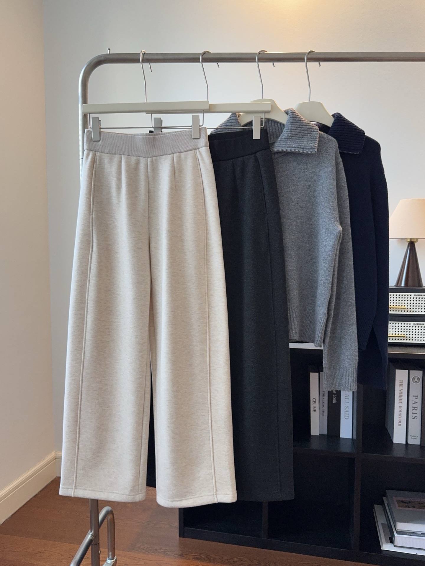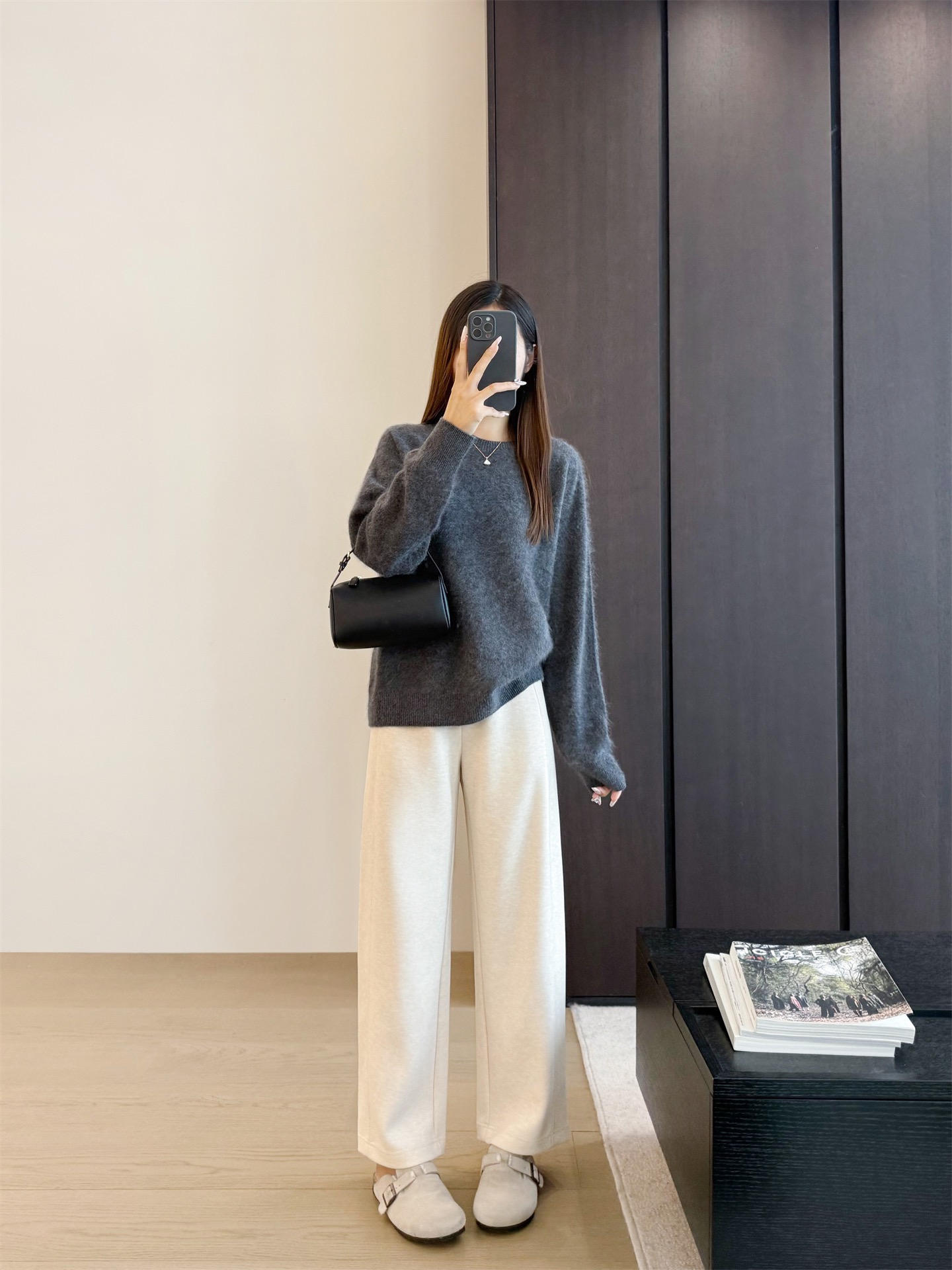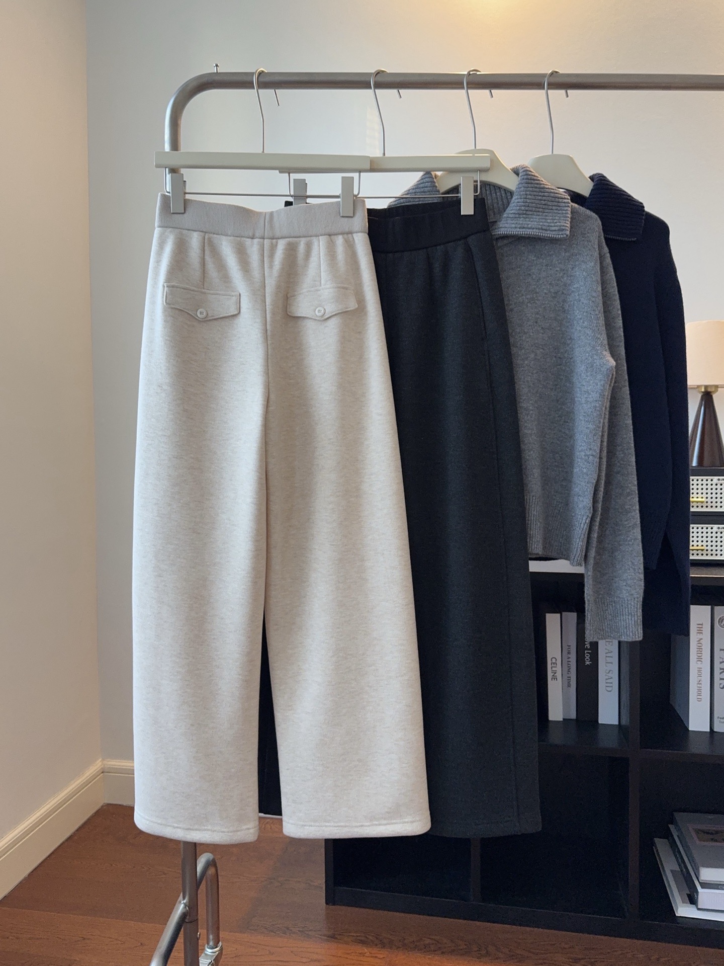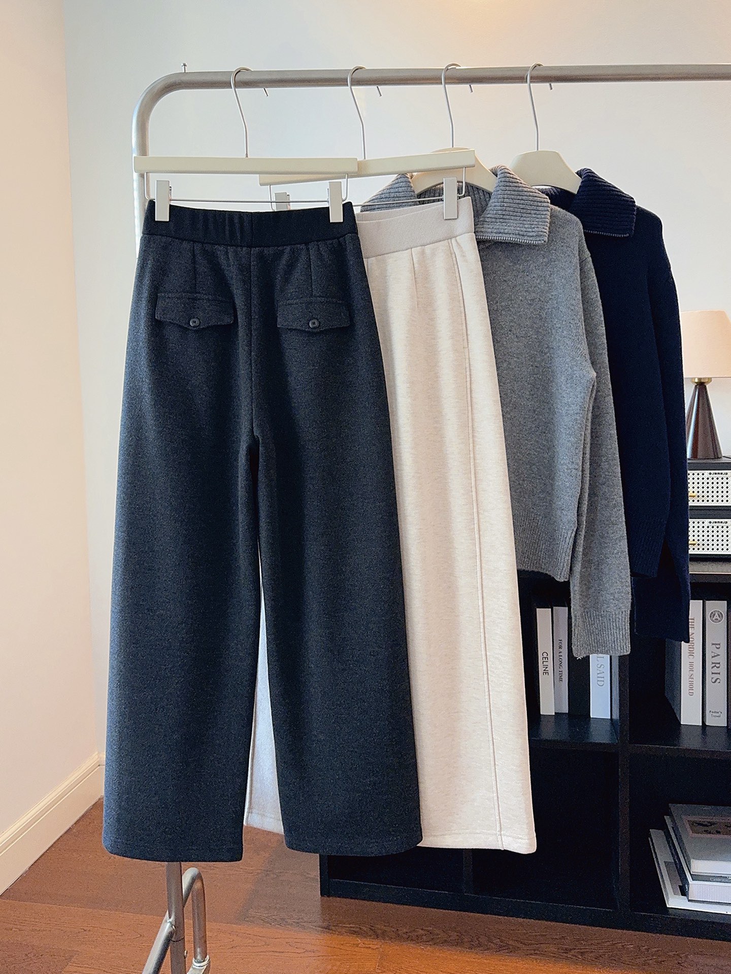 窄版直筒裤型,又有微妙弧度,质感慢慢流入