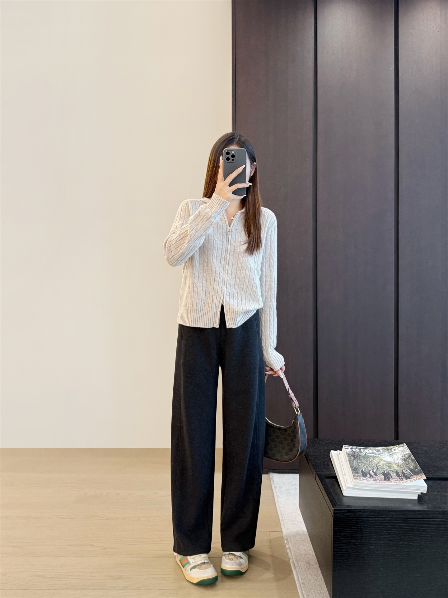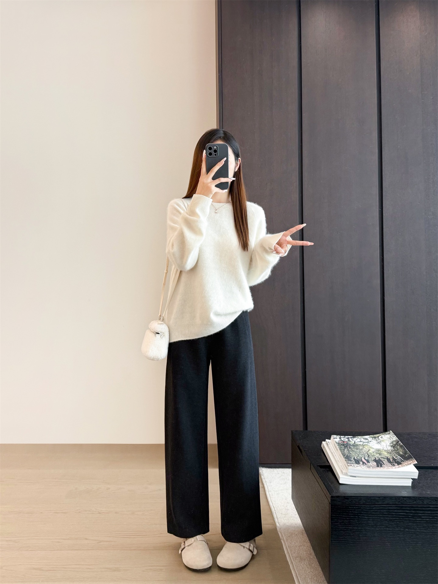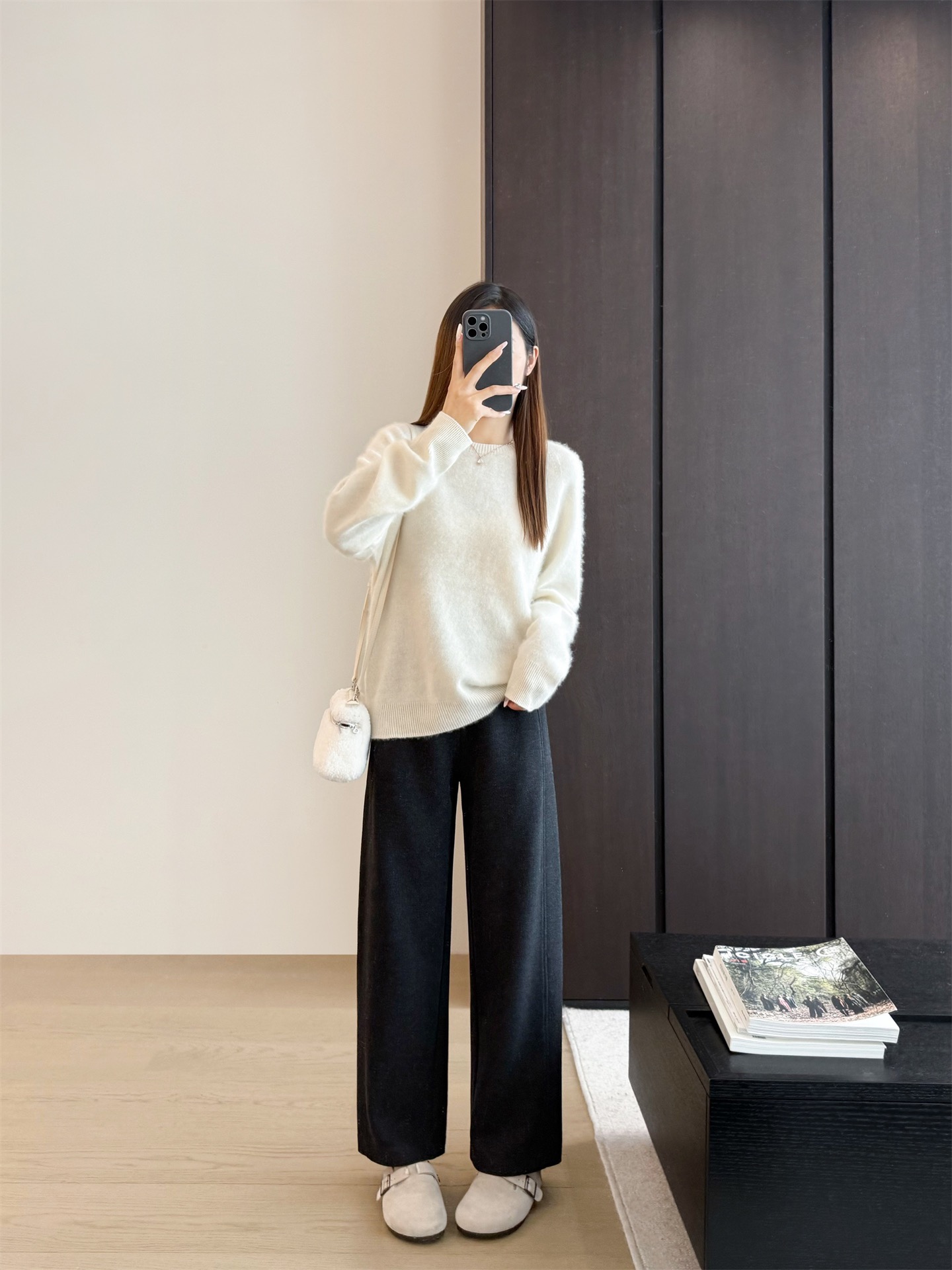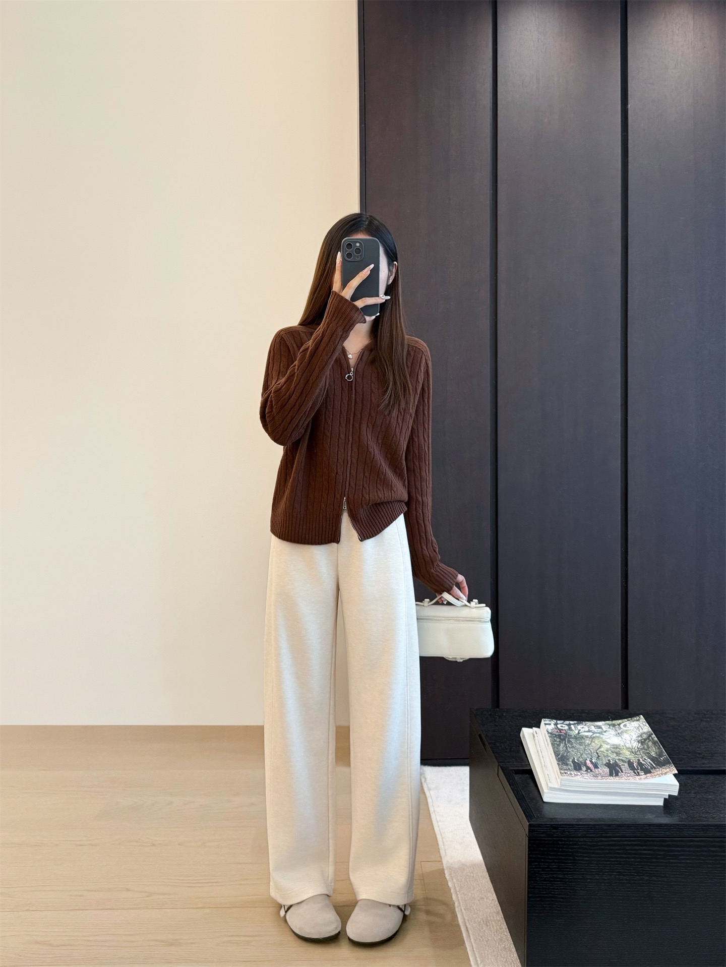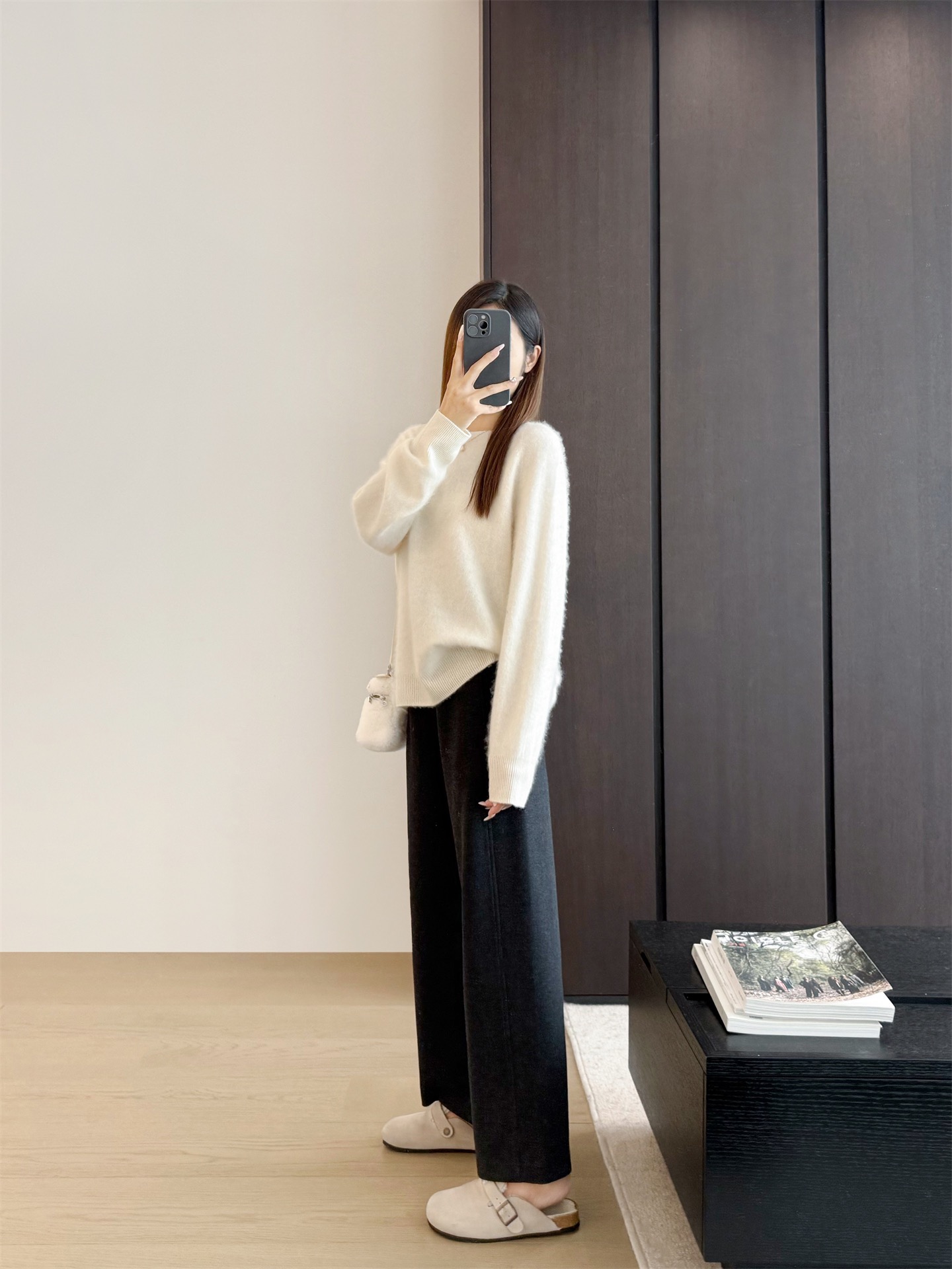 窄版直筒裤型,又有微妙弧度,质感慢慢流入