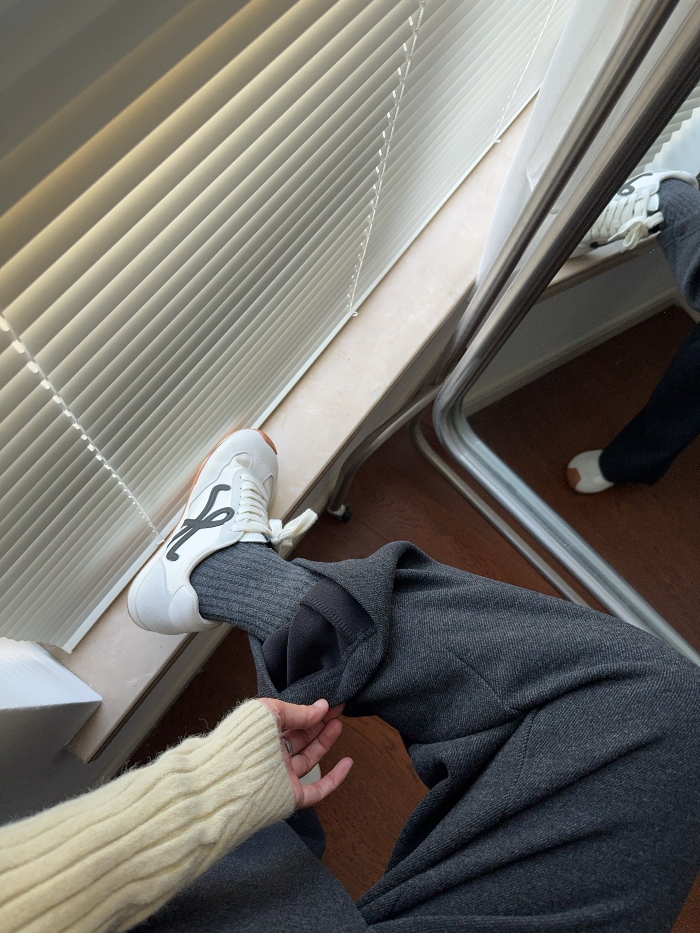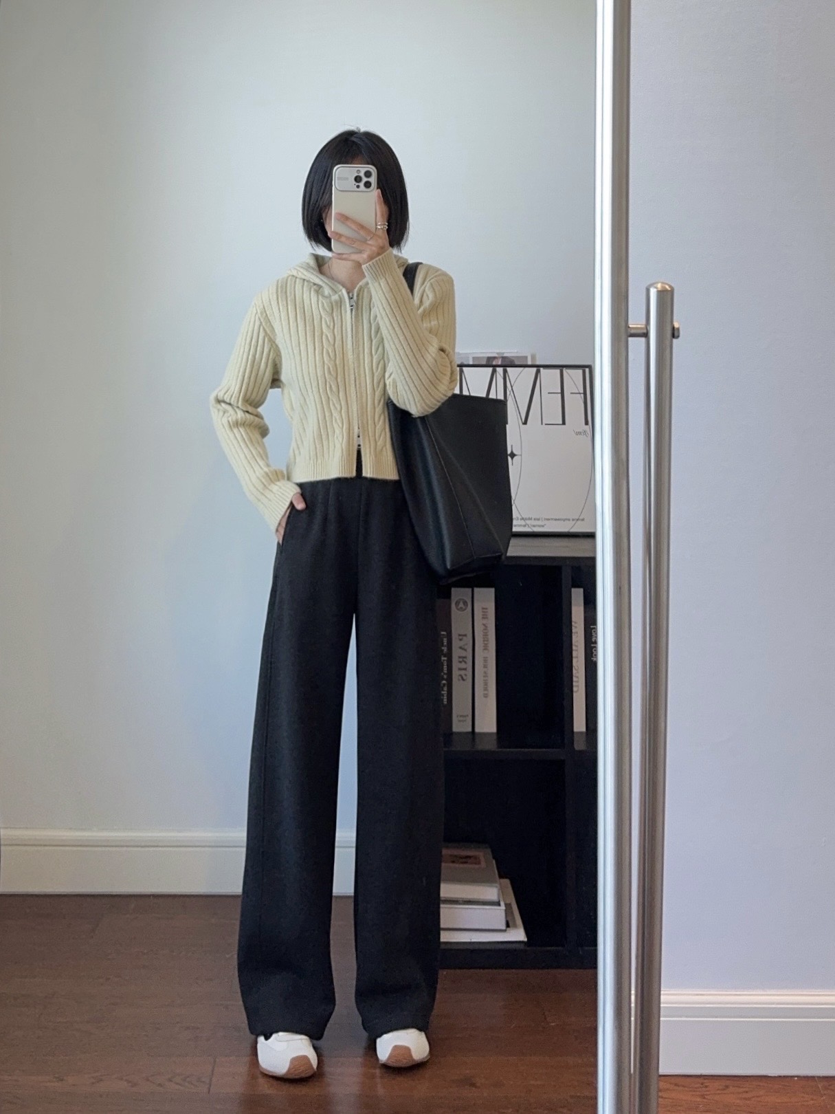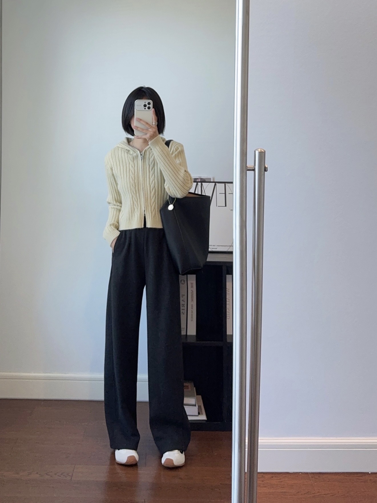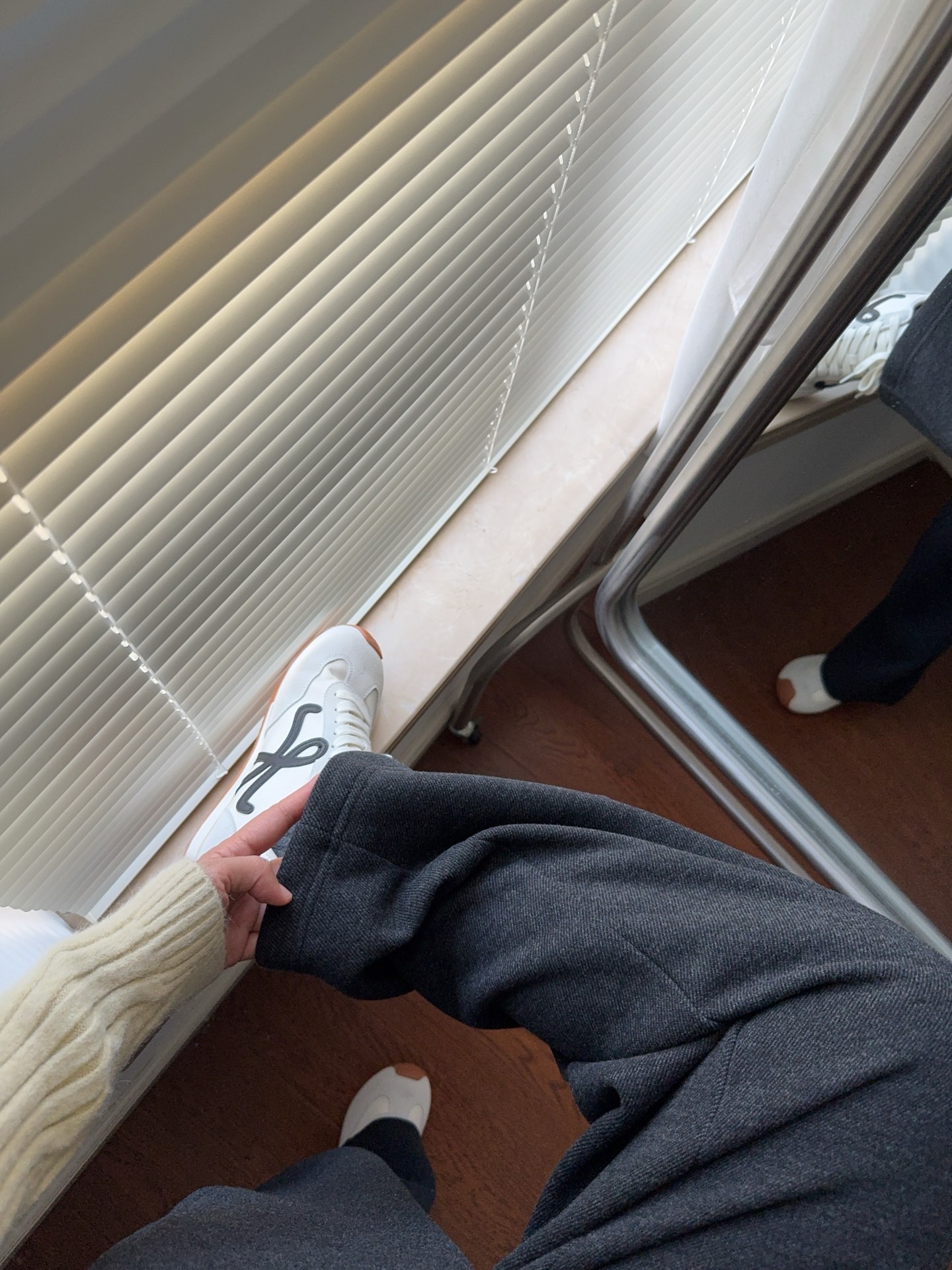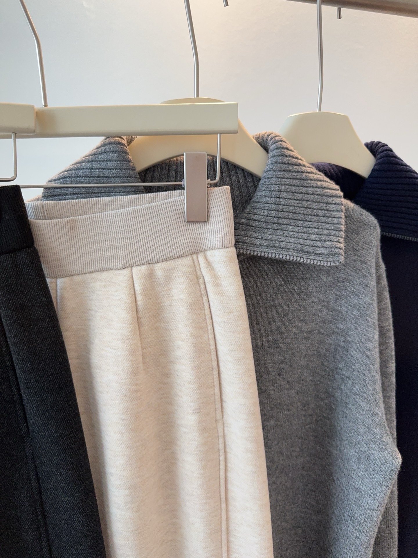 窄版直筒裤型,又有微妙弧度,质感慢慢流入