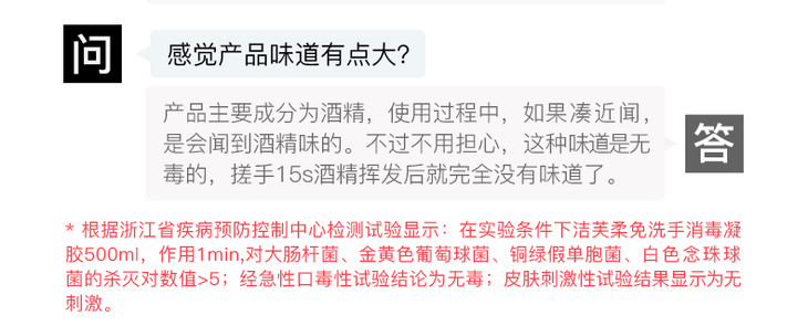 洁芙柔免洗手消毒凝胶 酒精杀菌500ml