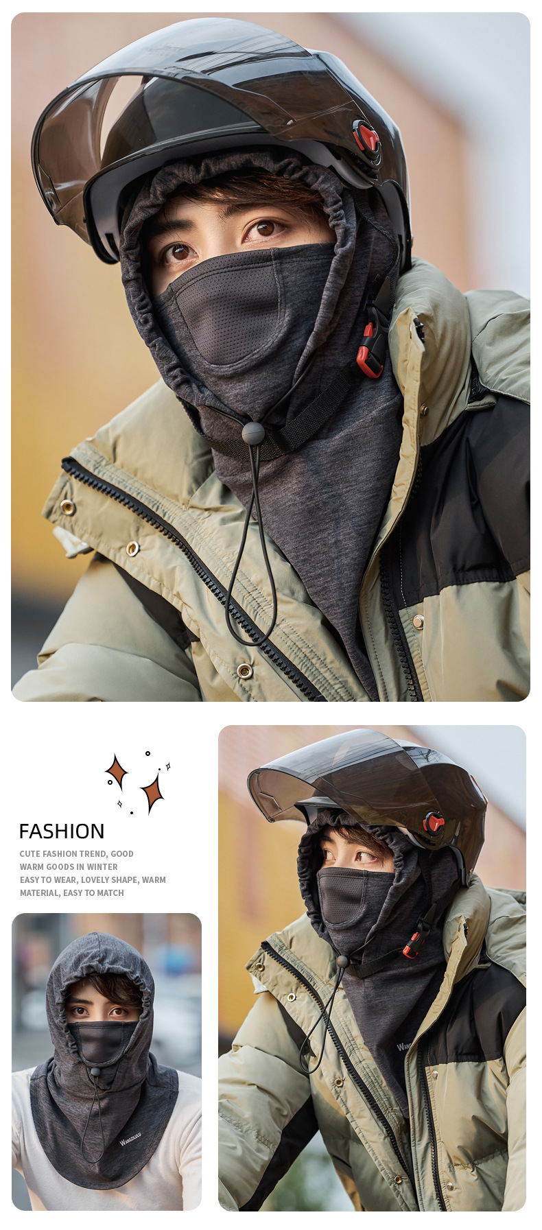 帽子男秋冬骑行防寒面罩保暖连帽围脖一体防风套头帽子女头盔内胆