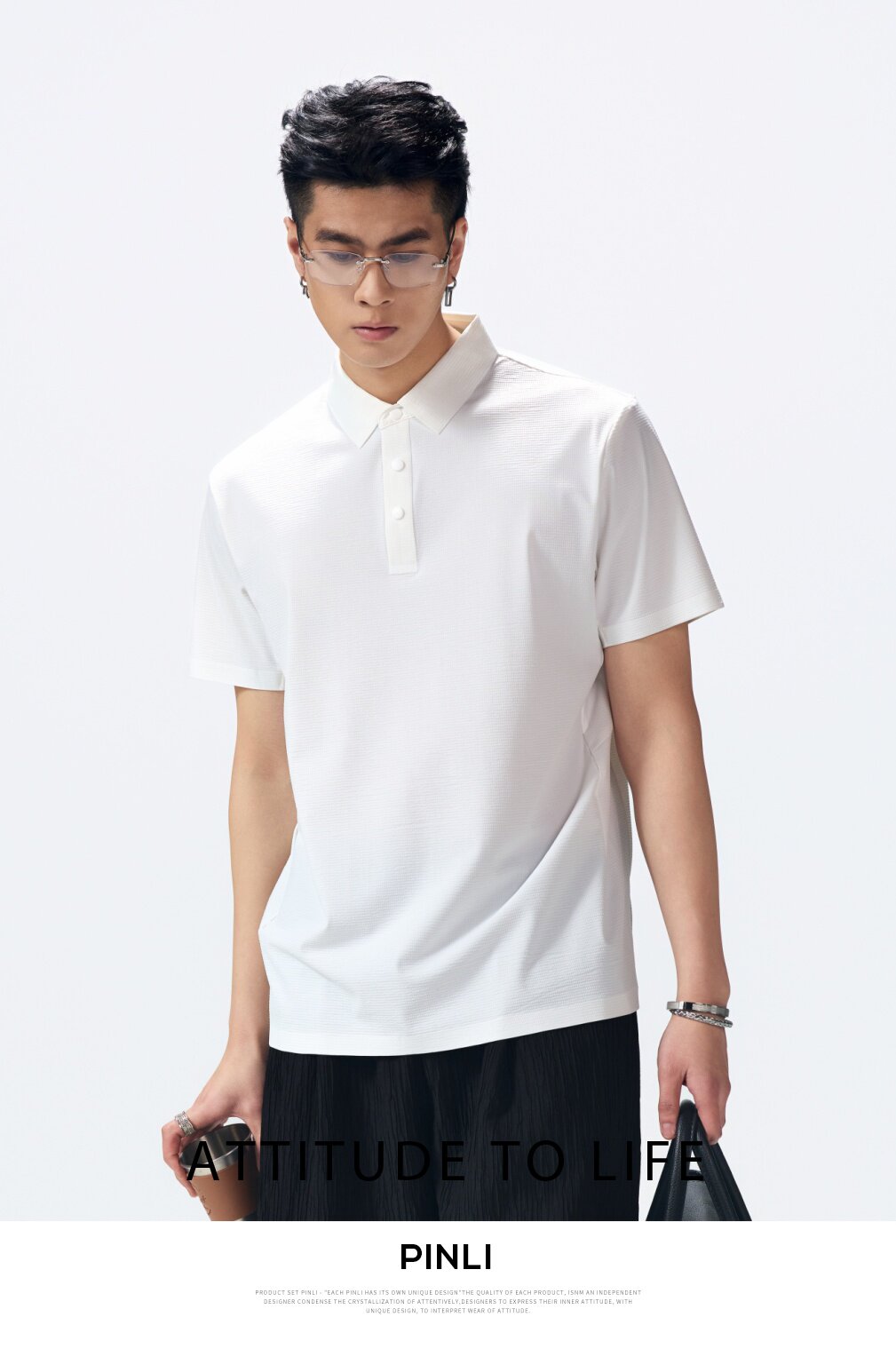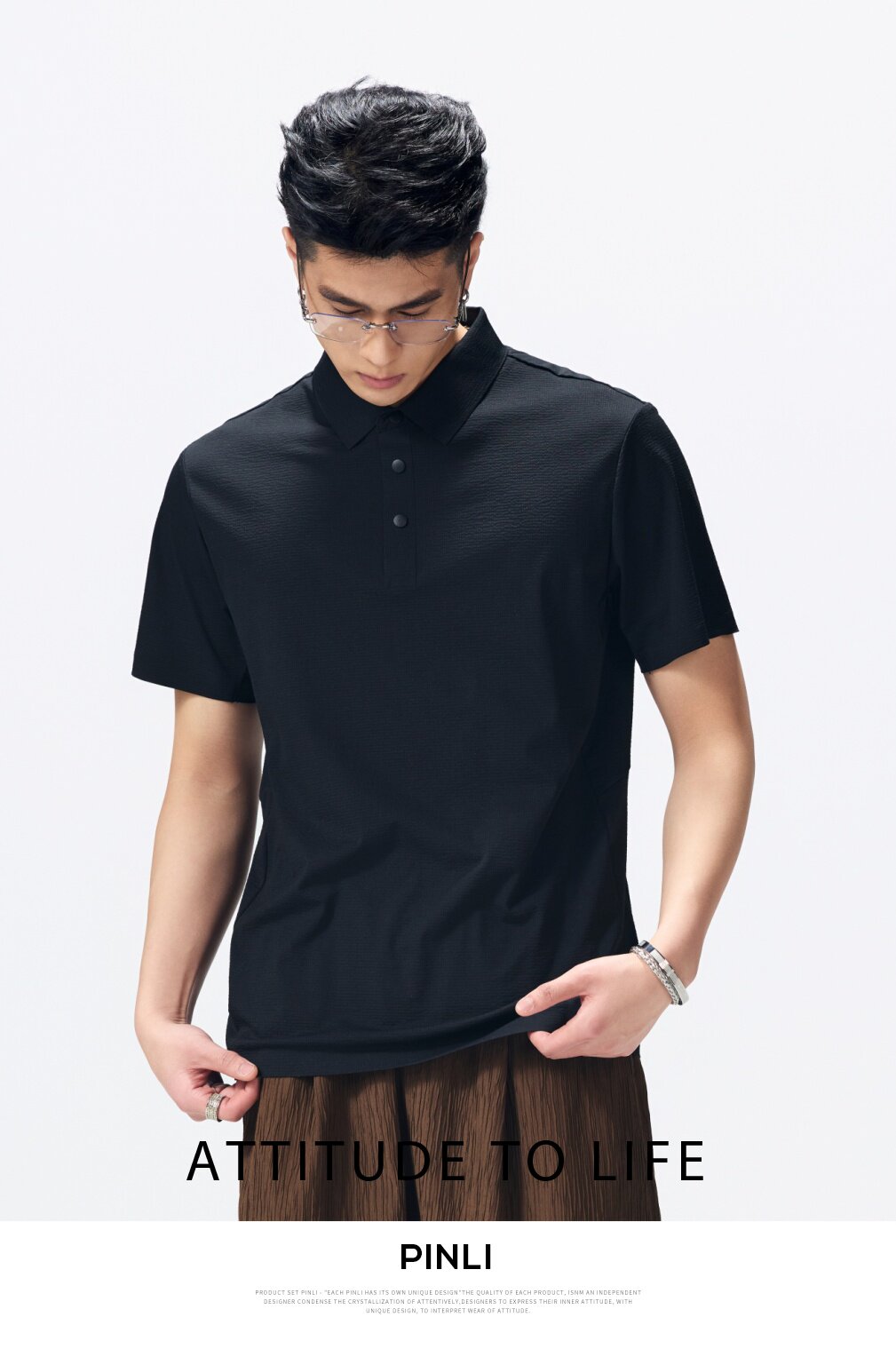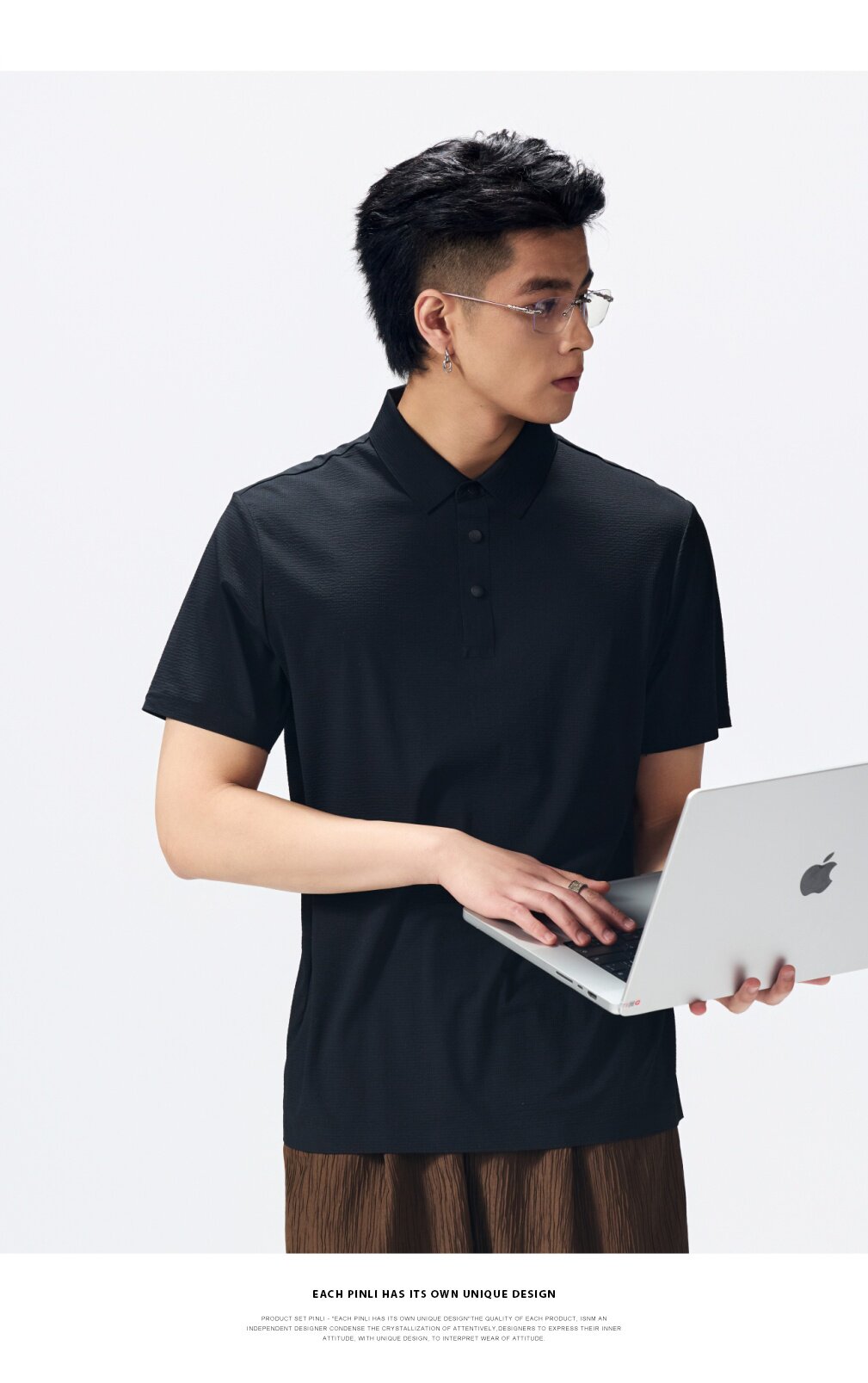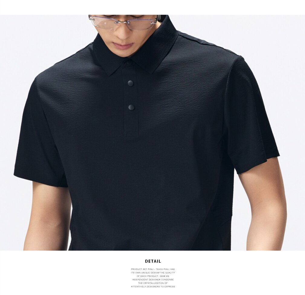 PINLI品立2026夏季新款男士纽扣翻领纯色短袖POLO衫上衣体恤潮牌GD262112054