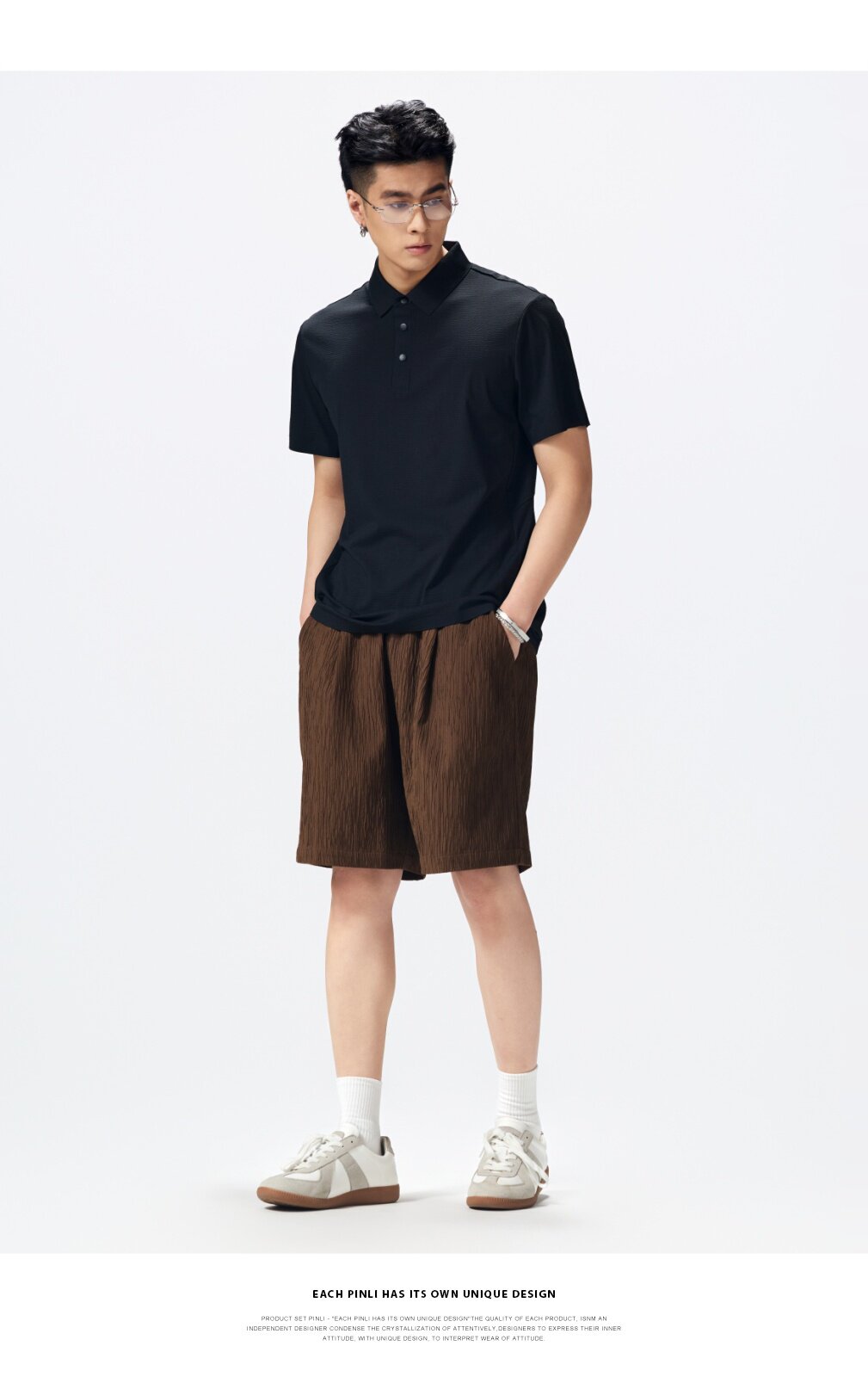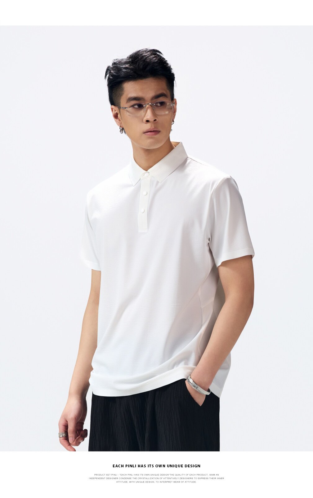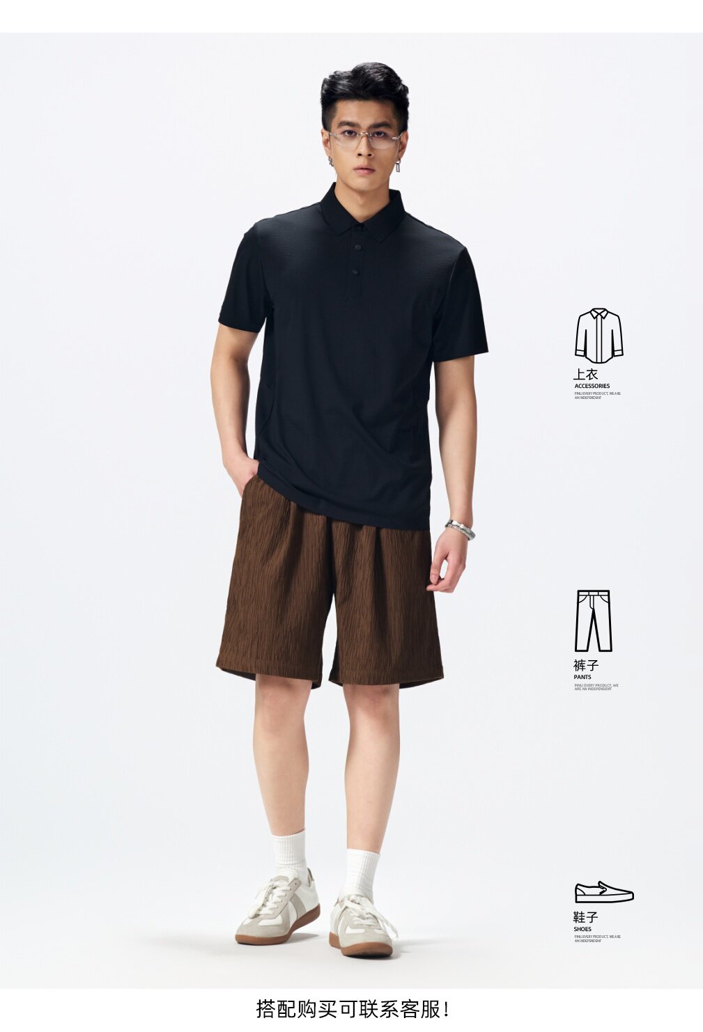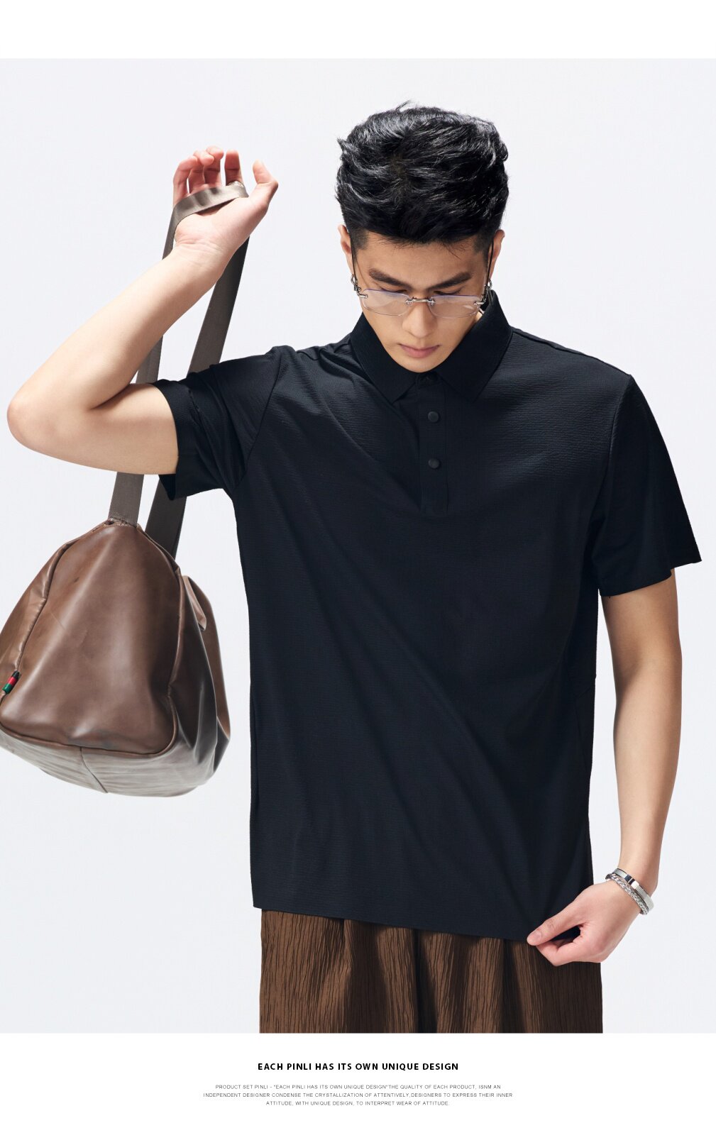 PINLI品立2026夏季新款男士纽扣翻领纯色短袖POLO衫上衣体恤潮牌GD262112054