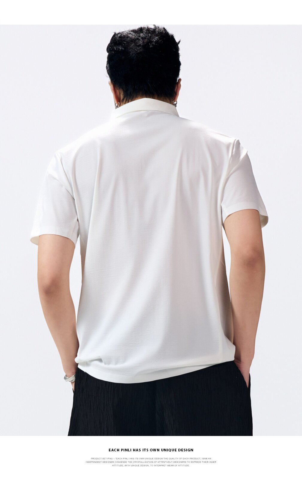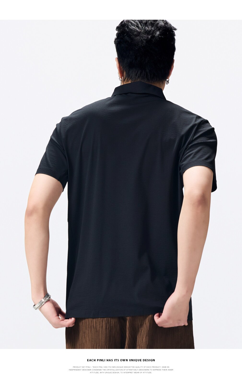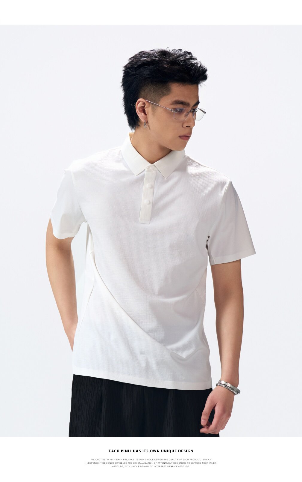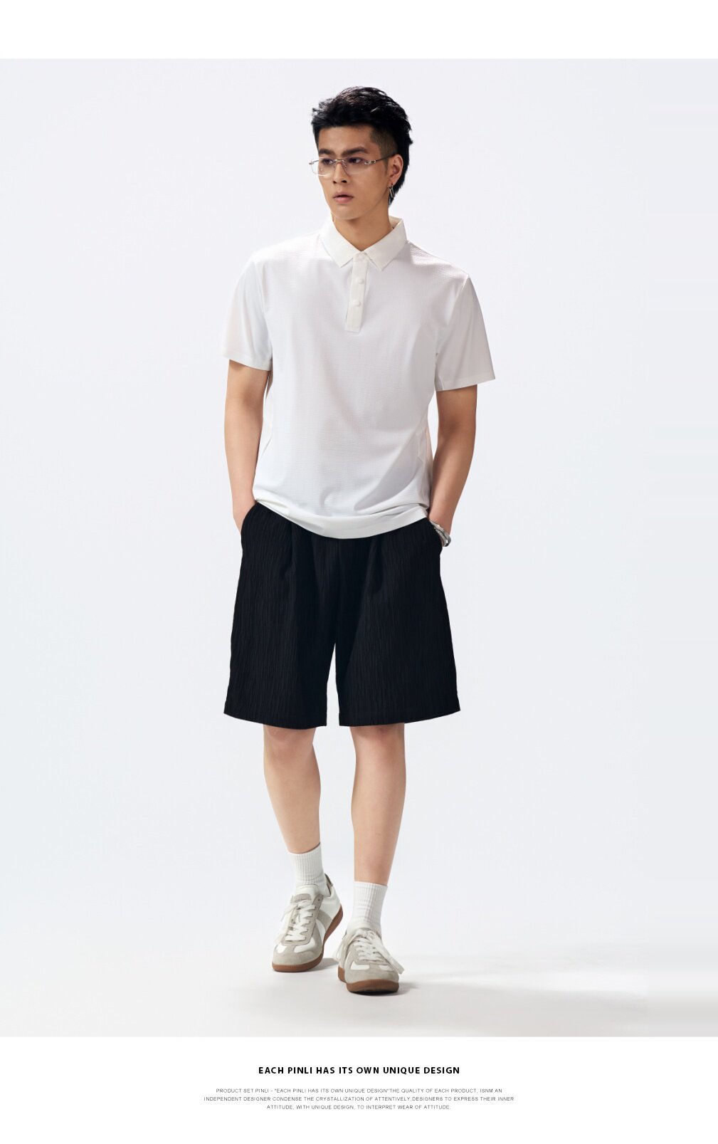 PINLI品立2026夏季新款男士纽扣翻领纯色短袖POLO衫上衣体恤潮牌GD262112054
